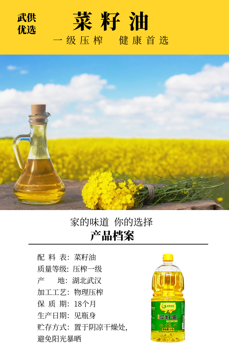 【武汉.东西湖】武供优选菜籽油1.8L