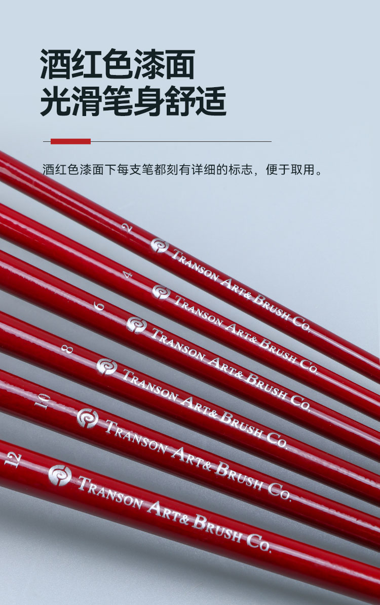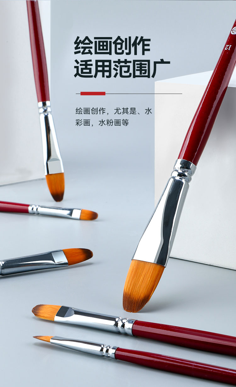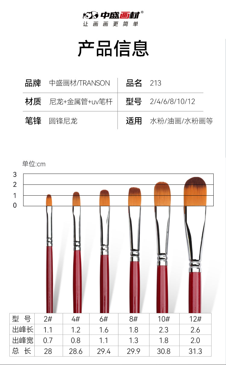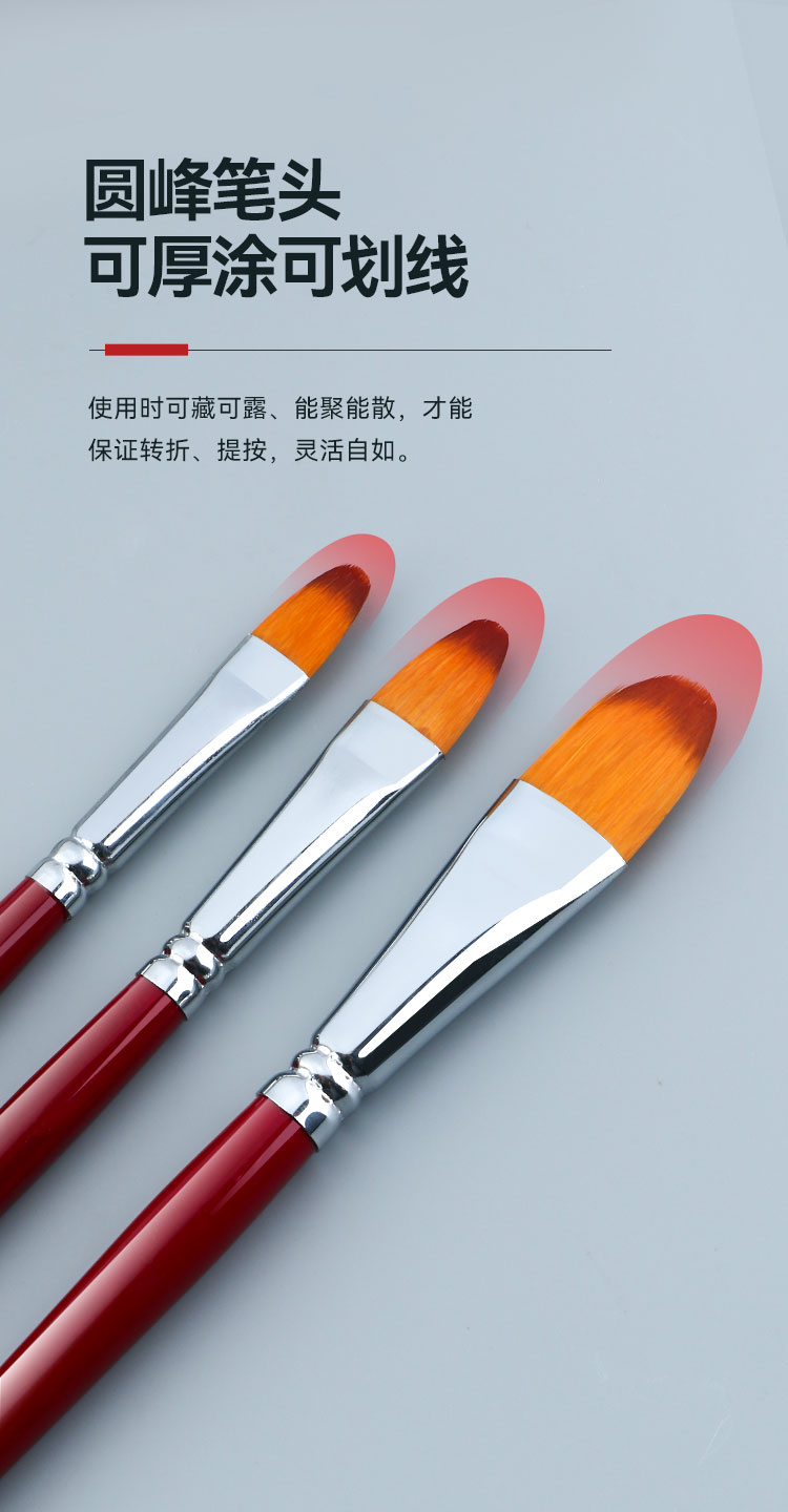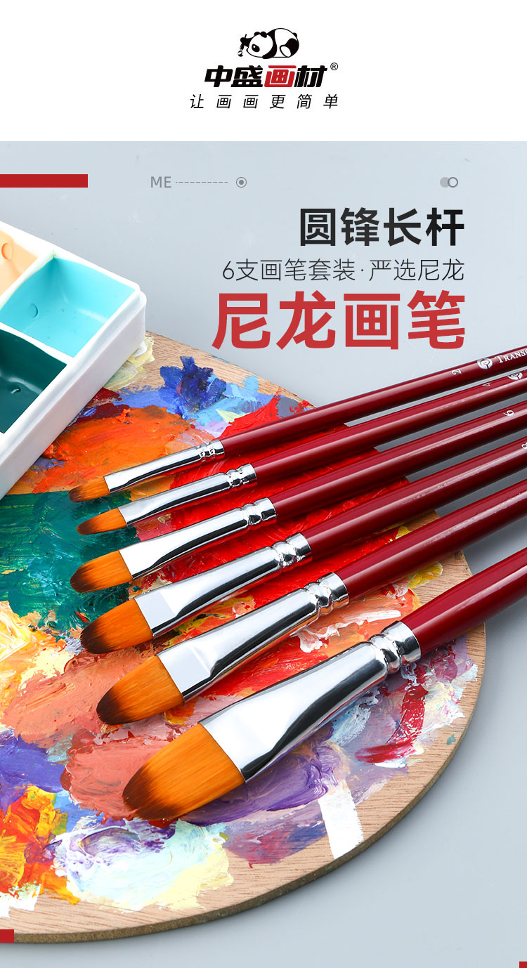 中盛画材 圆峰尼龙毛酒红杆水粉笔/油画笔/丙烯笔双号套装6支213