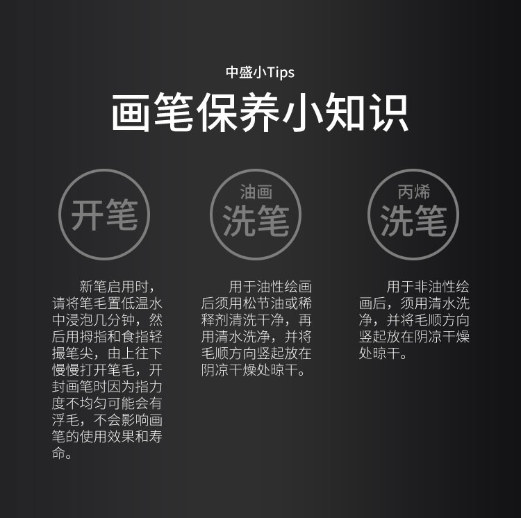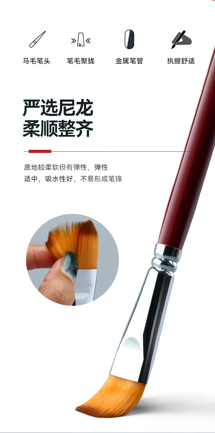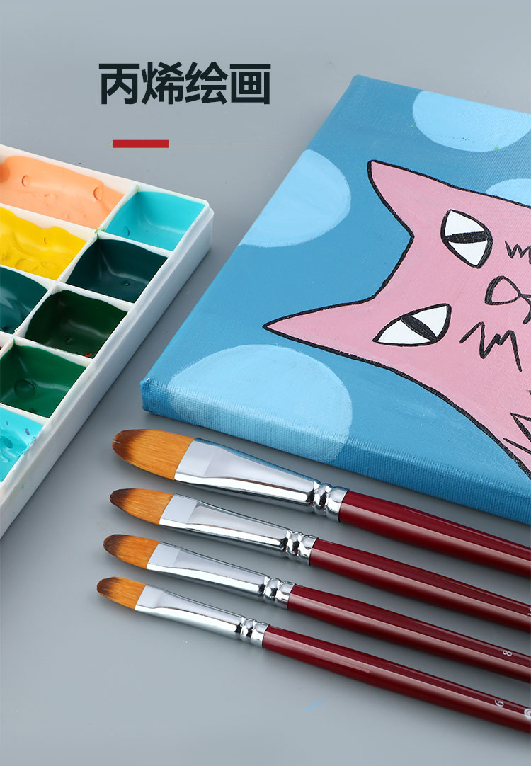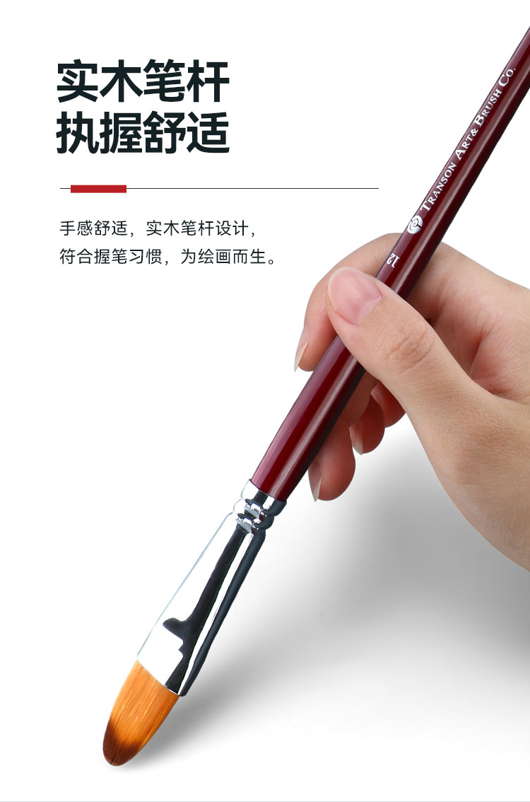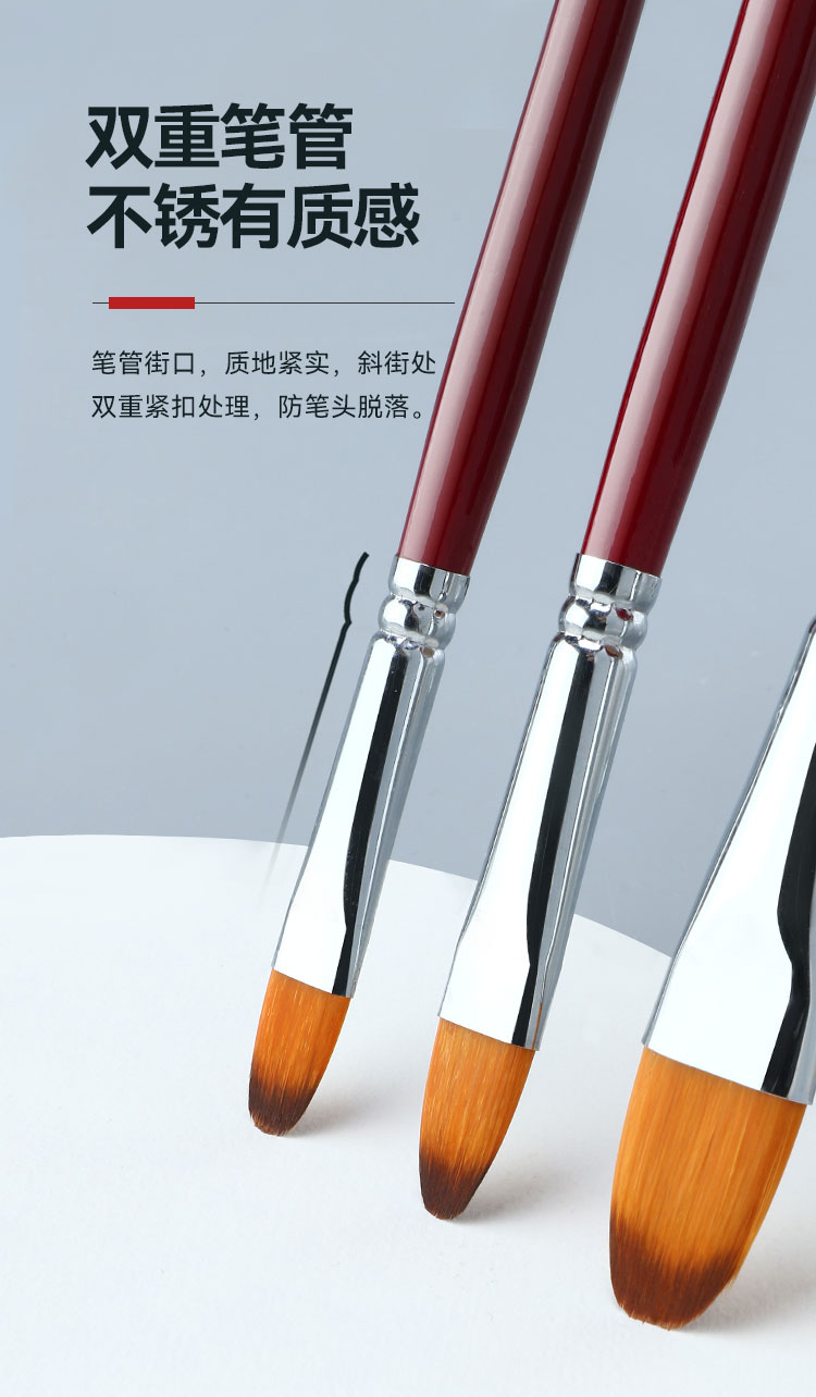 中盛画材 圆峰尼龙毛酒红杆水粉笔/油画笔/丙烯笔双号套装6支213