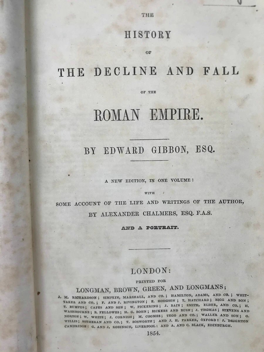 1854年 爱德华·吉本《罗马帝国衰亡史》 1幅肖像插图 真皮精装大32开