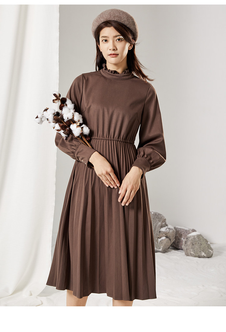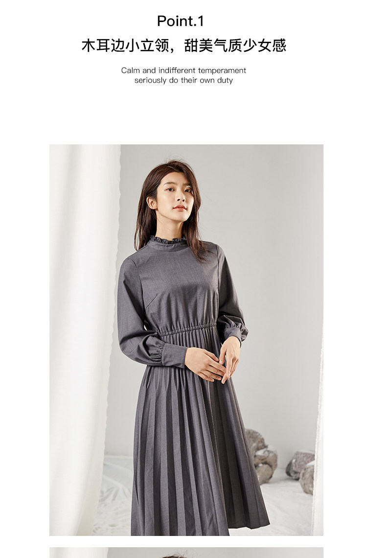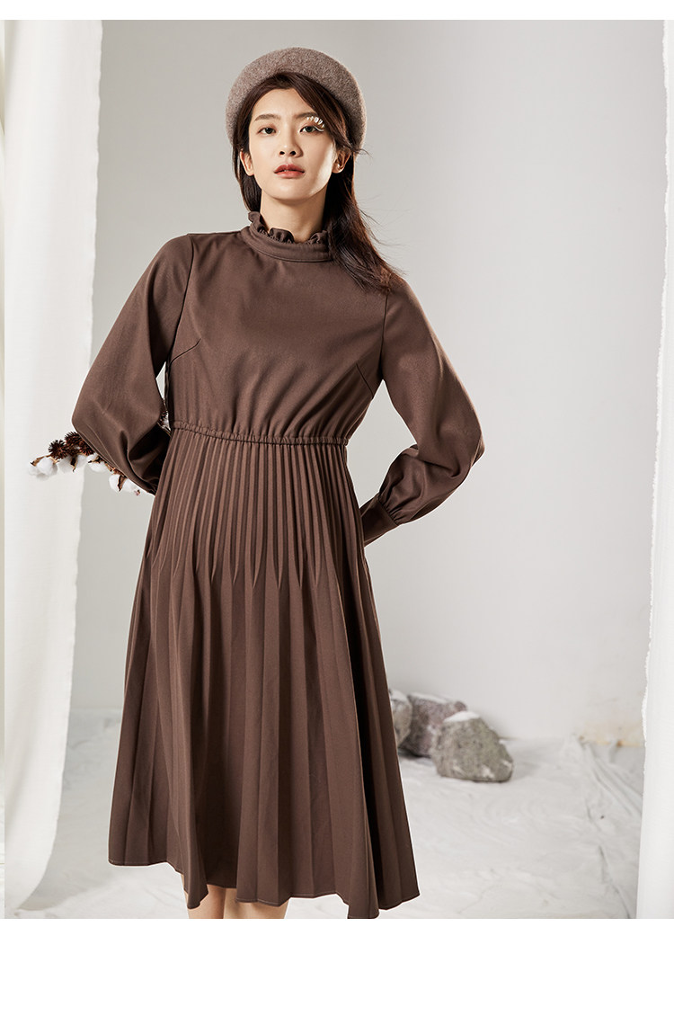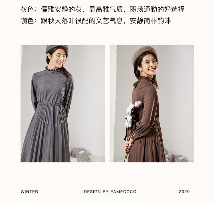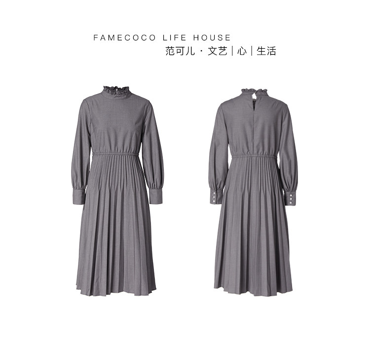 famecoco范可儿连衣裙长袖收腰显瘦气质长裙F208FA007