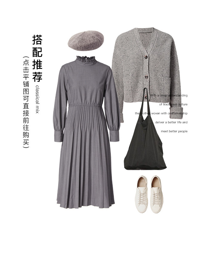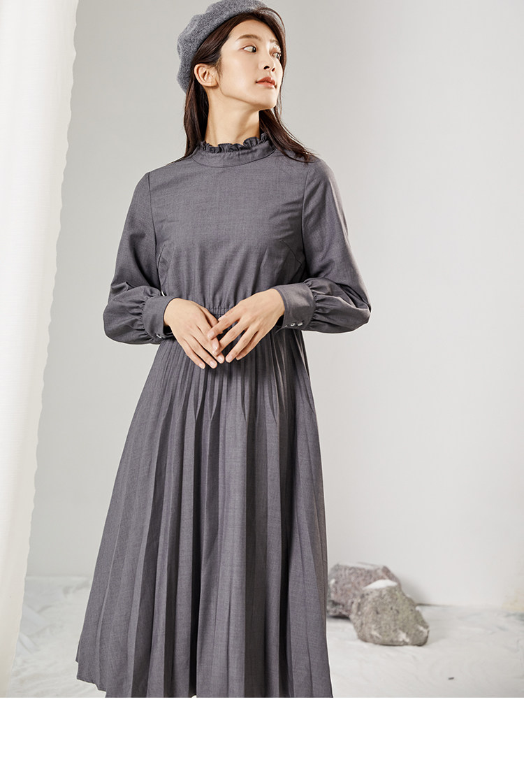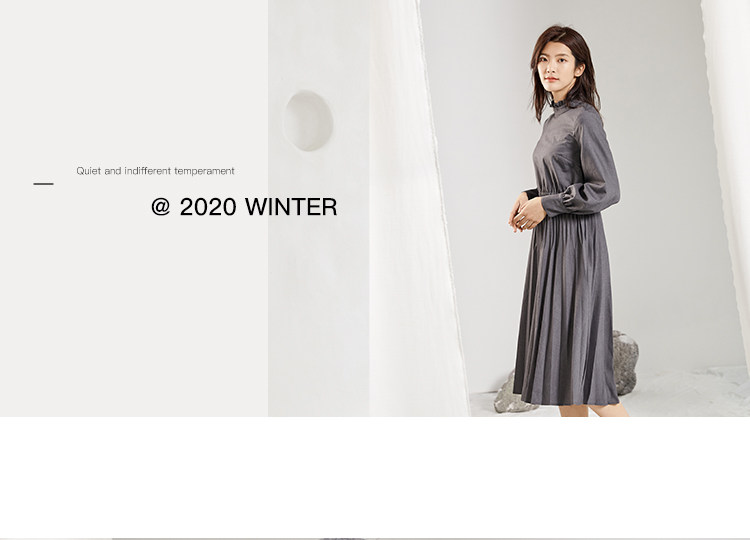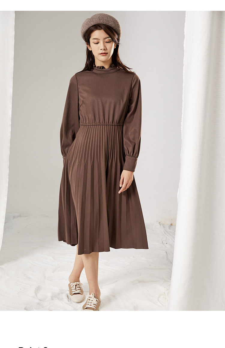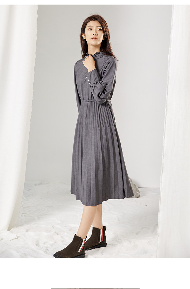 famecoco范可儿连衣裙长袖收腰显瘦气质长裙F208FA007