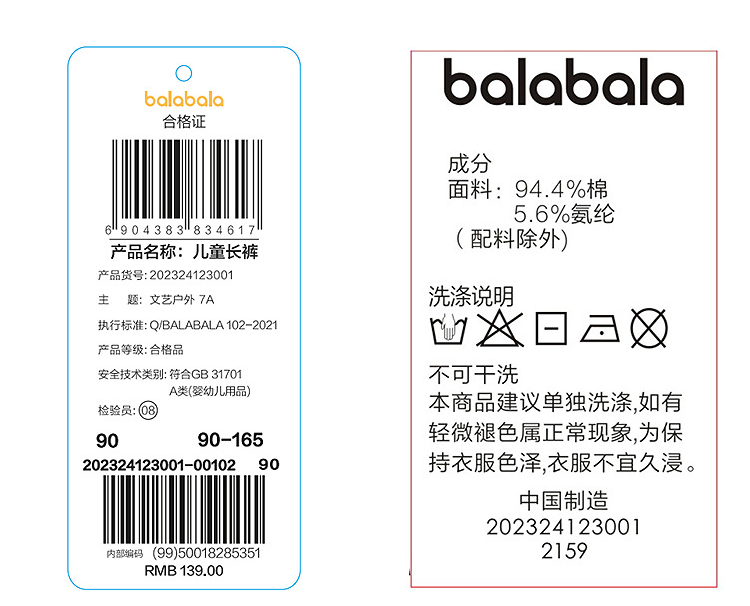 巴拉巴拉女童长裤拼色打底裤秋款裤子弹力修身舒适撞色时尚百搭潮