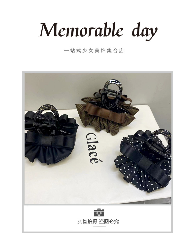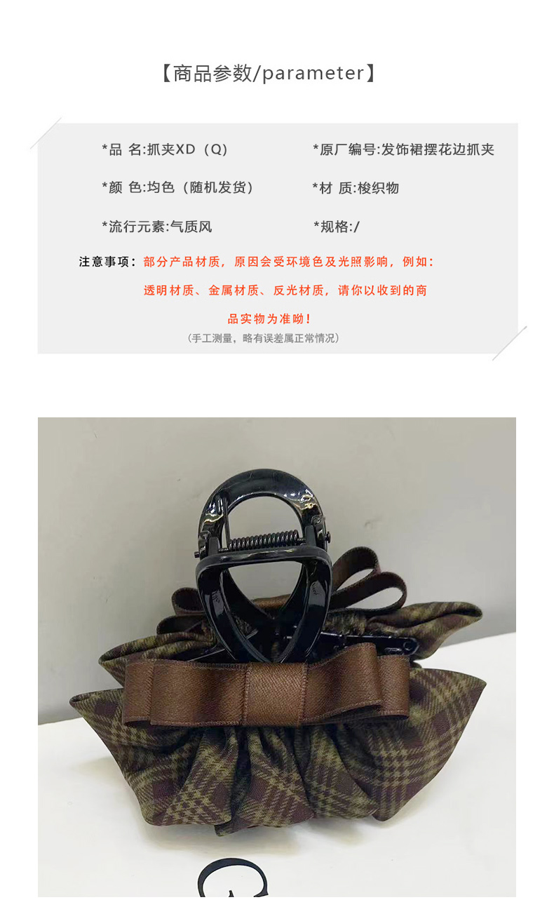 韩版格纹蝴蝶结褶皱裙摆鲨鱼夹头饰-纪念日百货门店同款167295699