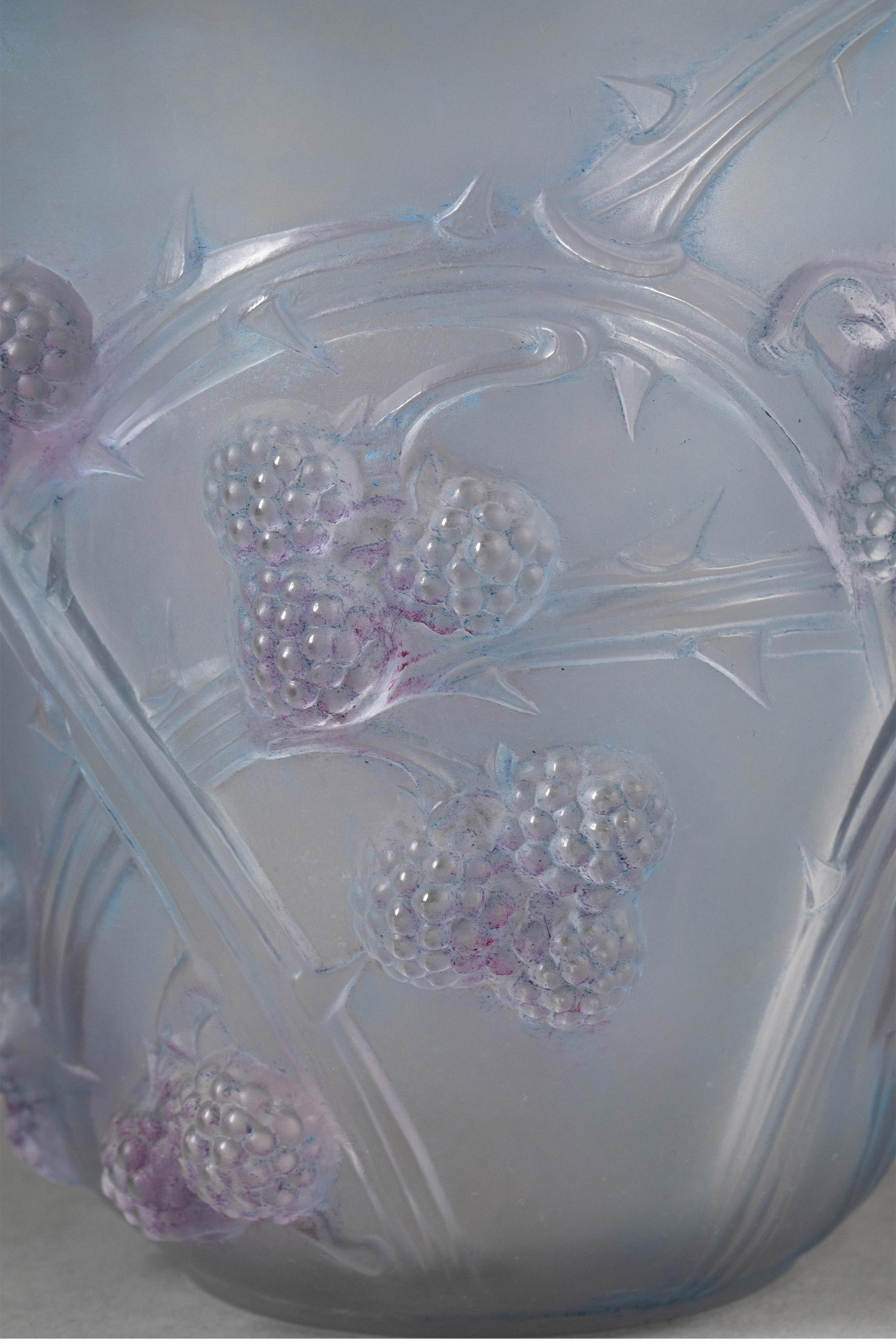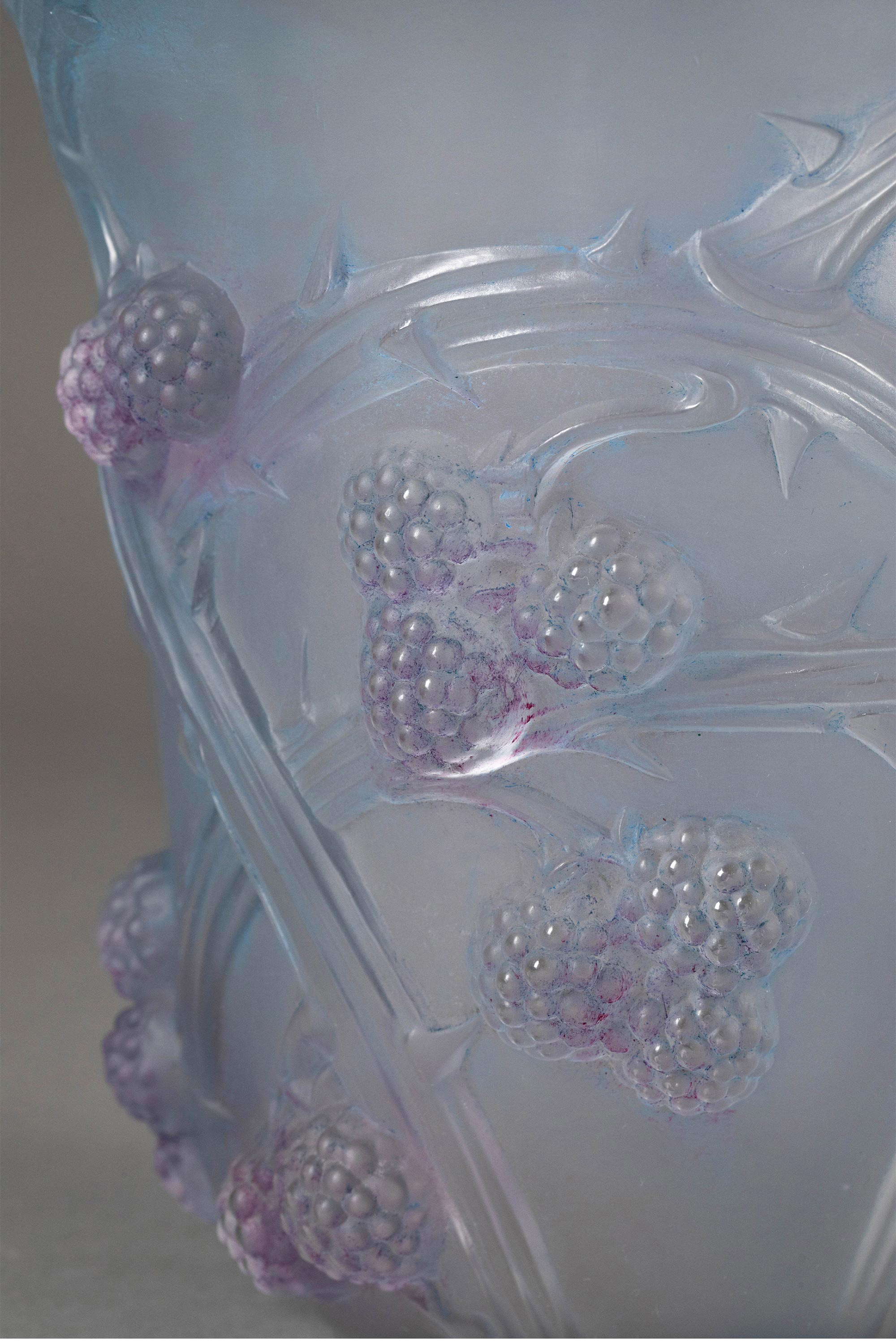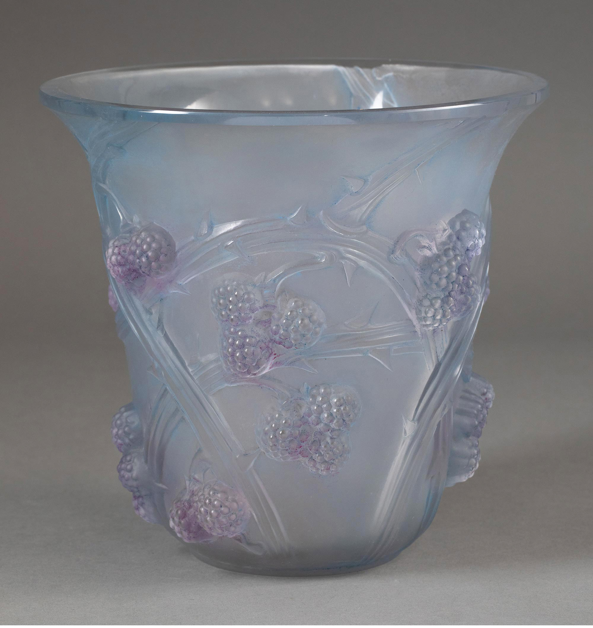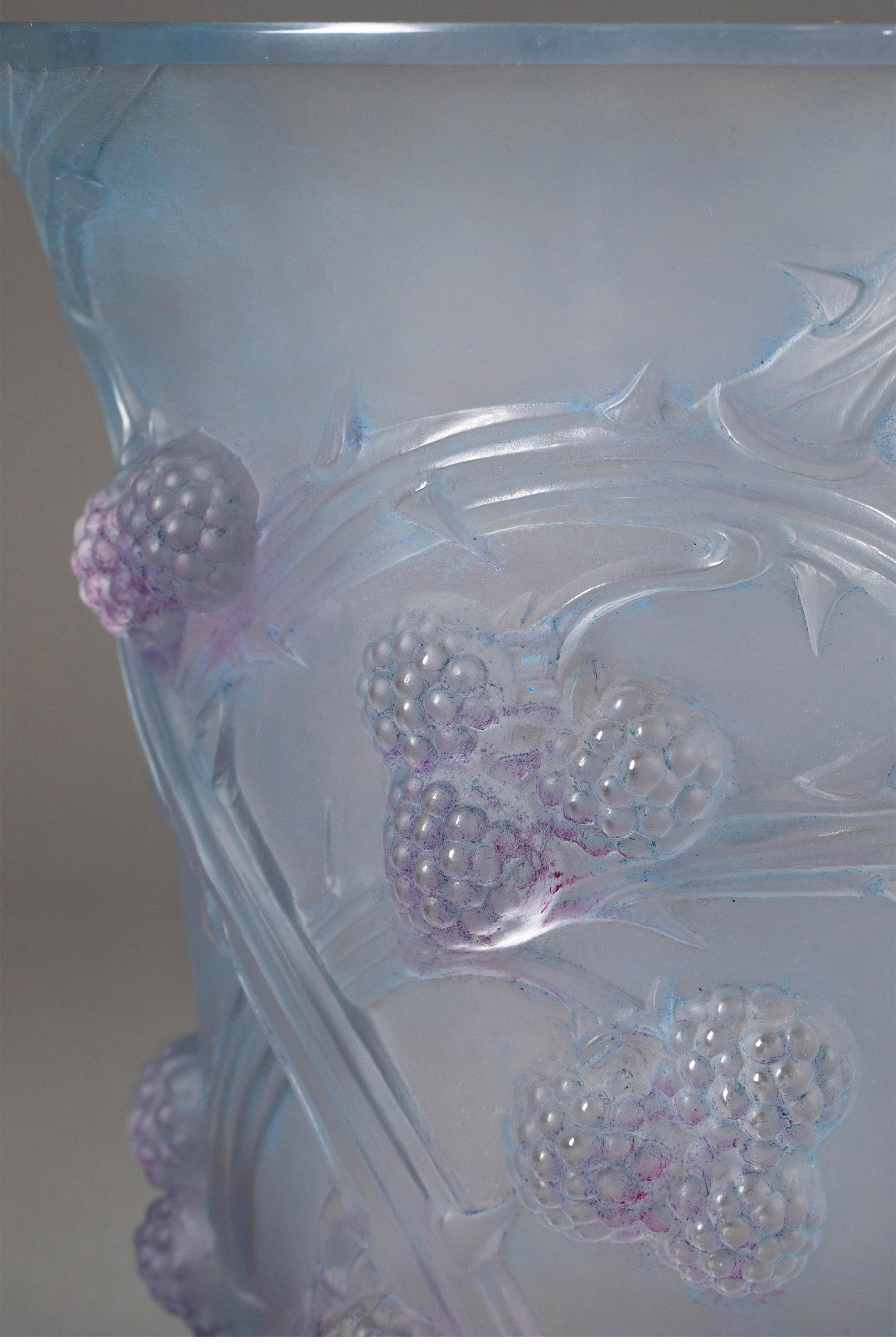 1930年法国顶级水晶工坊莱俪LALIQUE设计出品「MURES 黑莓」主题蓝底紫韵欧泊水晶花瓶