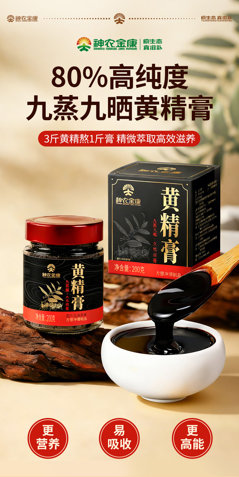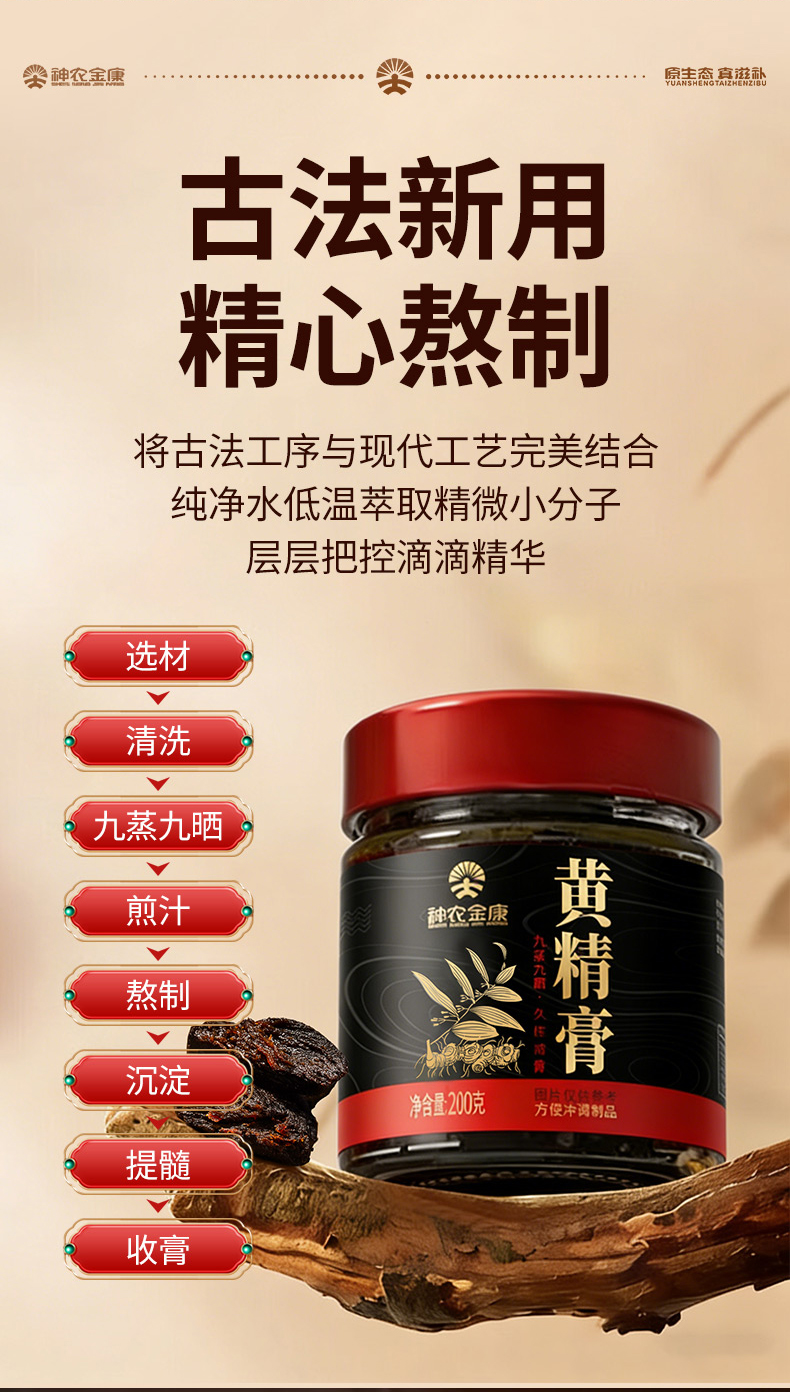 神农金康 黄精膏200g/罐 多花黄精九蒸九晒久炼成膏 原生态真滋补喝护家人健康