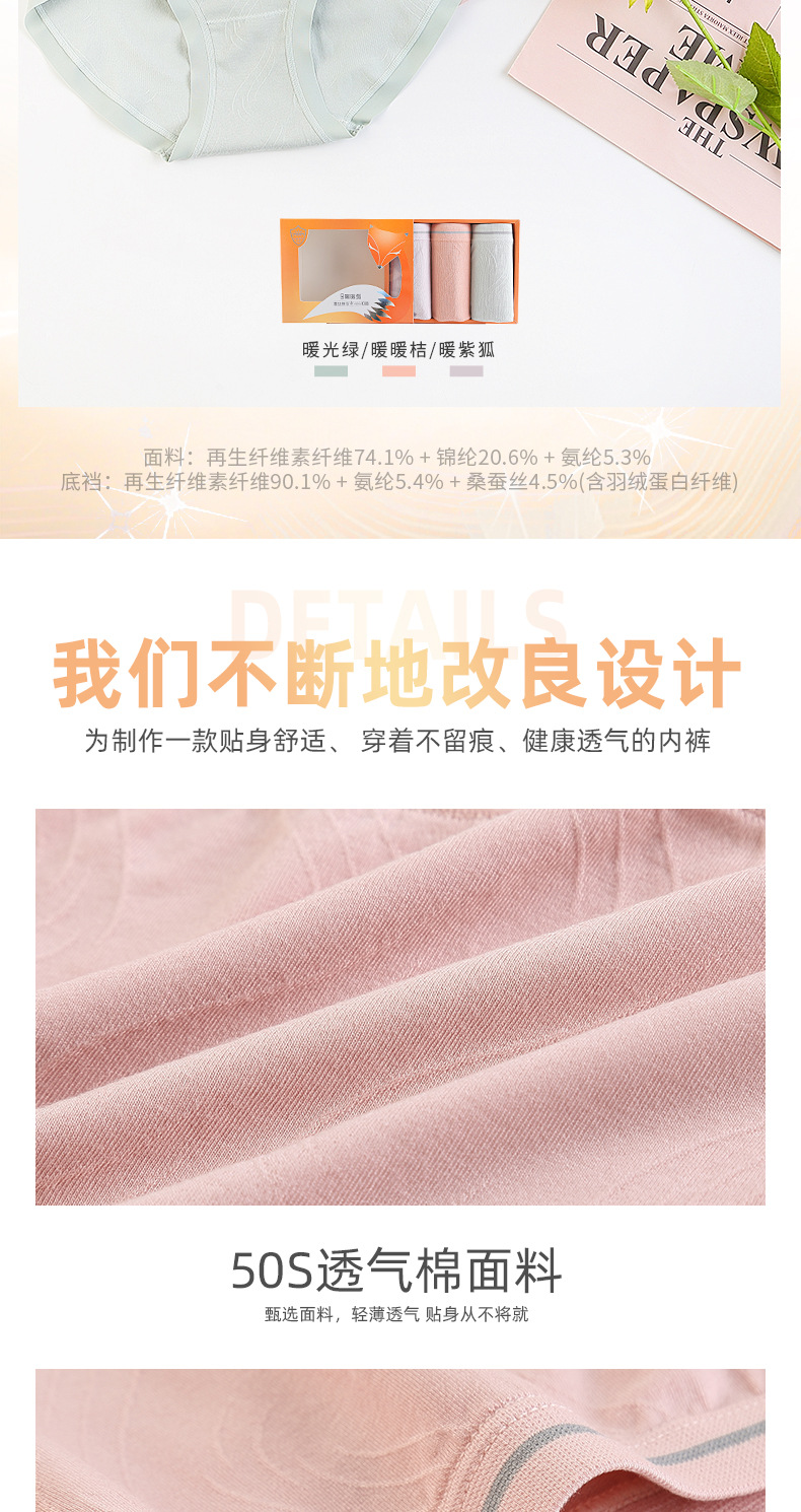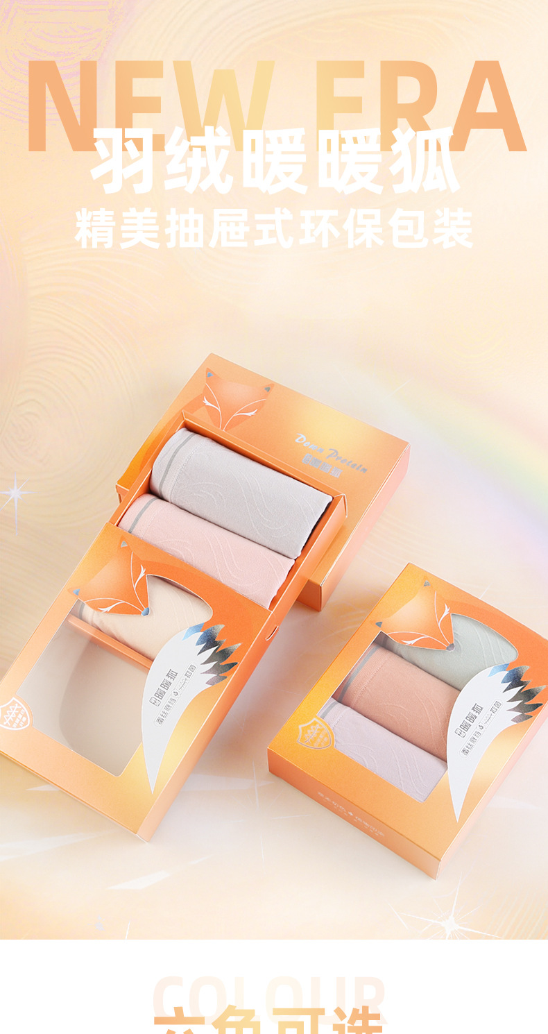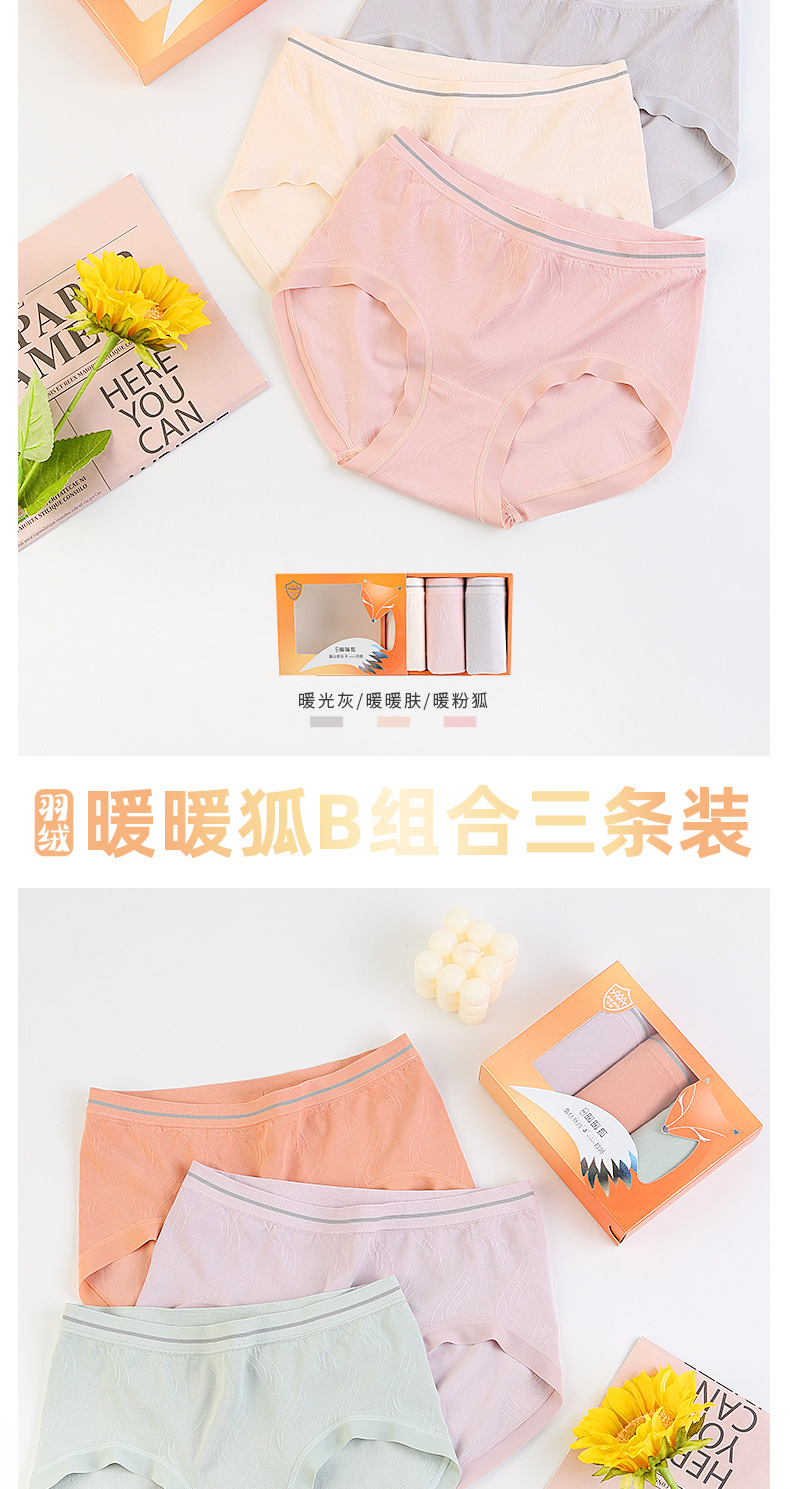 【3条装暖暖狐内裤】裸氨无缝海藻棉质抑菌女士内裤无痕透气提包臀舒适内裤女羽绒暖暖裤宝盒礼盒