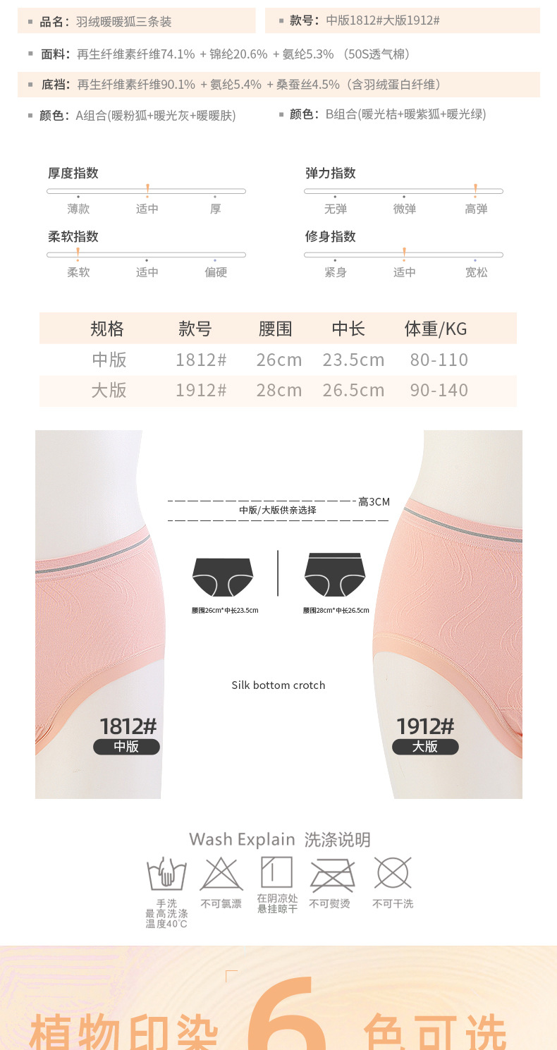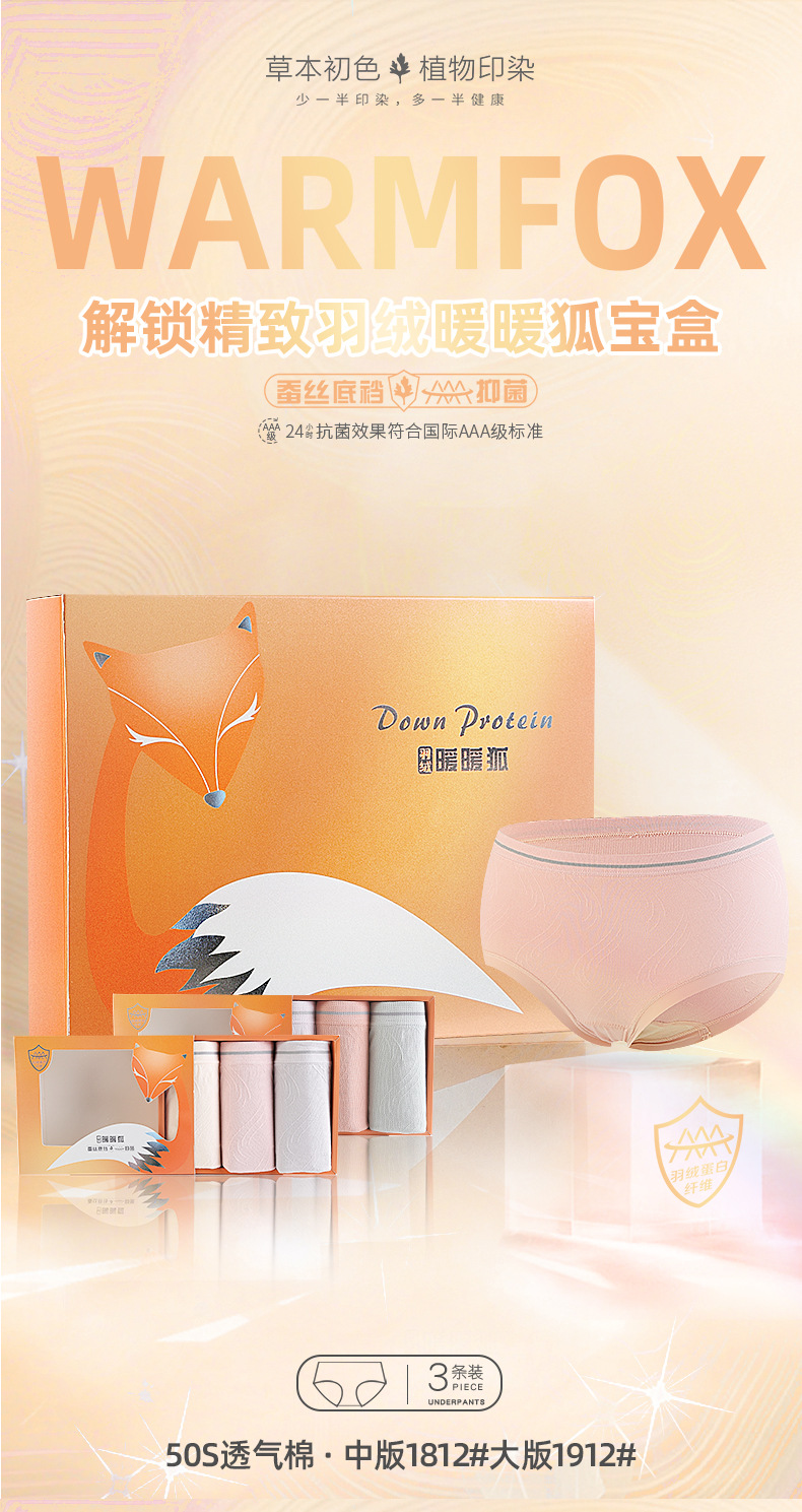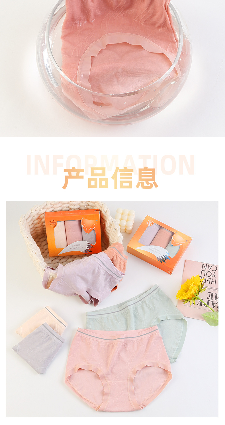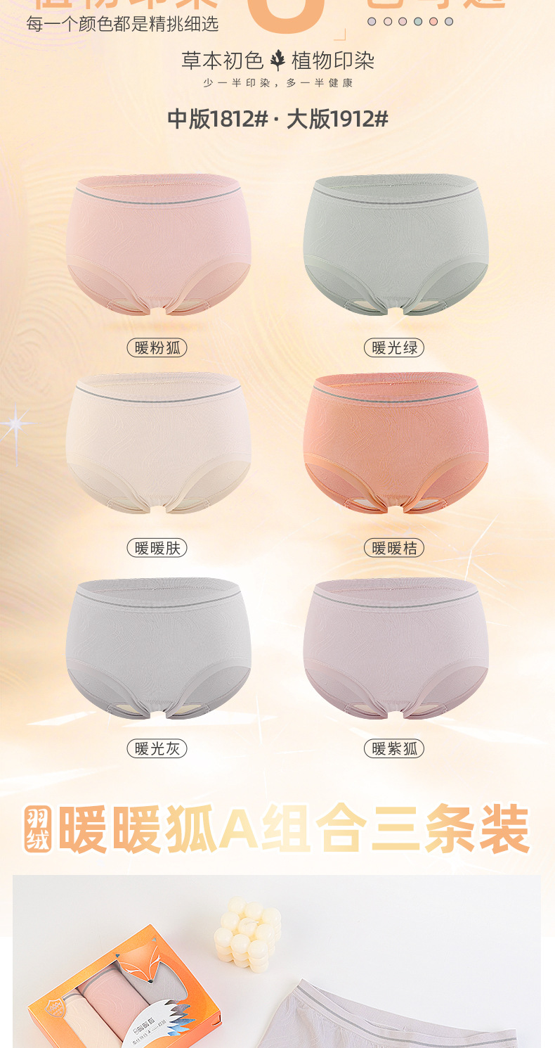 【3条装暖暖狐内裤】裸氨无缝海藻棉质抑菌女士内裤无痕透气提包臀舒适内裤女羽绒暖暖裤宝盒礼盒