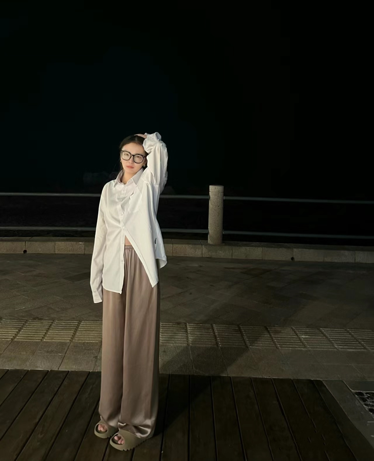 宽松的裤腿设计,更加凸显出温柔知性的气质