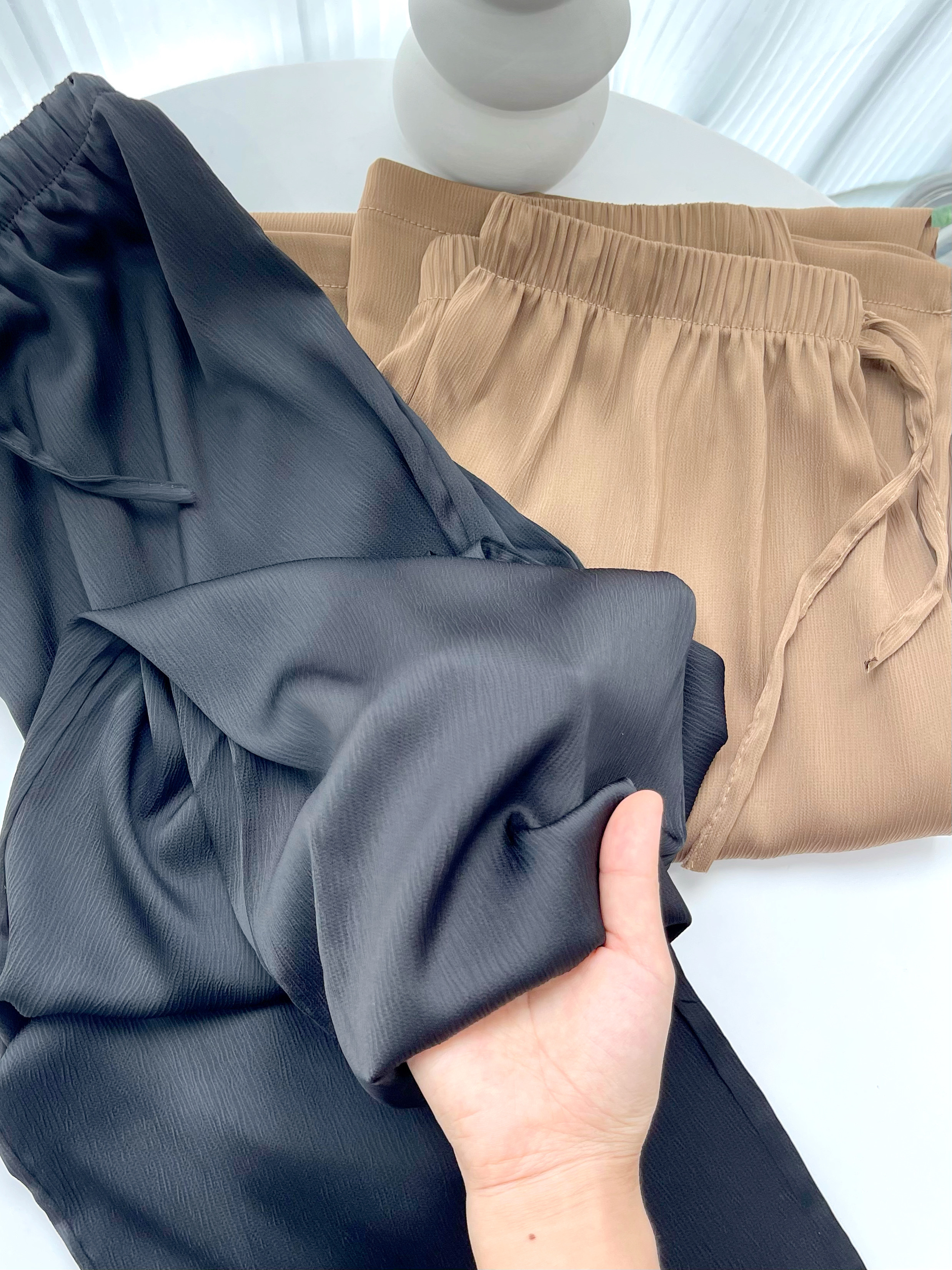 那这个【醋酸冰丝阔腿裤】绝对是你的最佳拍档!