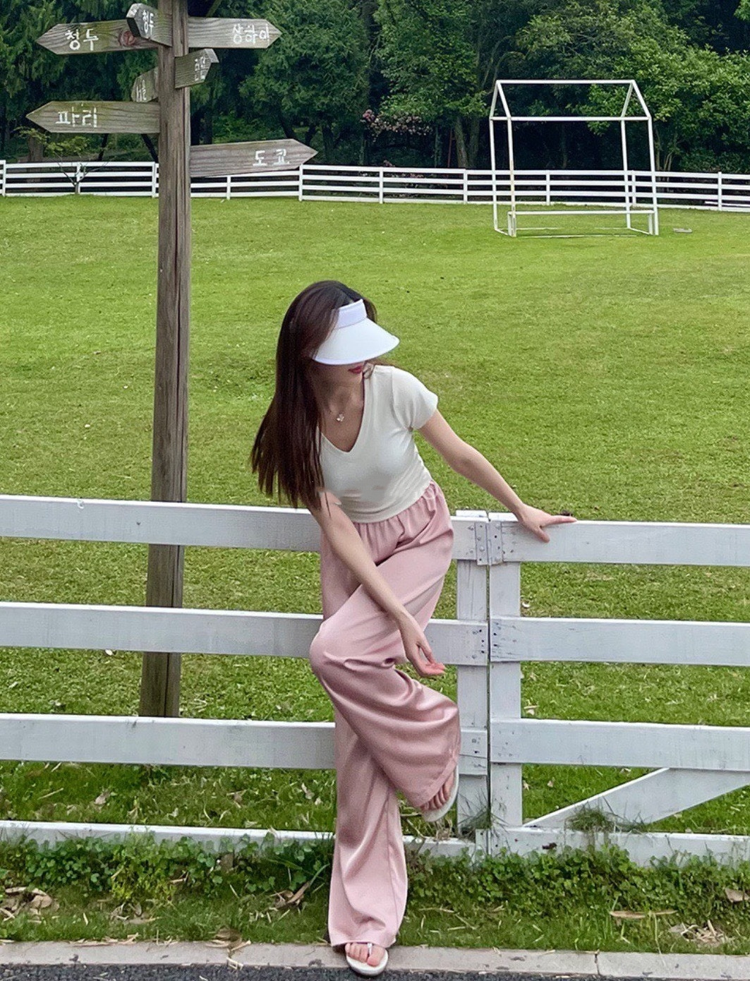 可以选择一件简约的白色或浅色上衣,营造出清新甜美的风格