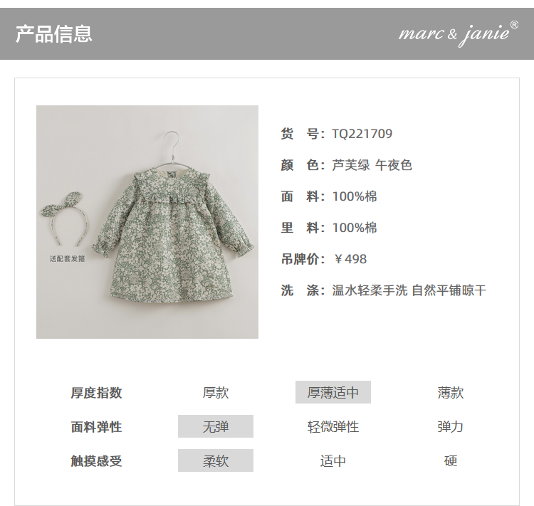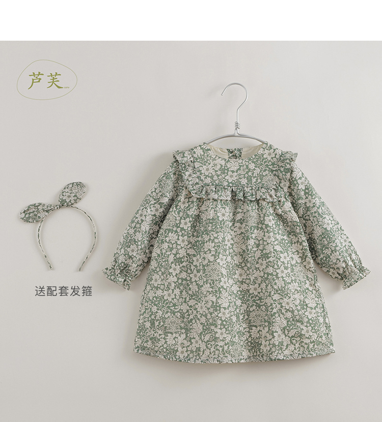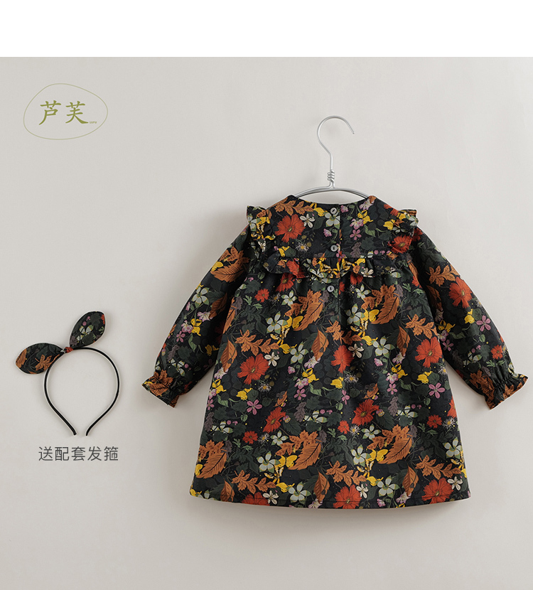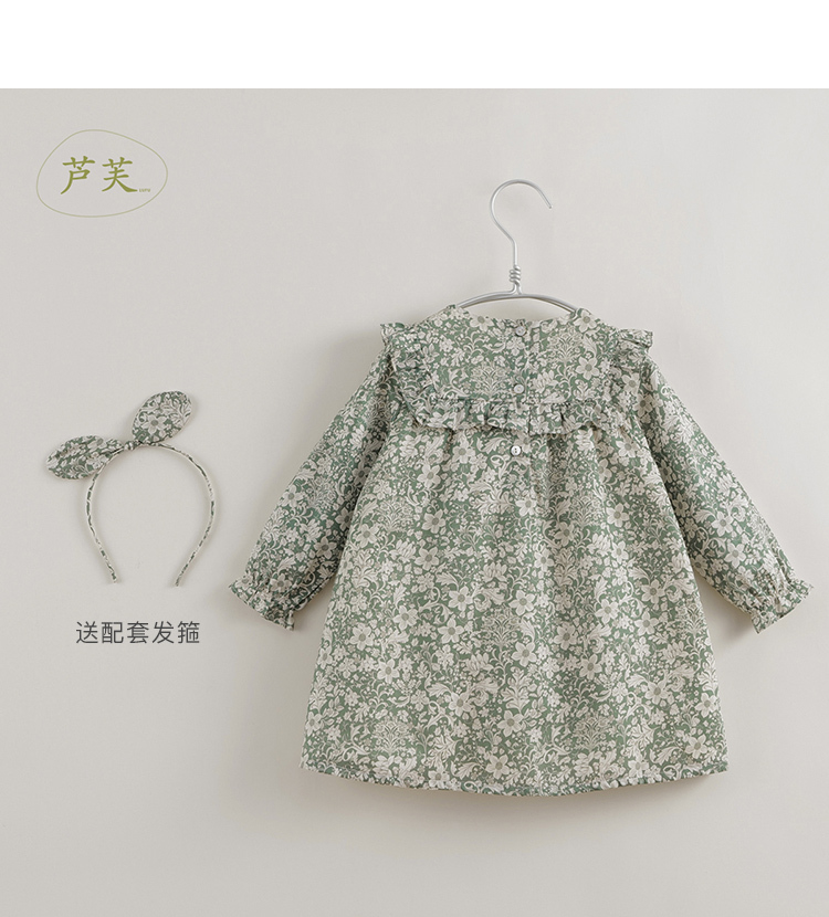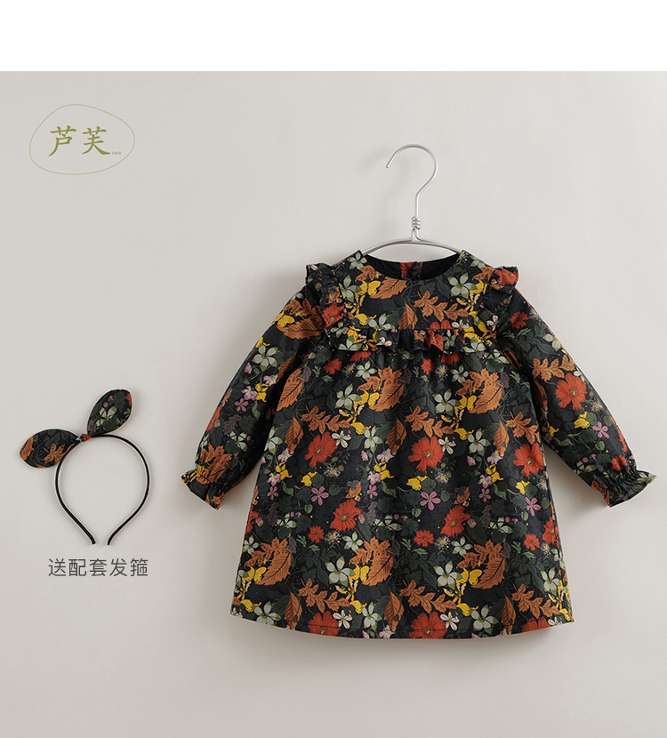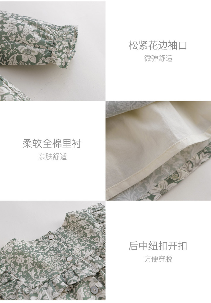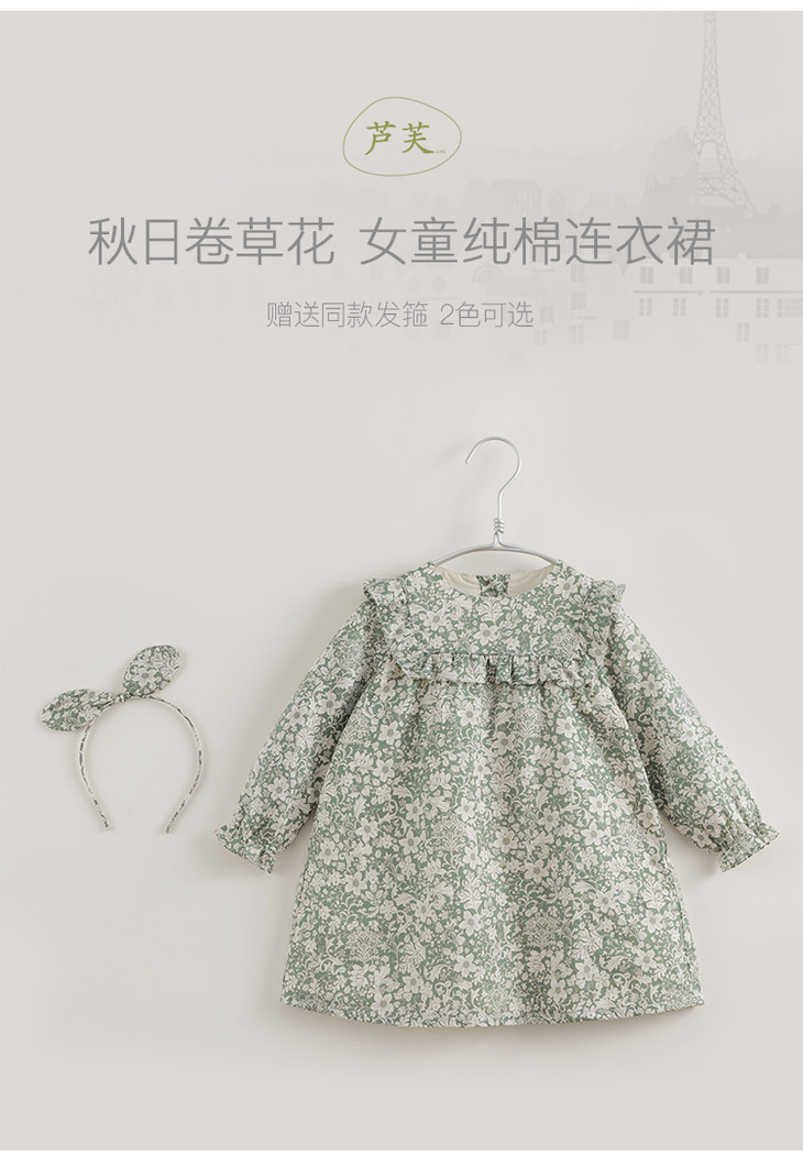 【马克珍妮 芦芙】秋装新款 秋日卷草花纯棉连衣裙221709