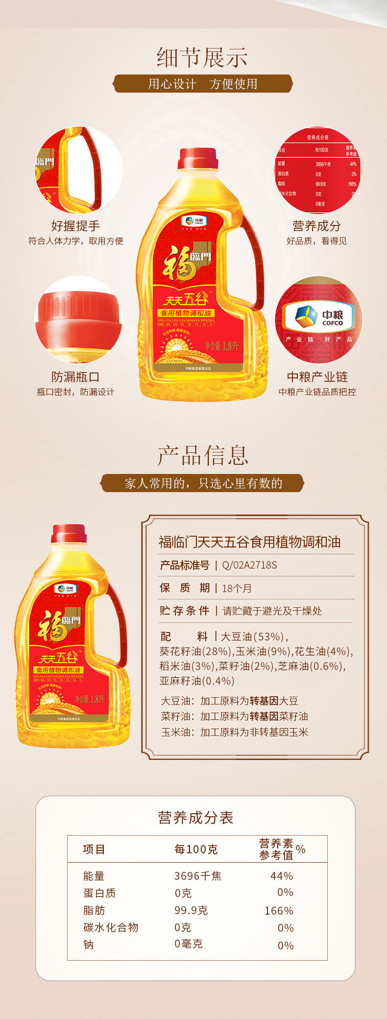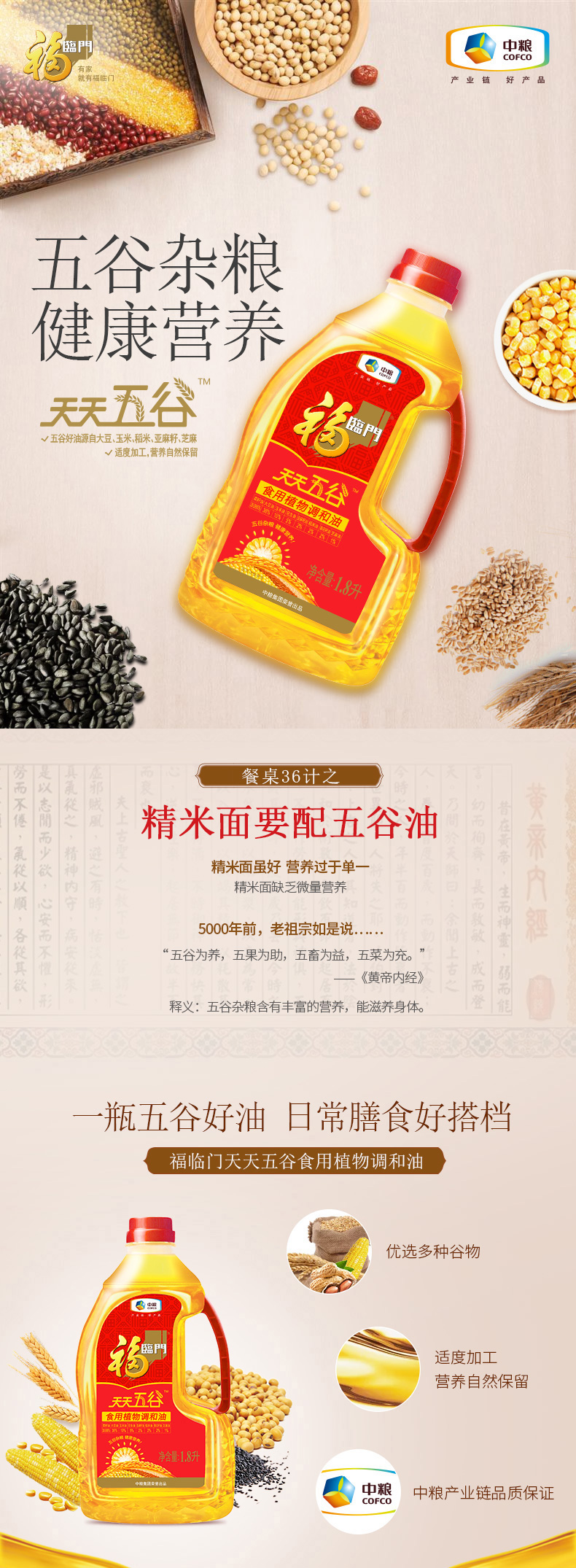 福临门天天五谷食用调和油1.8L