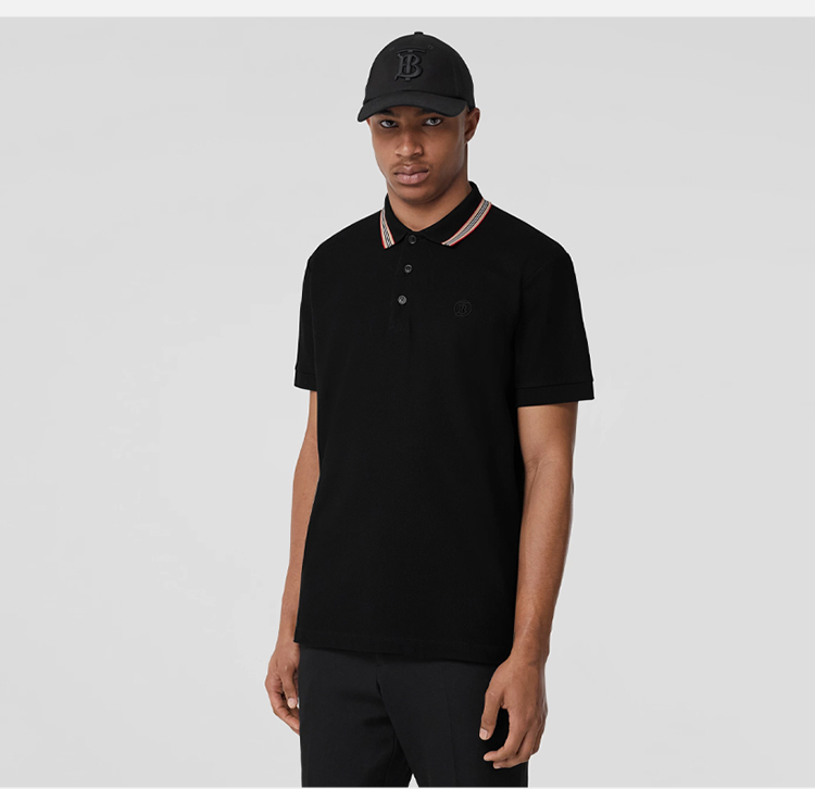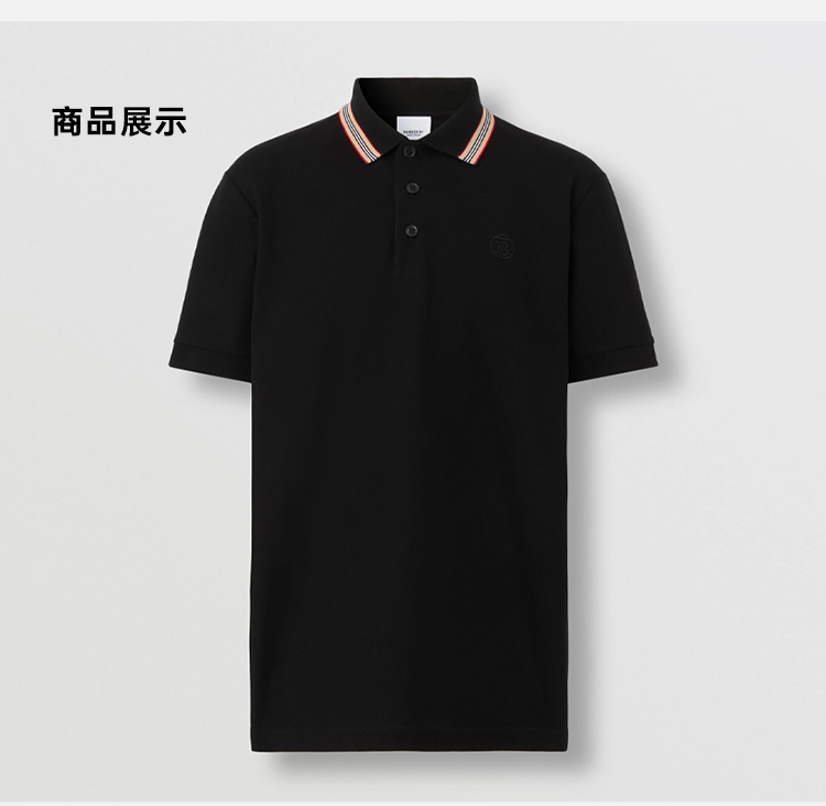 【二】BURBERRY 巴宝莉 男士标志性条纹衣领珠地网眼布棉质短袖 Polo 衫 黑色 8053773 A1189