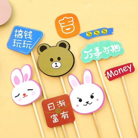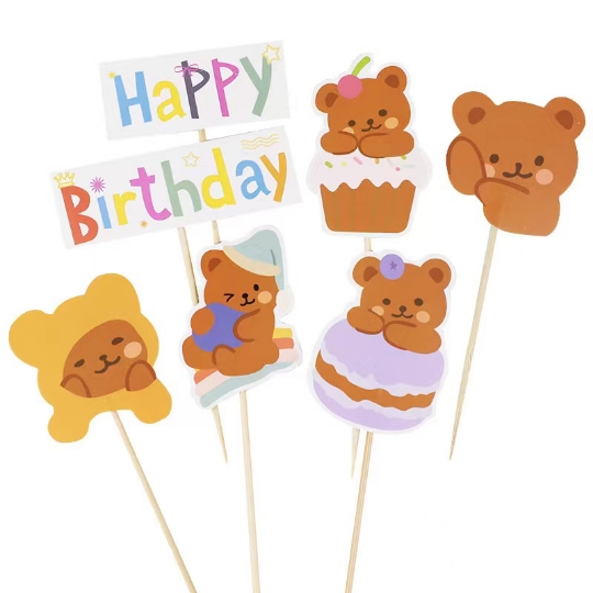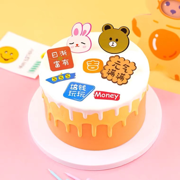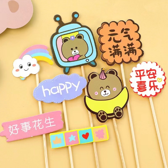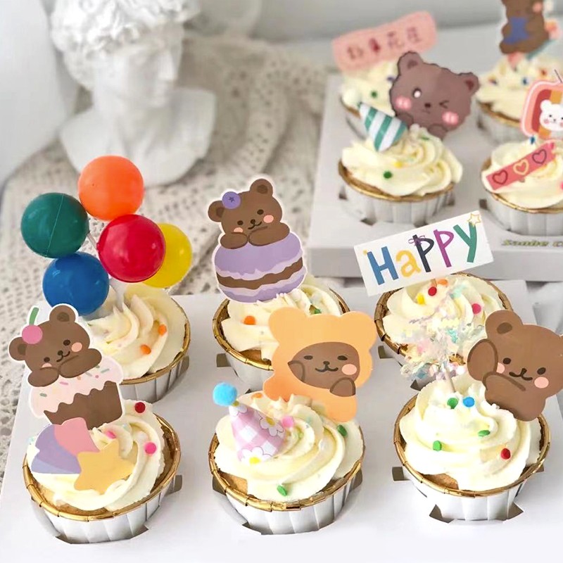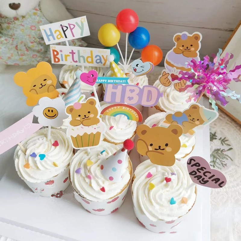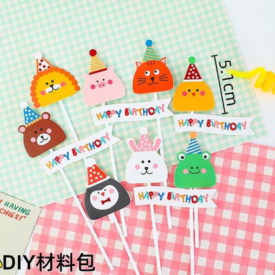 网红ins卡通纸杯蛋糕装饰插件 元气满满可爱卡通熊狮子兔子饭团动物火焰蜡烛插件