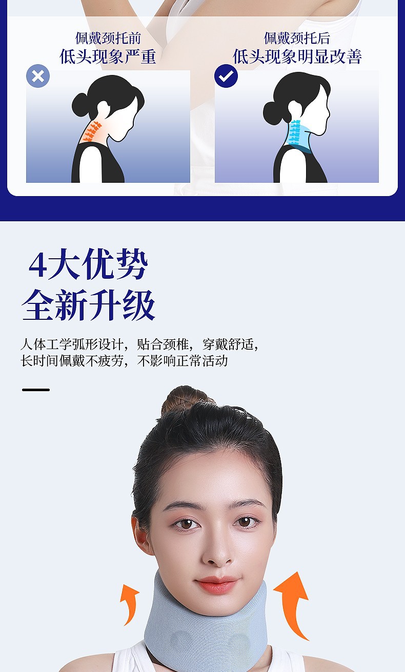 「新升级!360°环抱贴合」家用颈托办公室低头脖子减负护脖颈椎固定前颈托可水洗防倾斜颈托健康训练