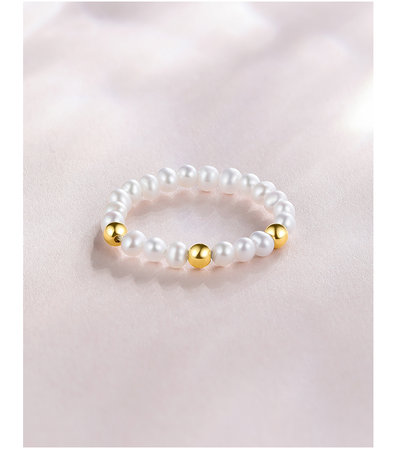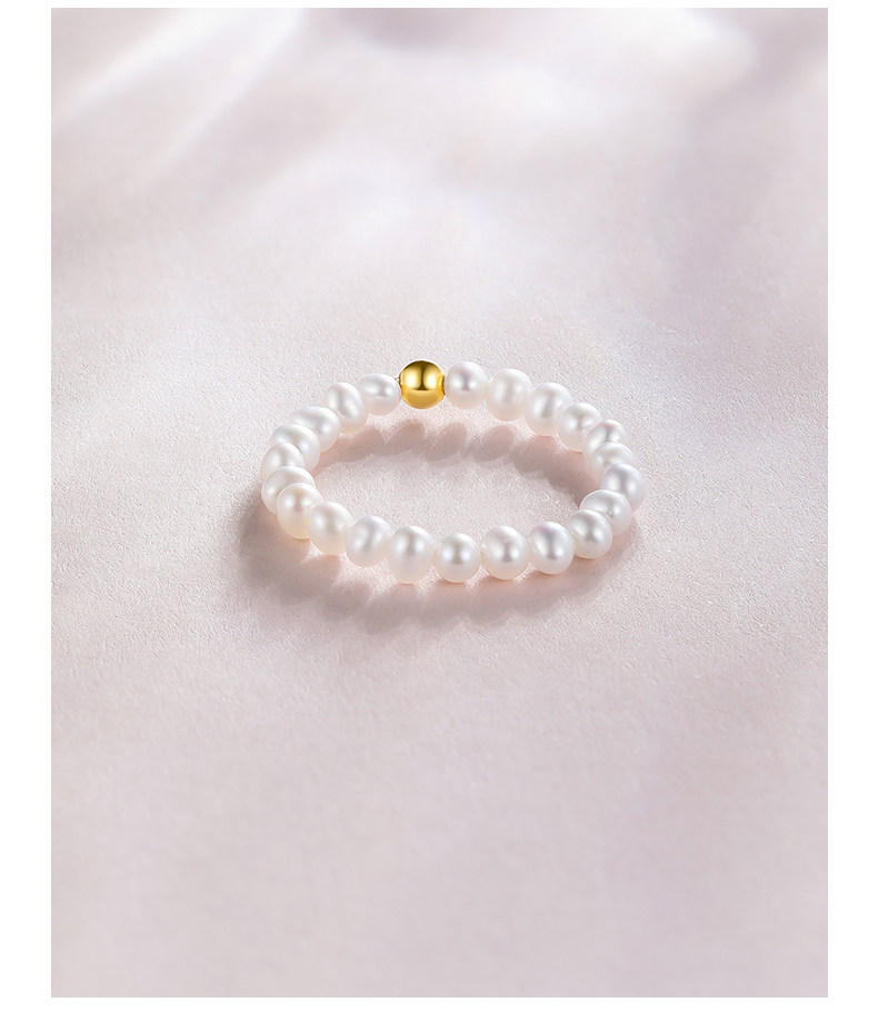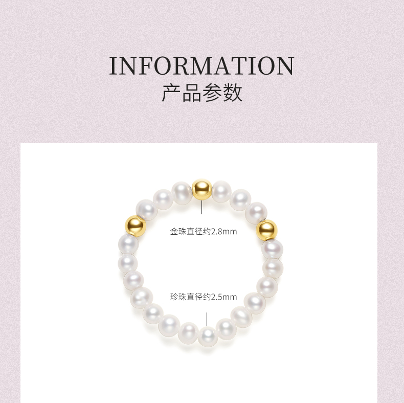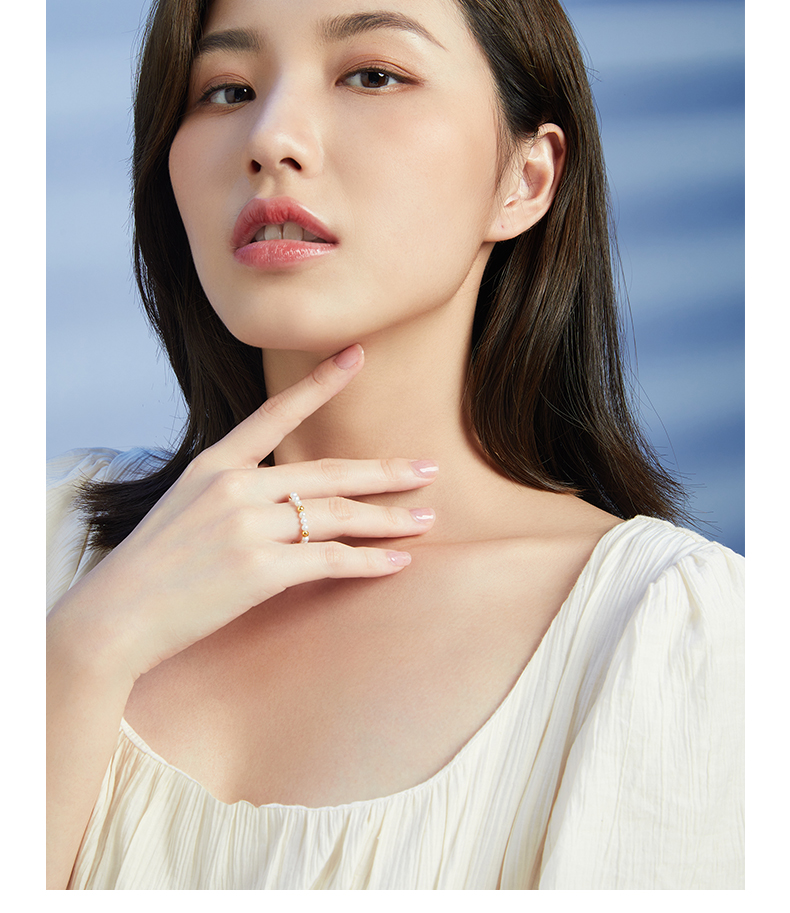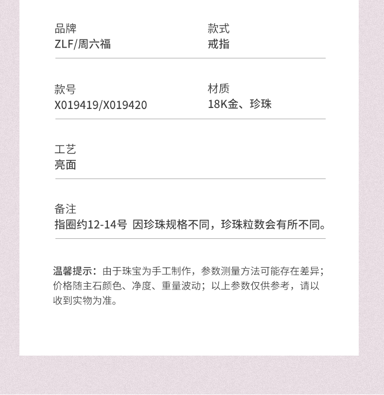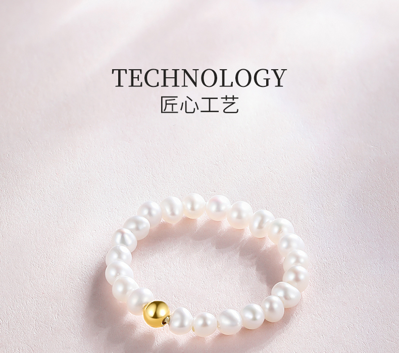 周六福黄18K淡水珍珠戒指女款优雅INS风黄18k金指环官方正品送礼