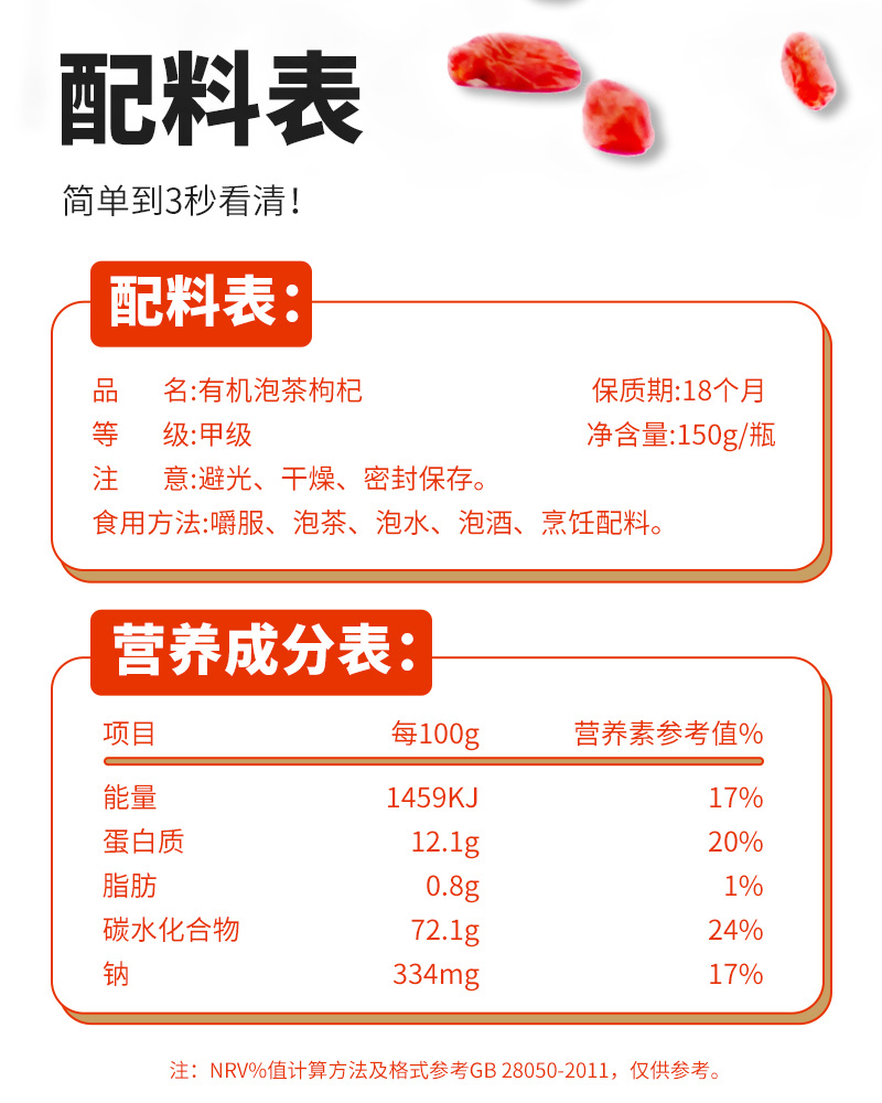凰茎青海有机泡茶枸杞150克无硫无农残免洗泡水茶构杞