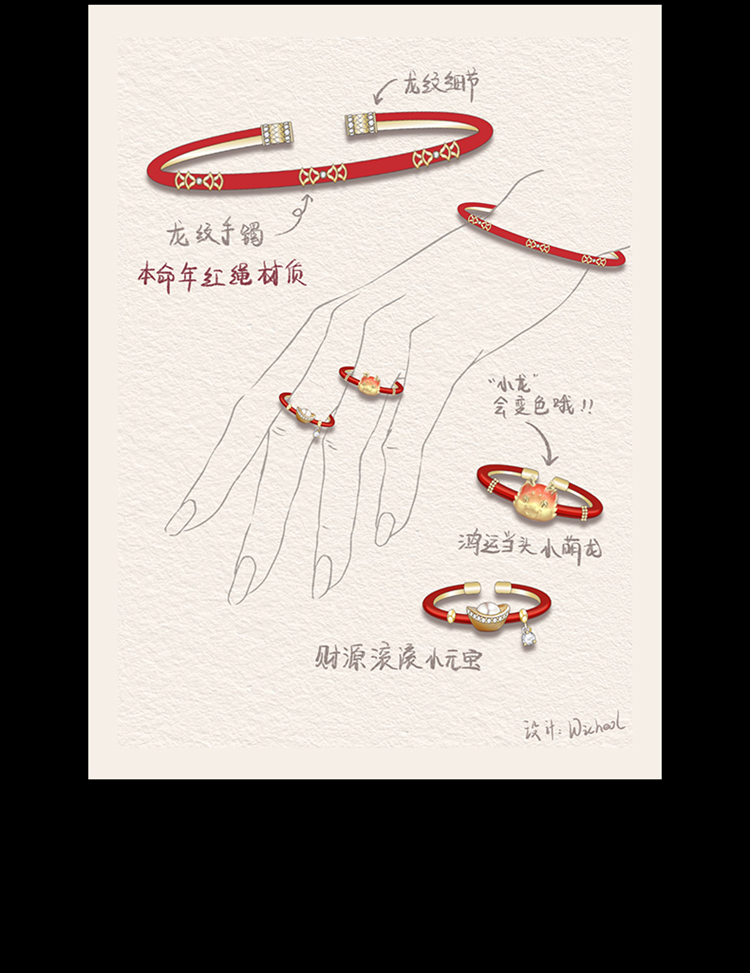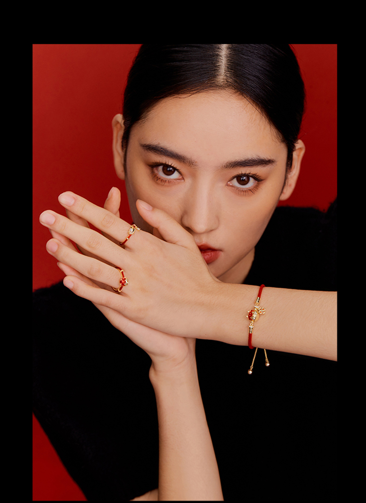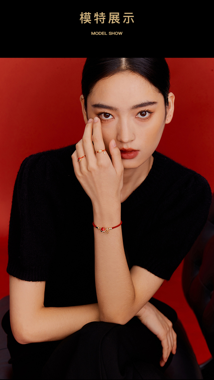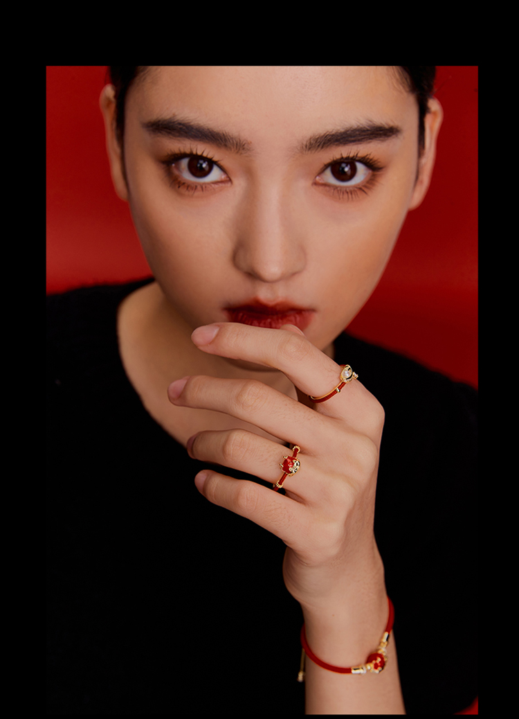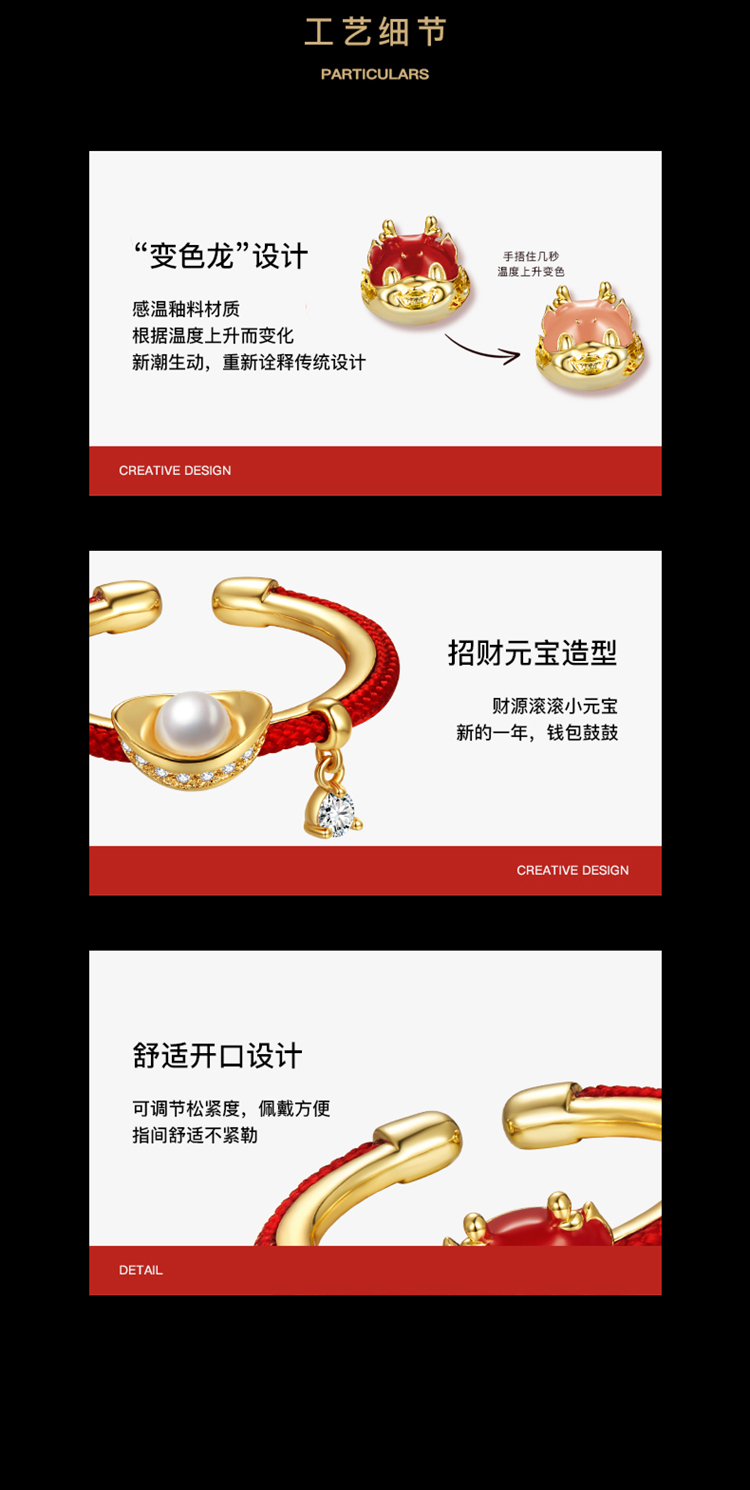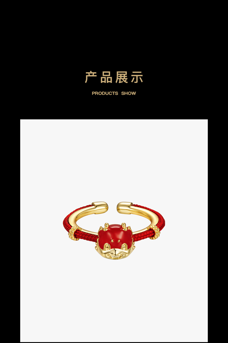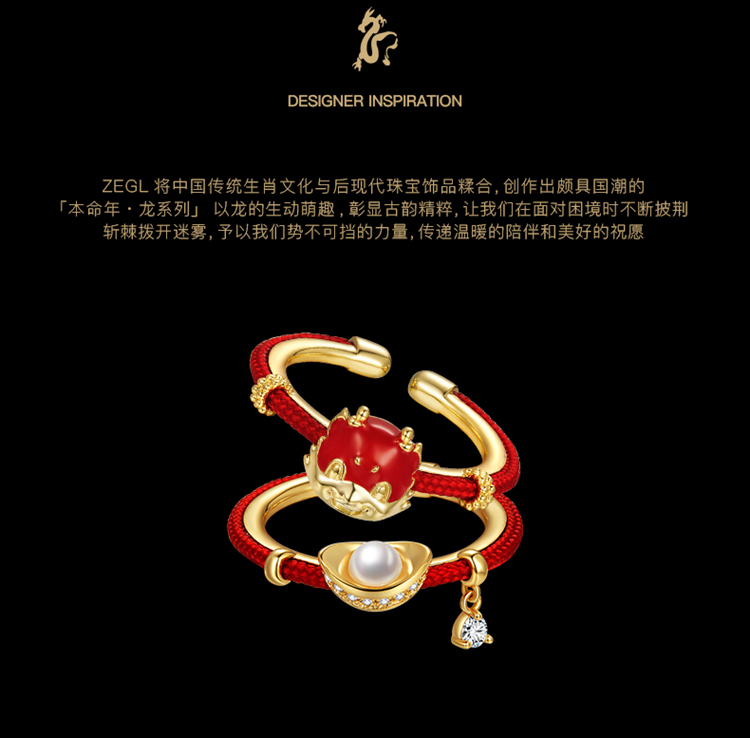 ZEGL设计师本命年龙系列红色开口戒指女小众设计古风元宝食指戒子