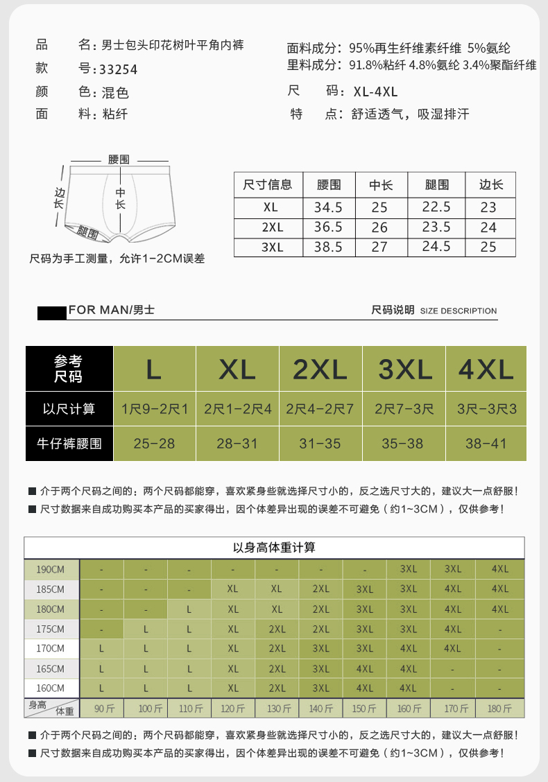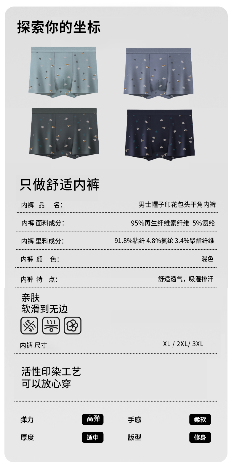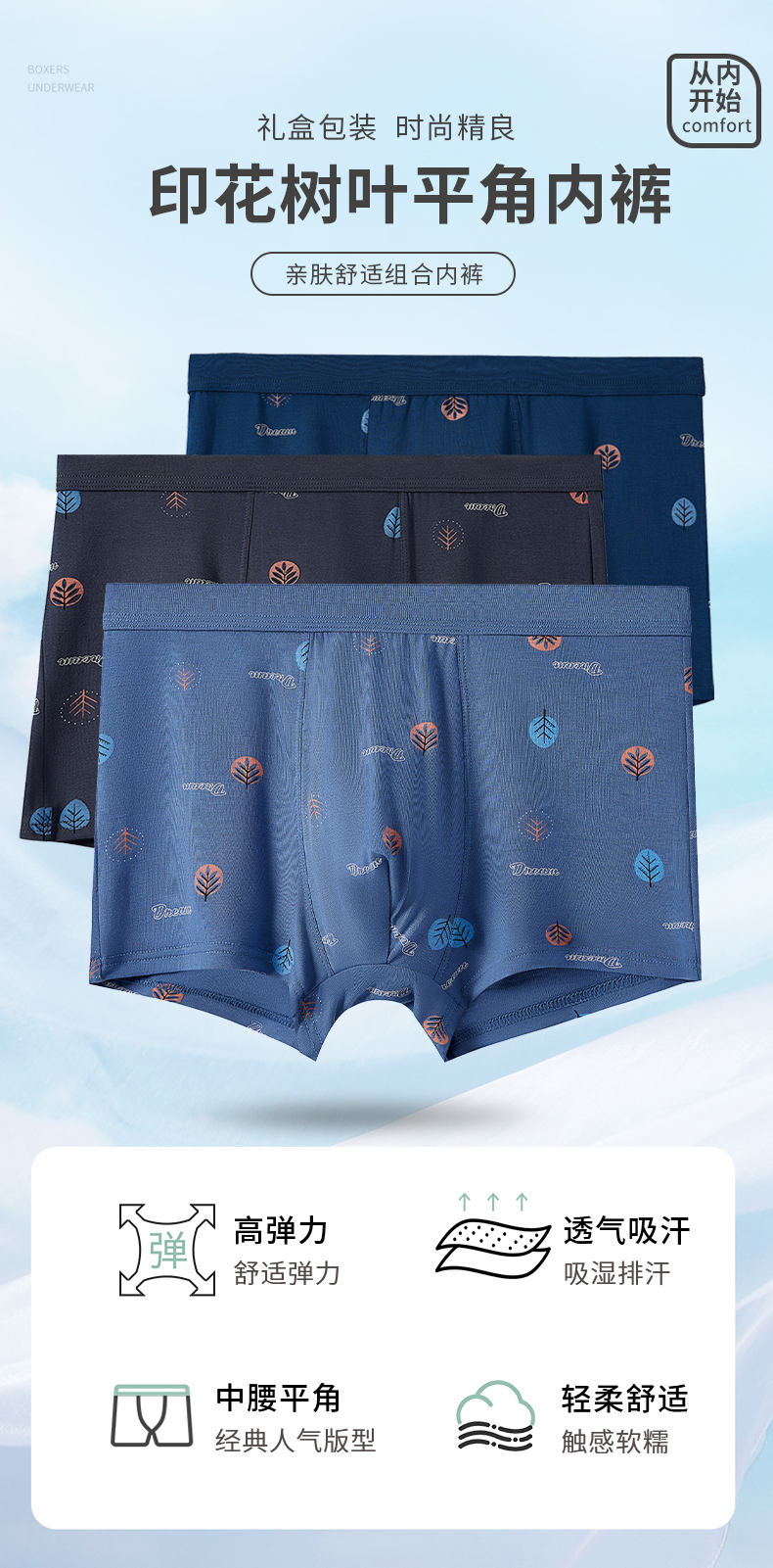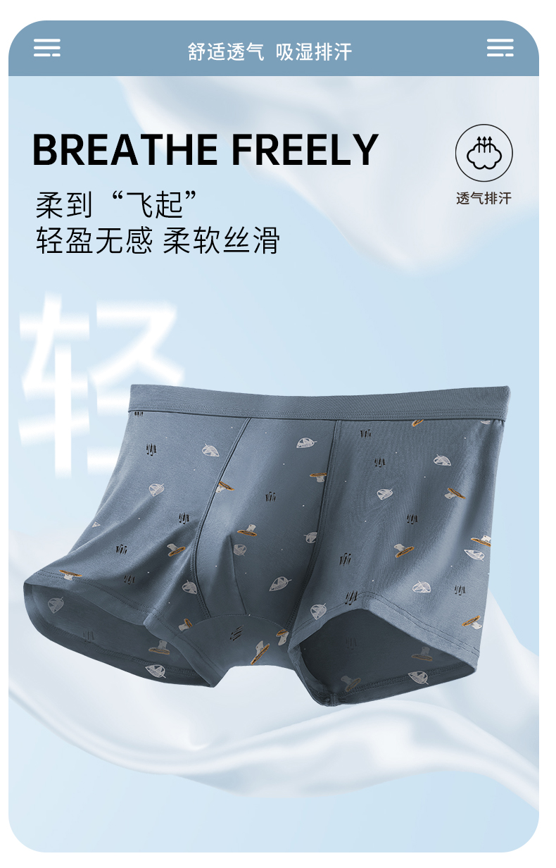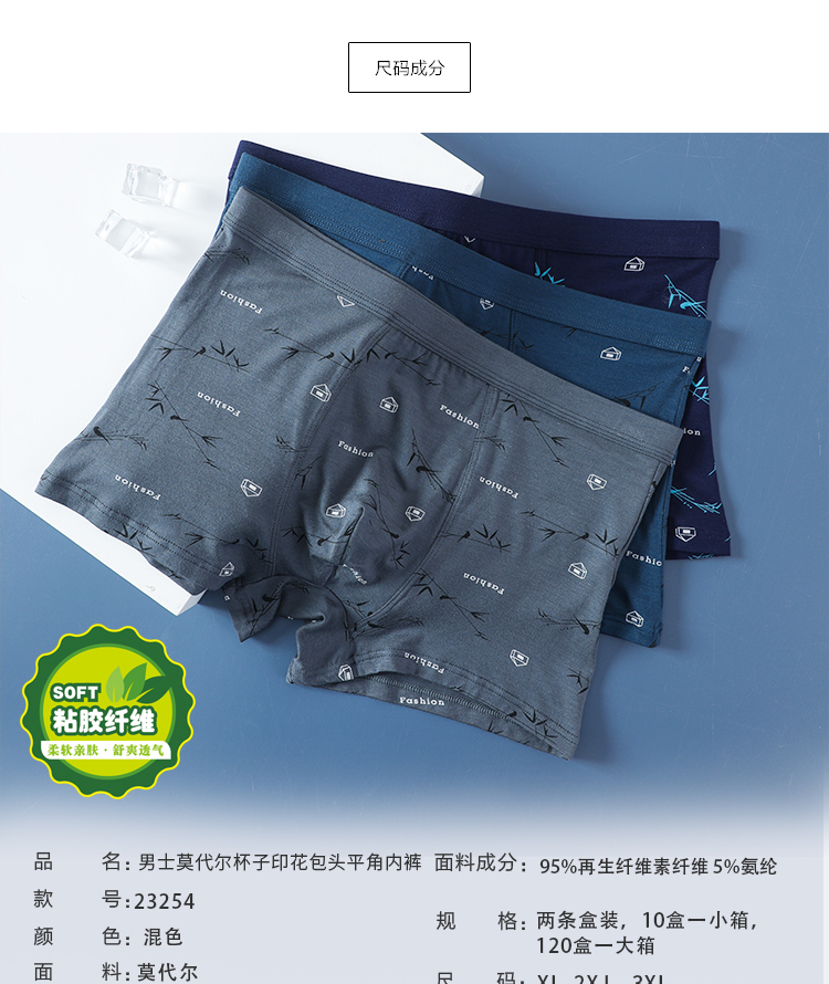 男士舒适透气莫代尔印花盒装平角内裤23254/13254/33254/43254
