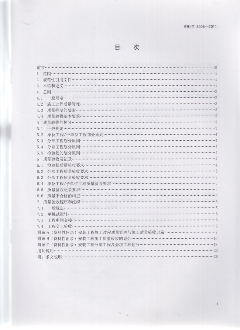 石油化工安装工程施工质量验收统一标准SH/T 3508-2011