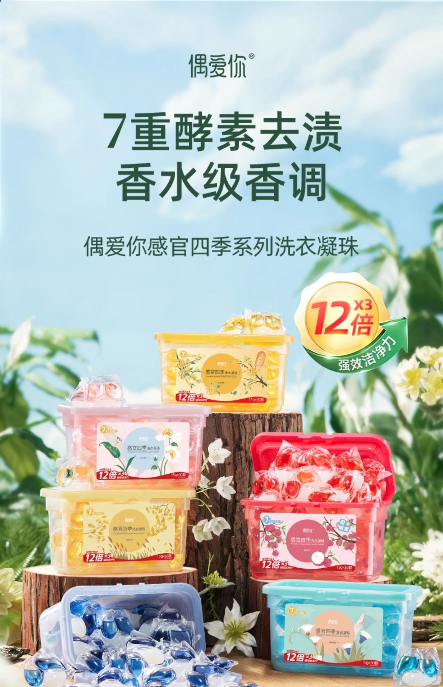偶爱你 感官四季洗衣凝珠 15g*30颗*2盒 7重生物酵素 10倍洁净力 抑菌除螨 长效抵御细菌 48小时发货