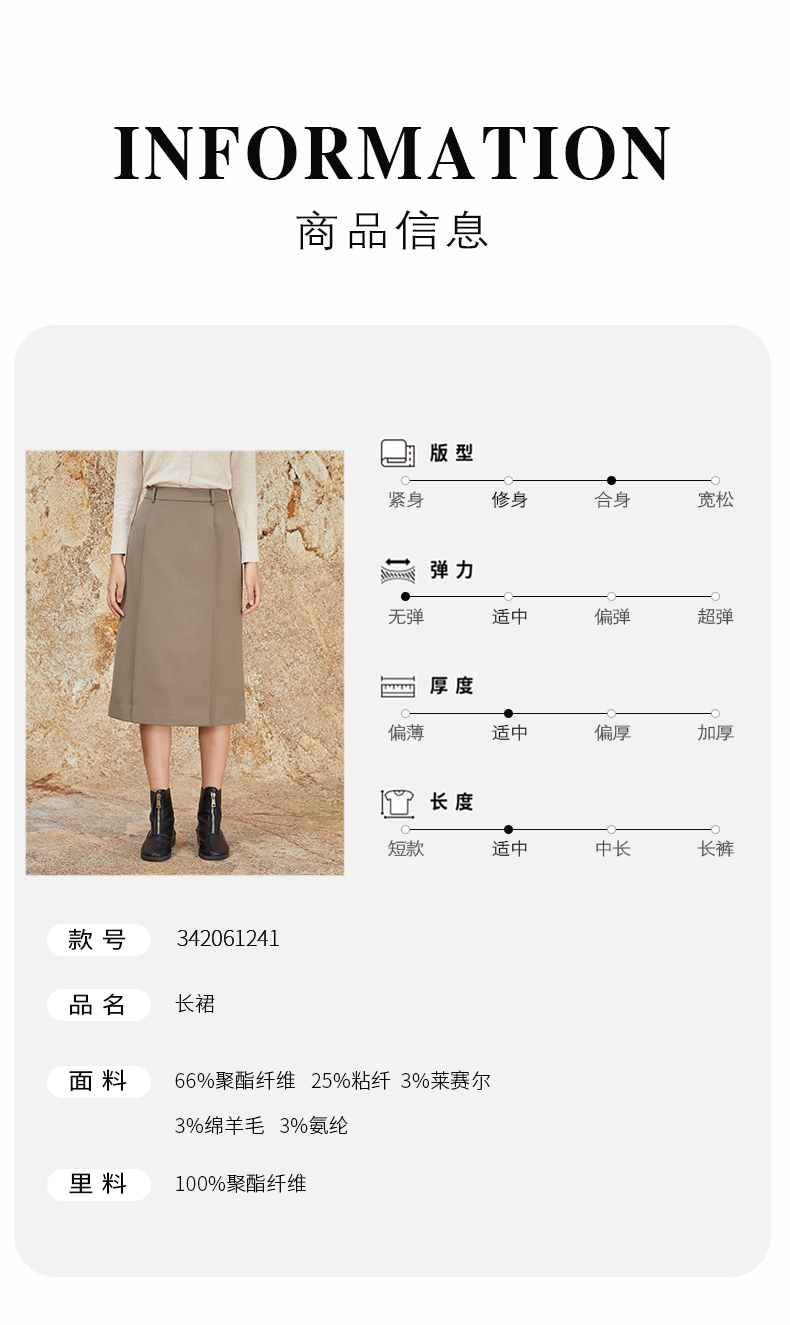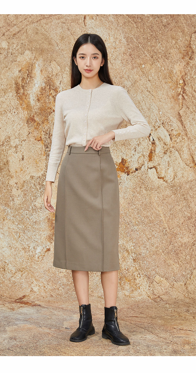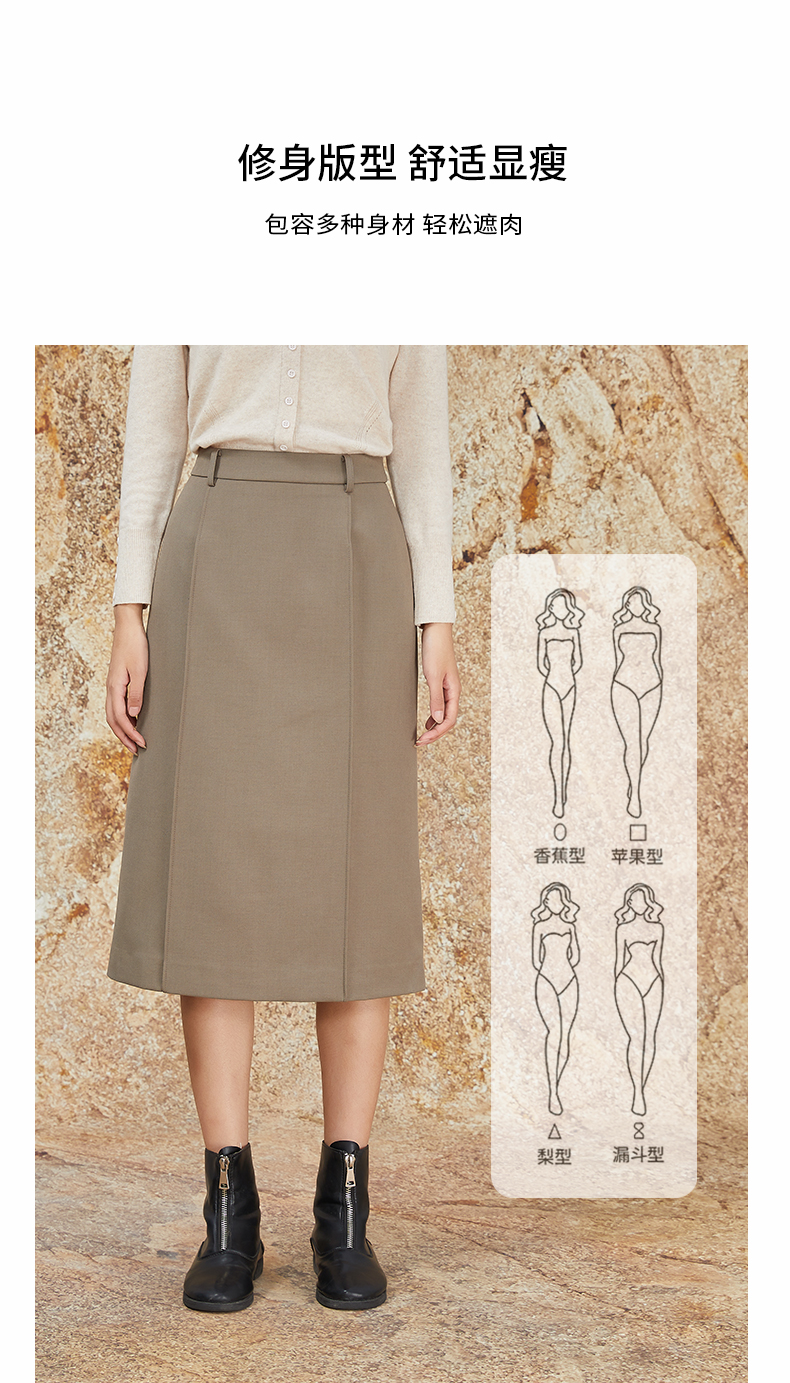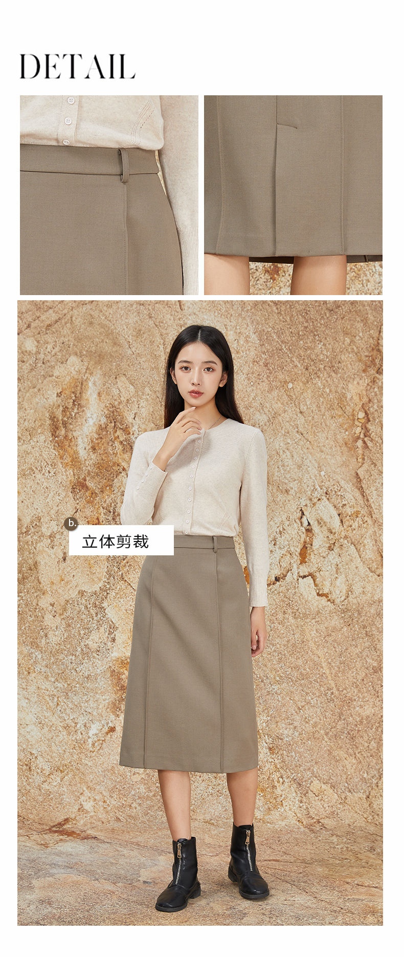 NUTS商场同款秋冬款纯色高腰直筒时尚通勤百搭半身长裙女342061241