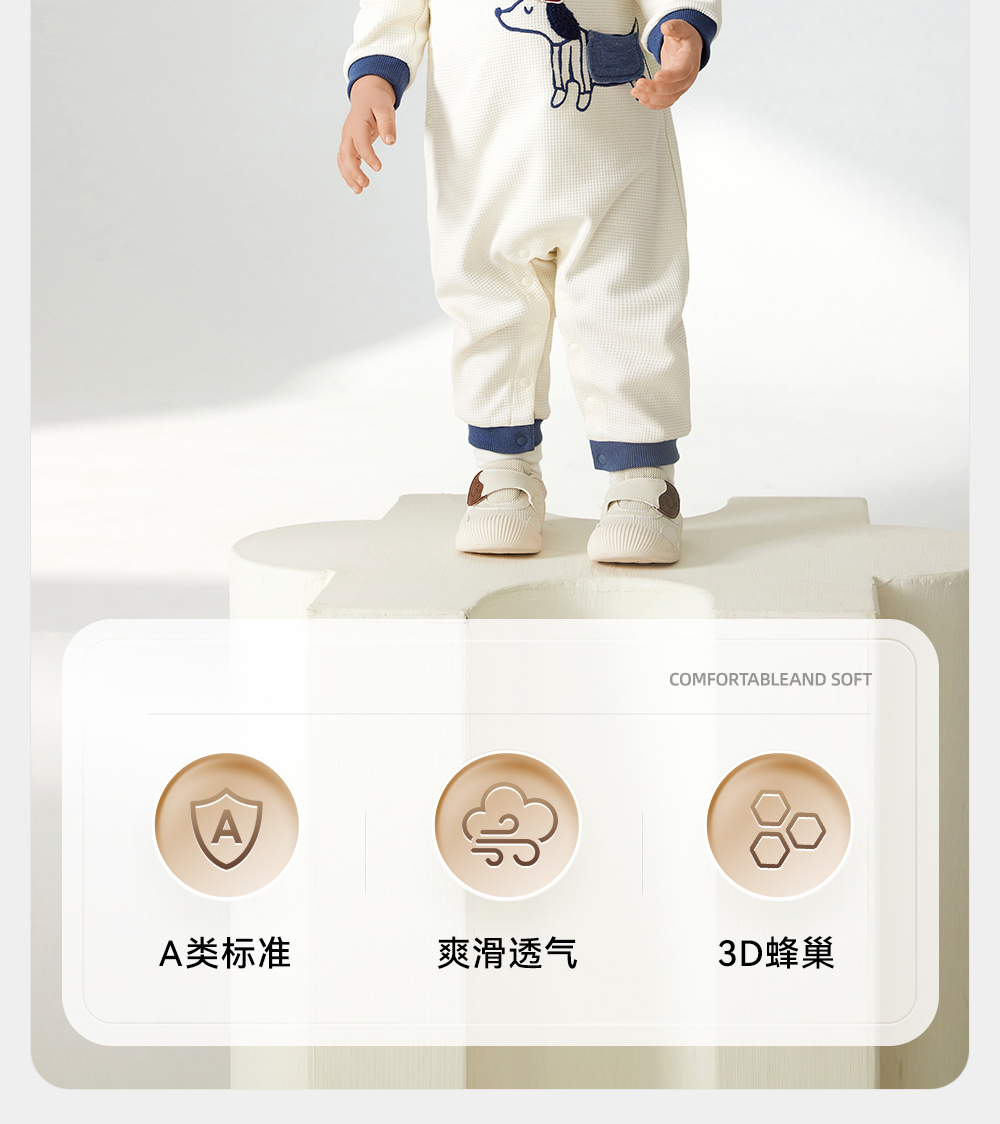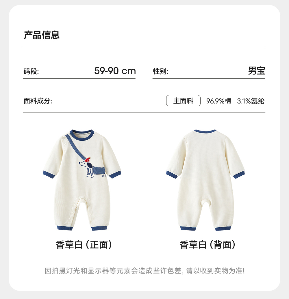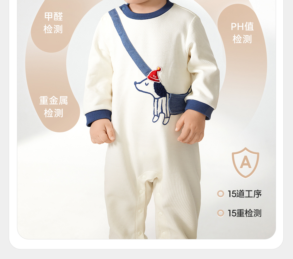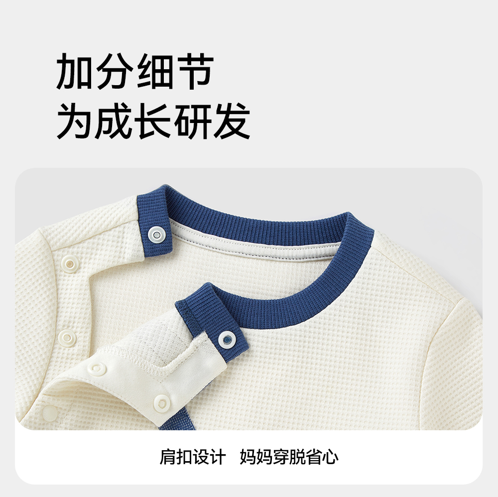 英氏婴儿衣服长袖春夏华夫格宝宝连体衣2025新款爬服YRHAJ1R001A