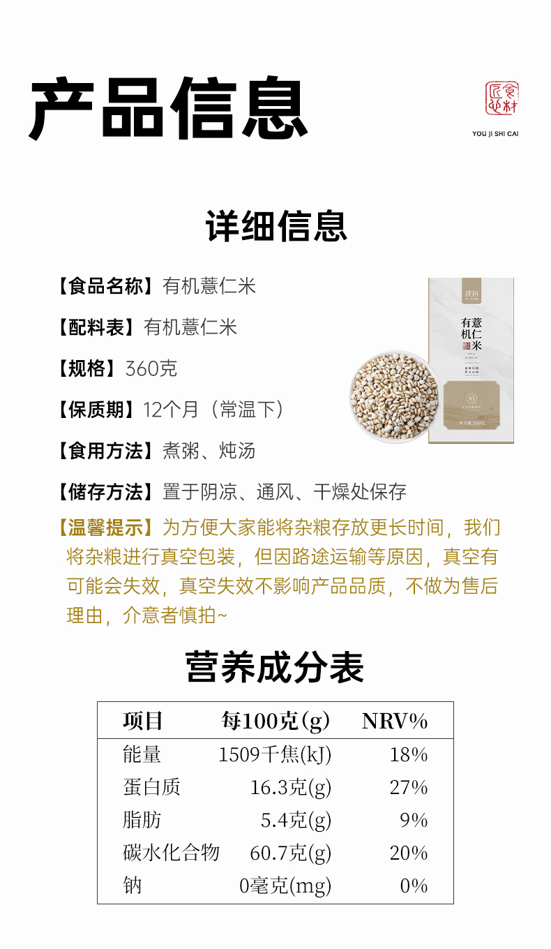 有机薏米薏仁米新货薏苡仁米小薏米五谷杂粮粗粮官方旗舰店360g