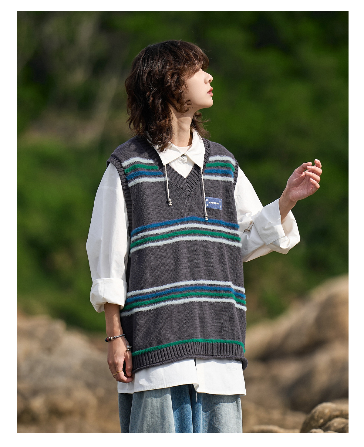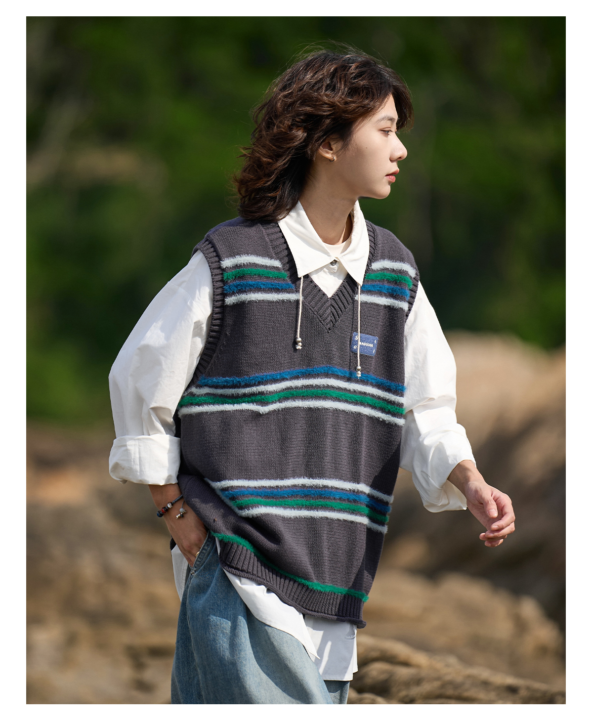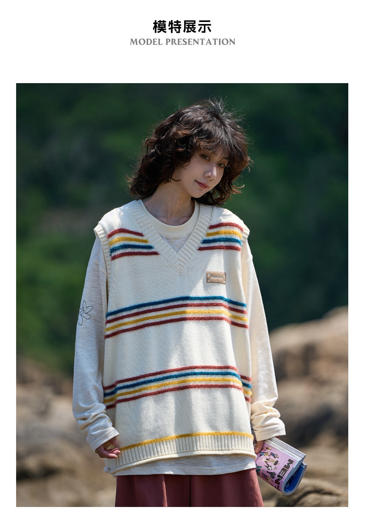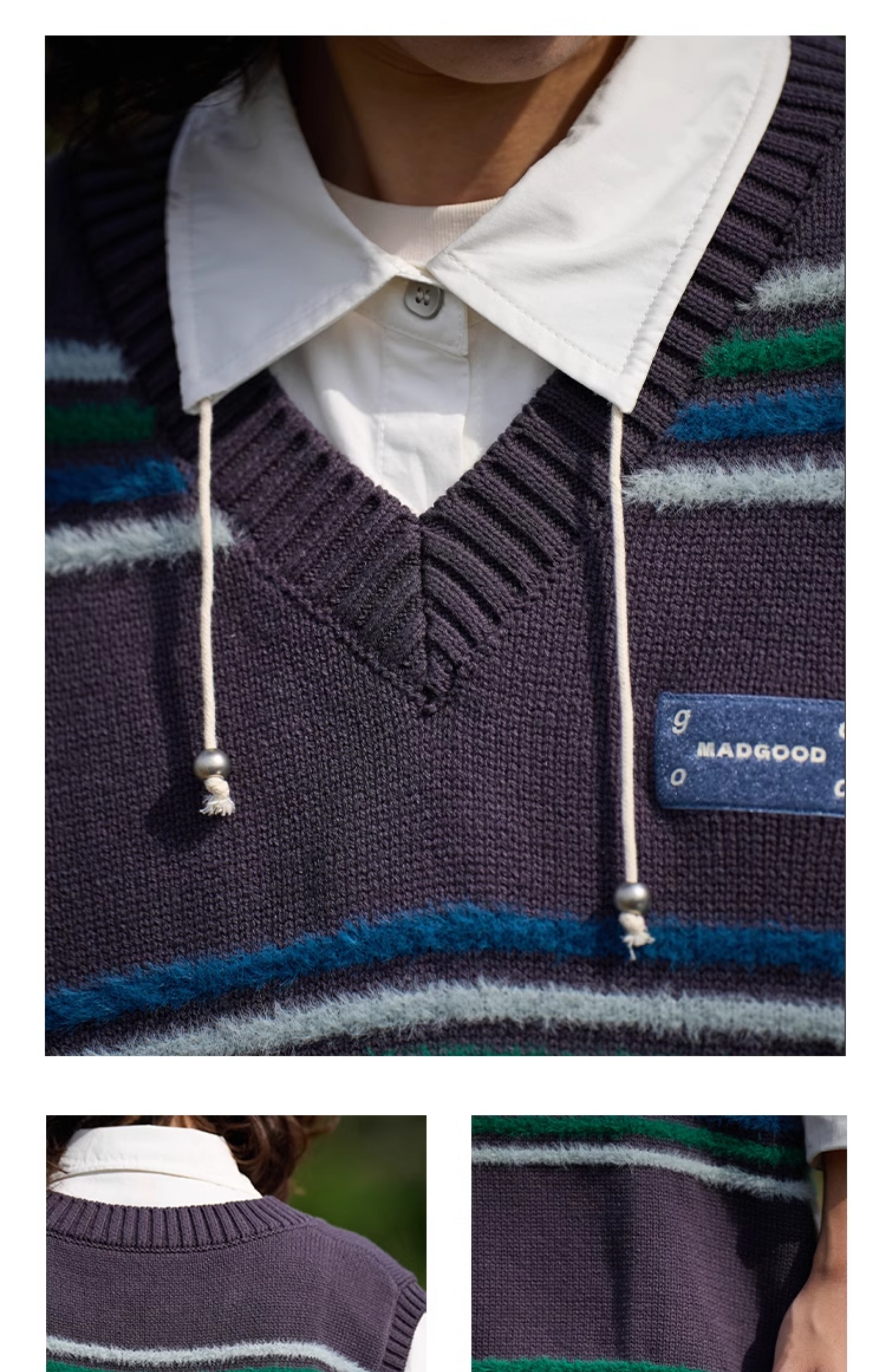 马得工地/MDGDMY243114/仿貂毛提花条纹毛衣马甲