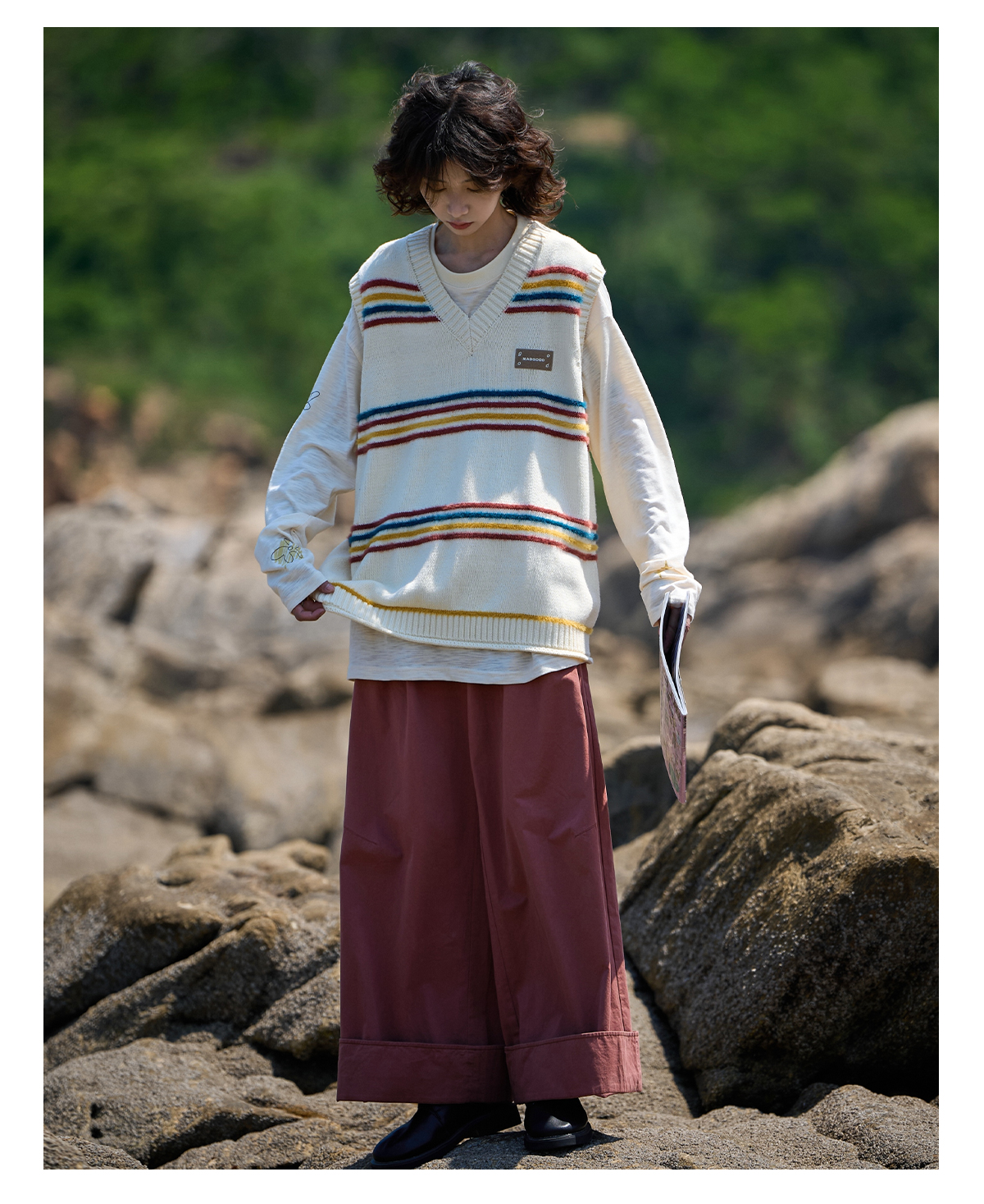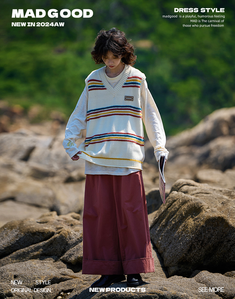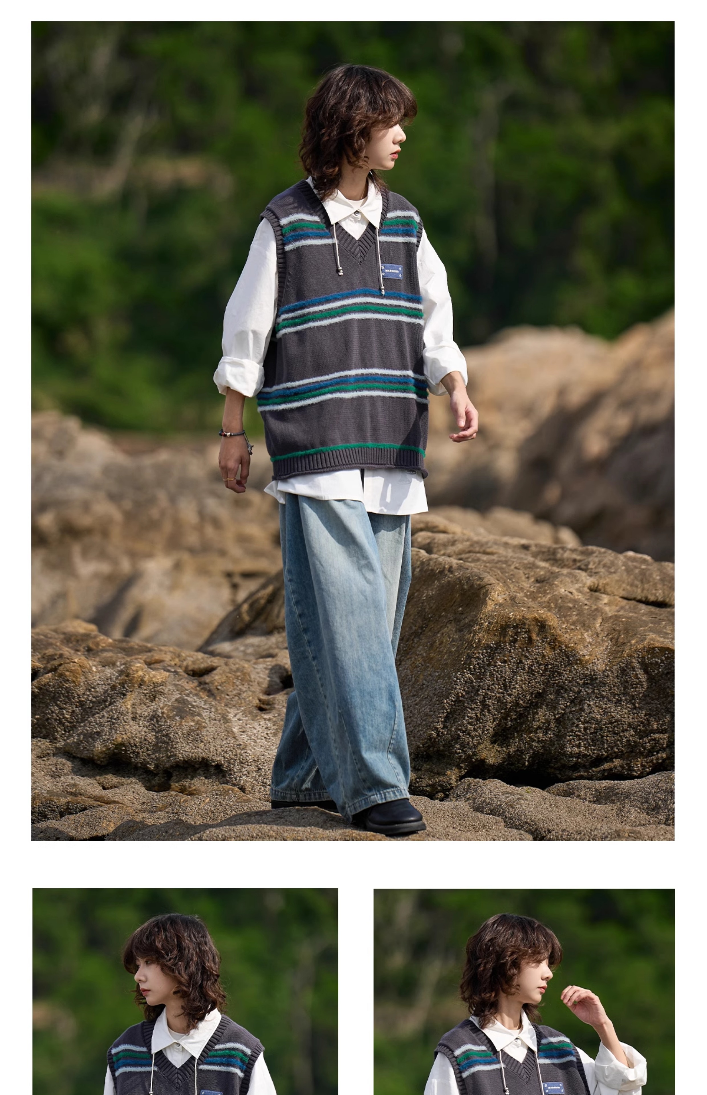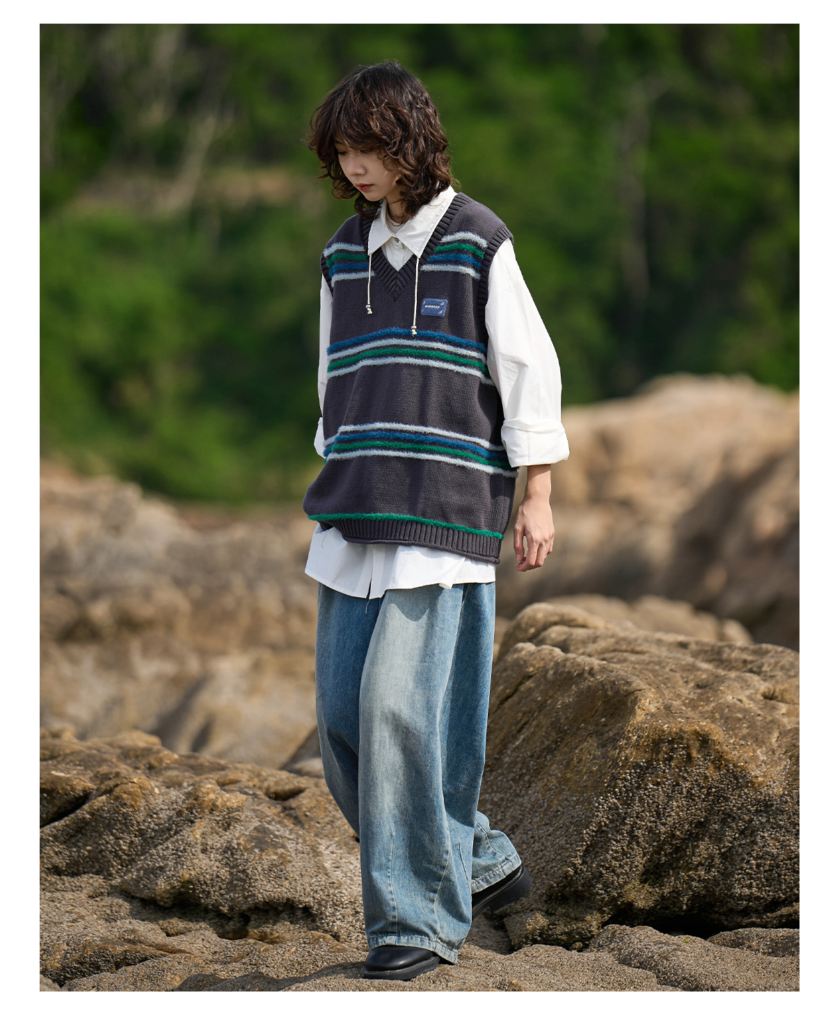 马得工地/MDGDMY243114/仿貂毛提花条纹毛衣马甲