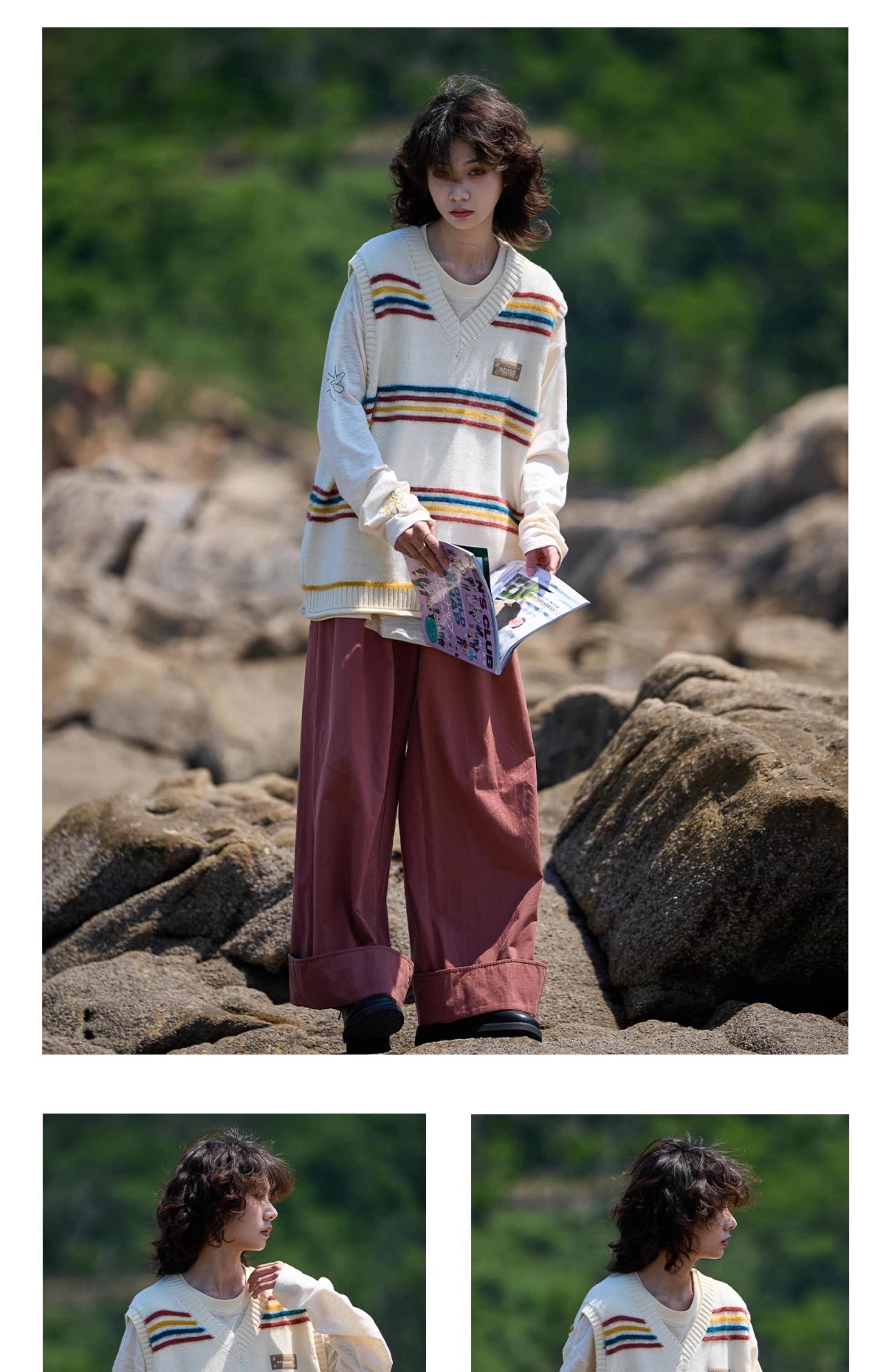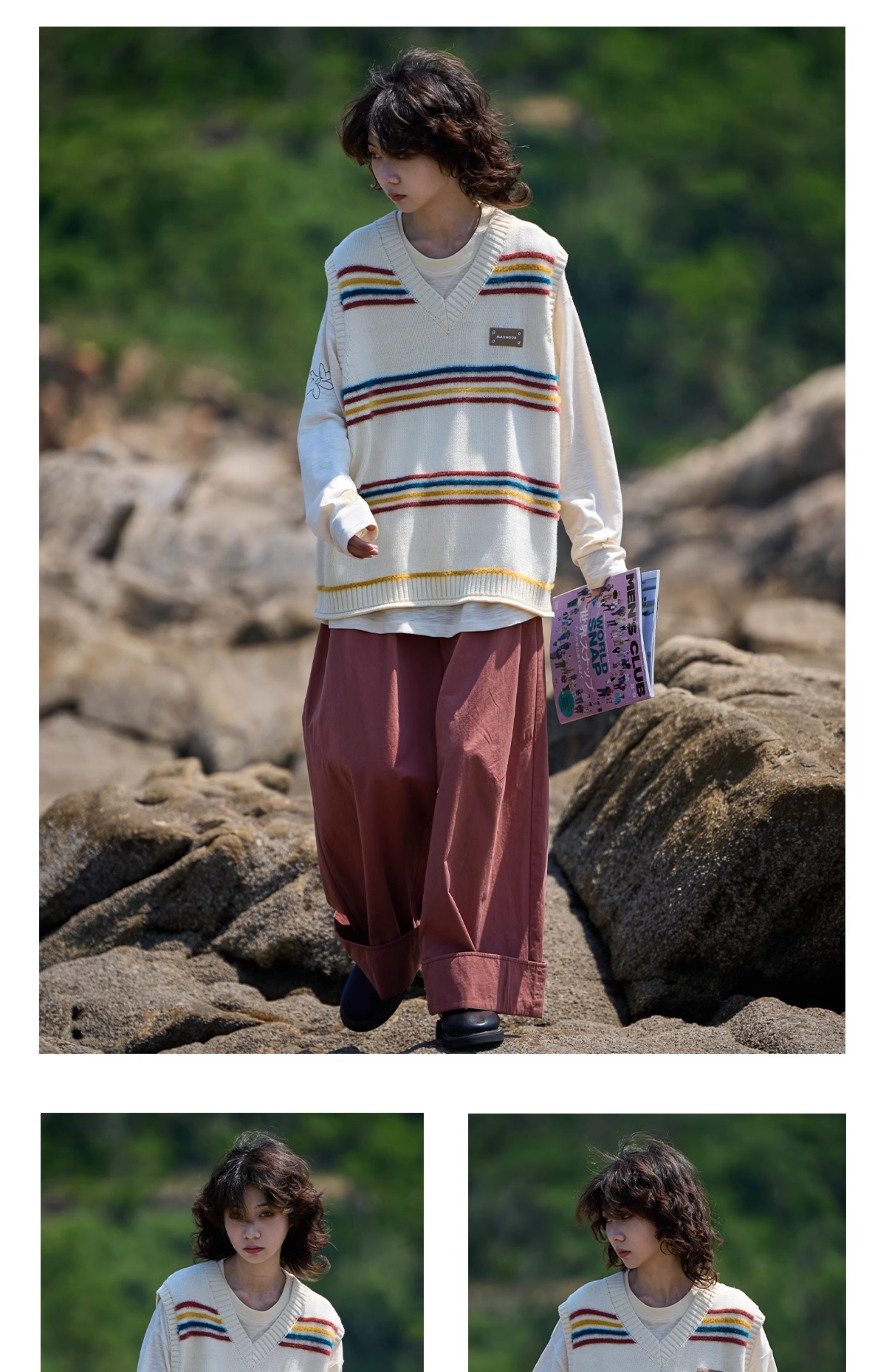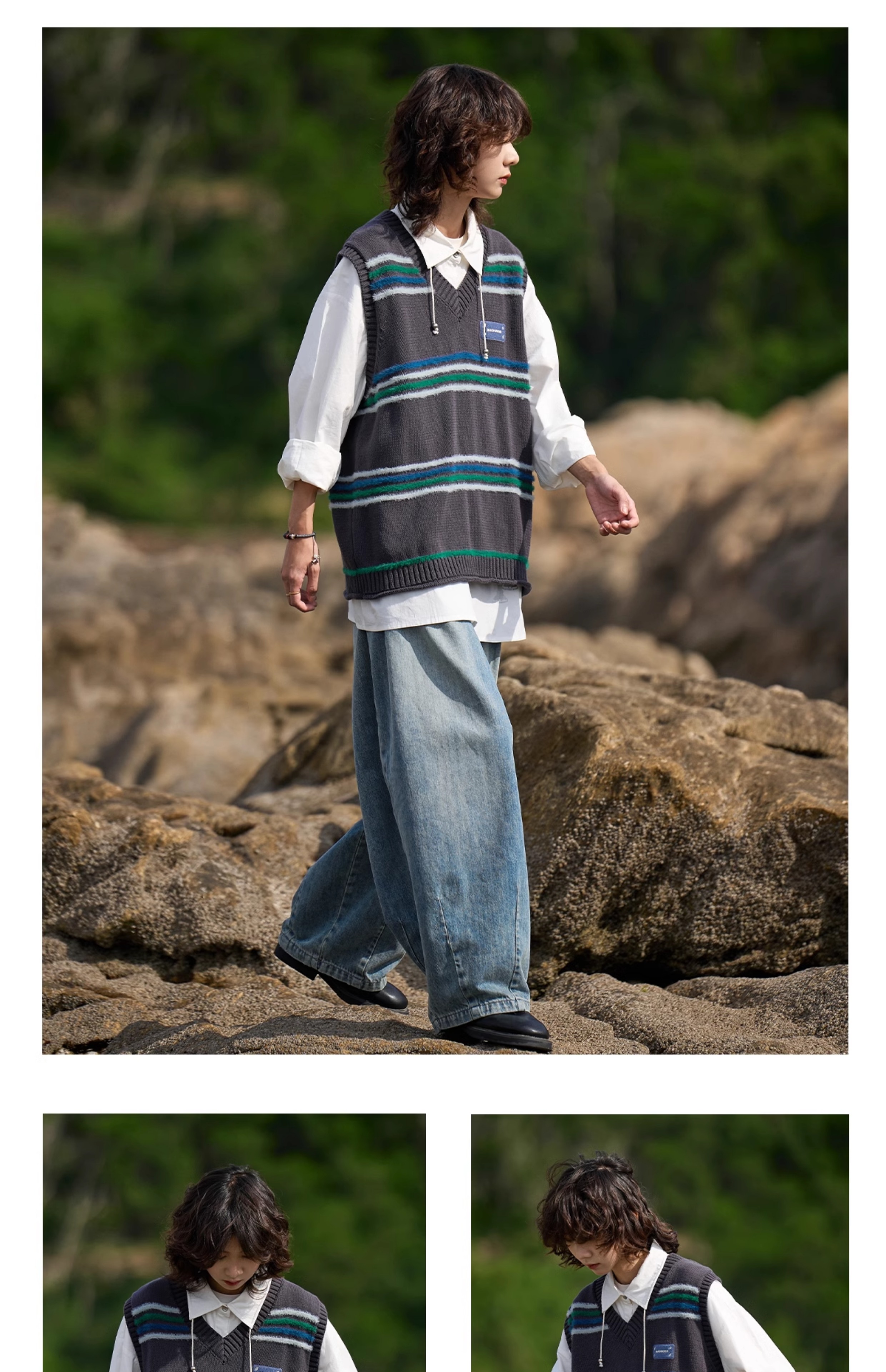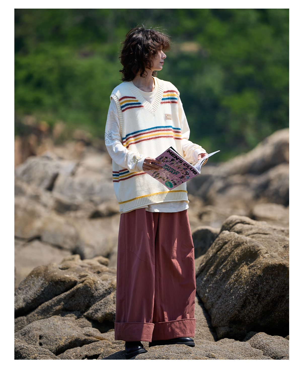 马得工地/MDGDMY243114/仿貂毛提花条纹毛衣马甲