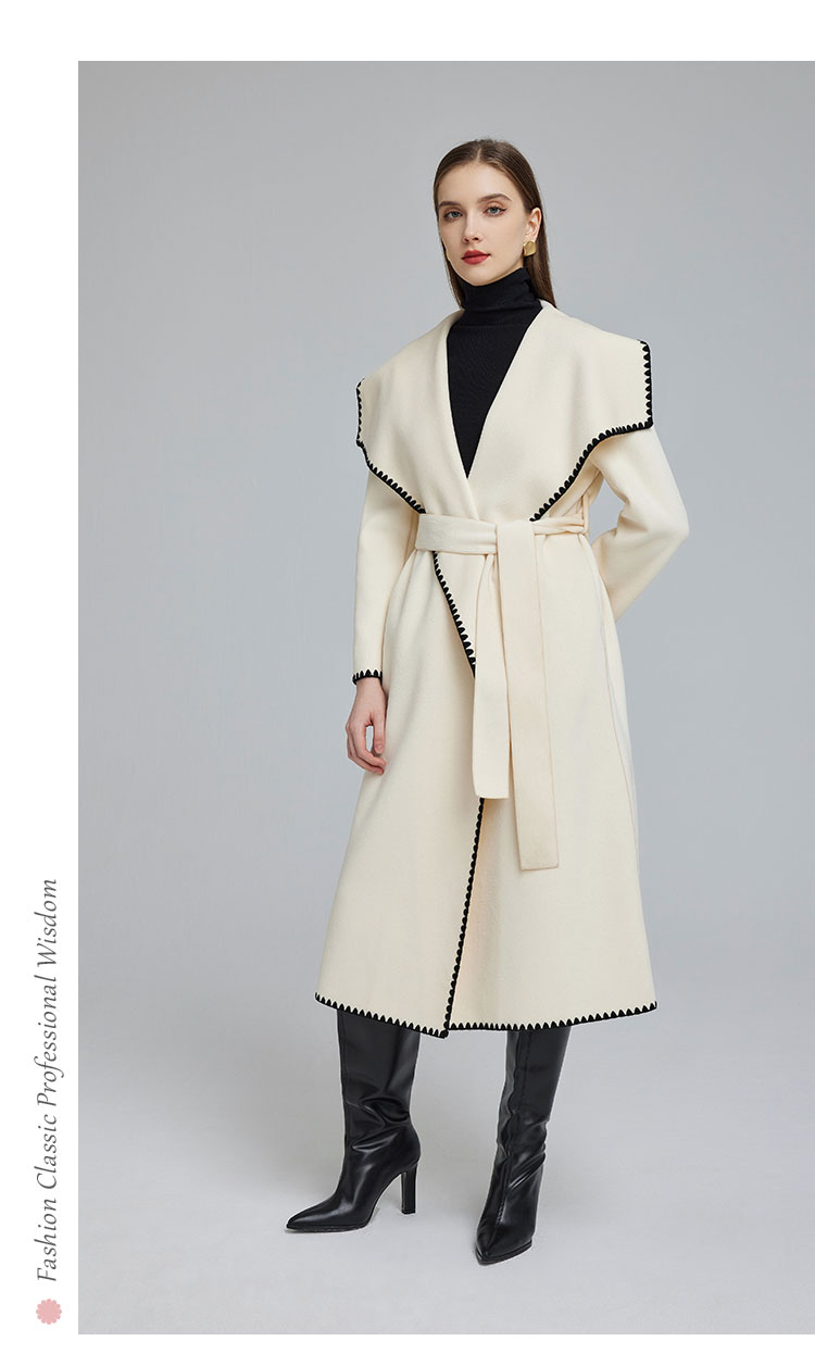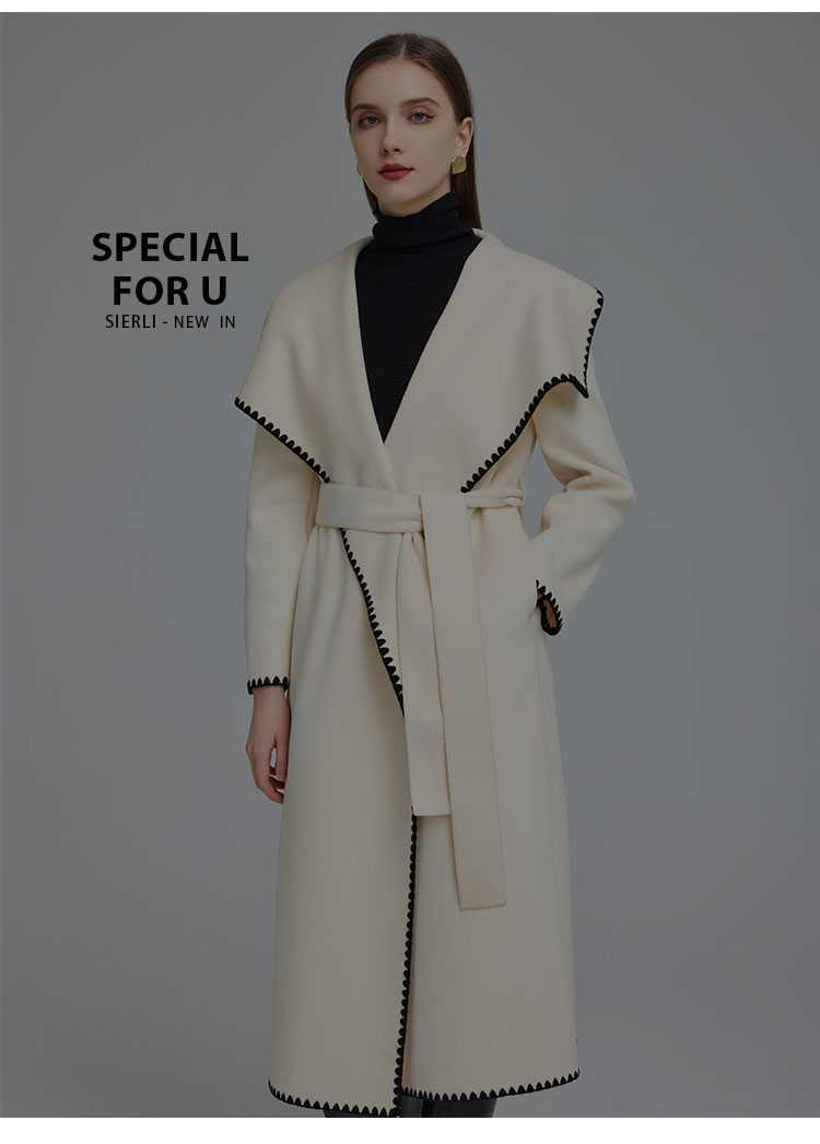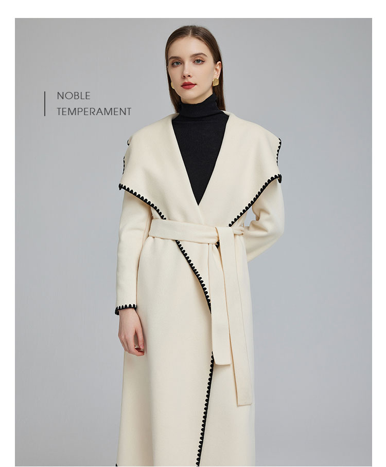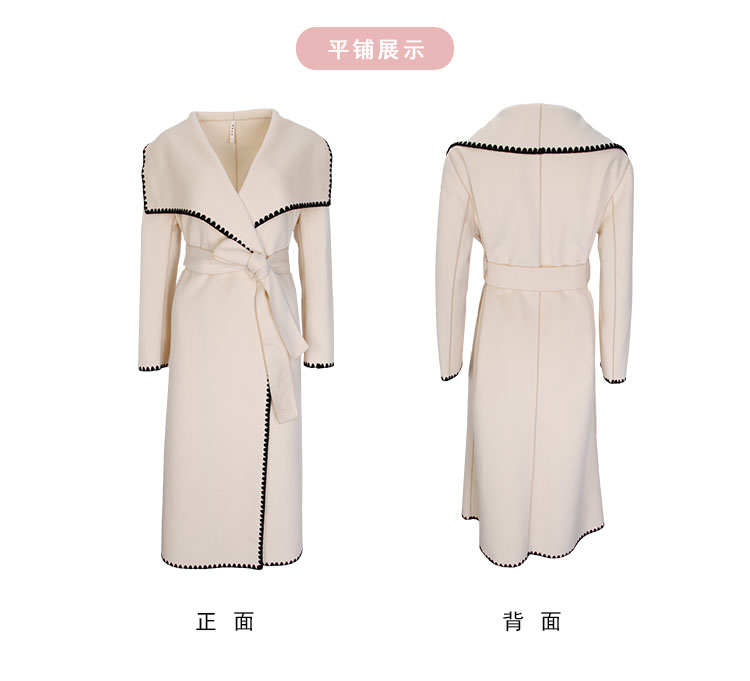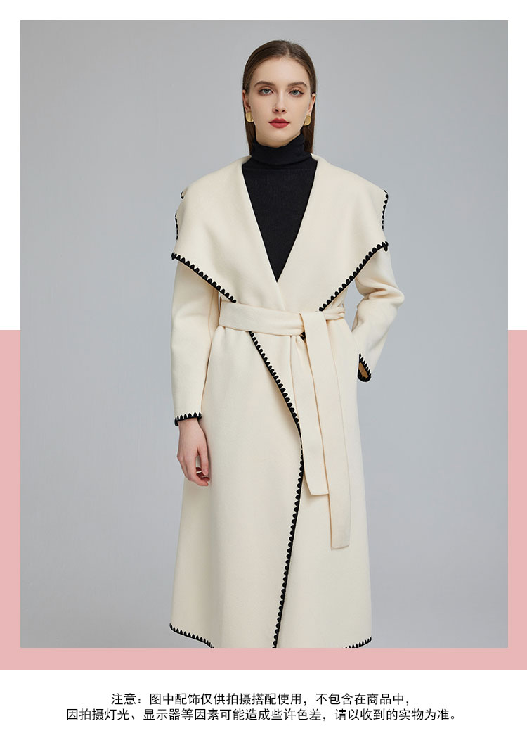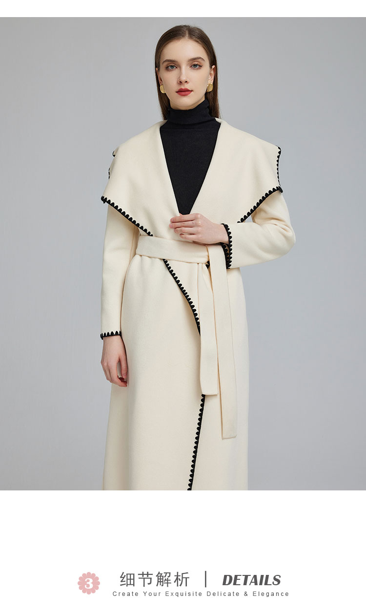 NH938斯尔丽2023冬季新款大翻领手工立体绣边撞色法式浪漫双面呢大衣