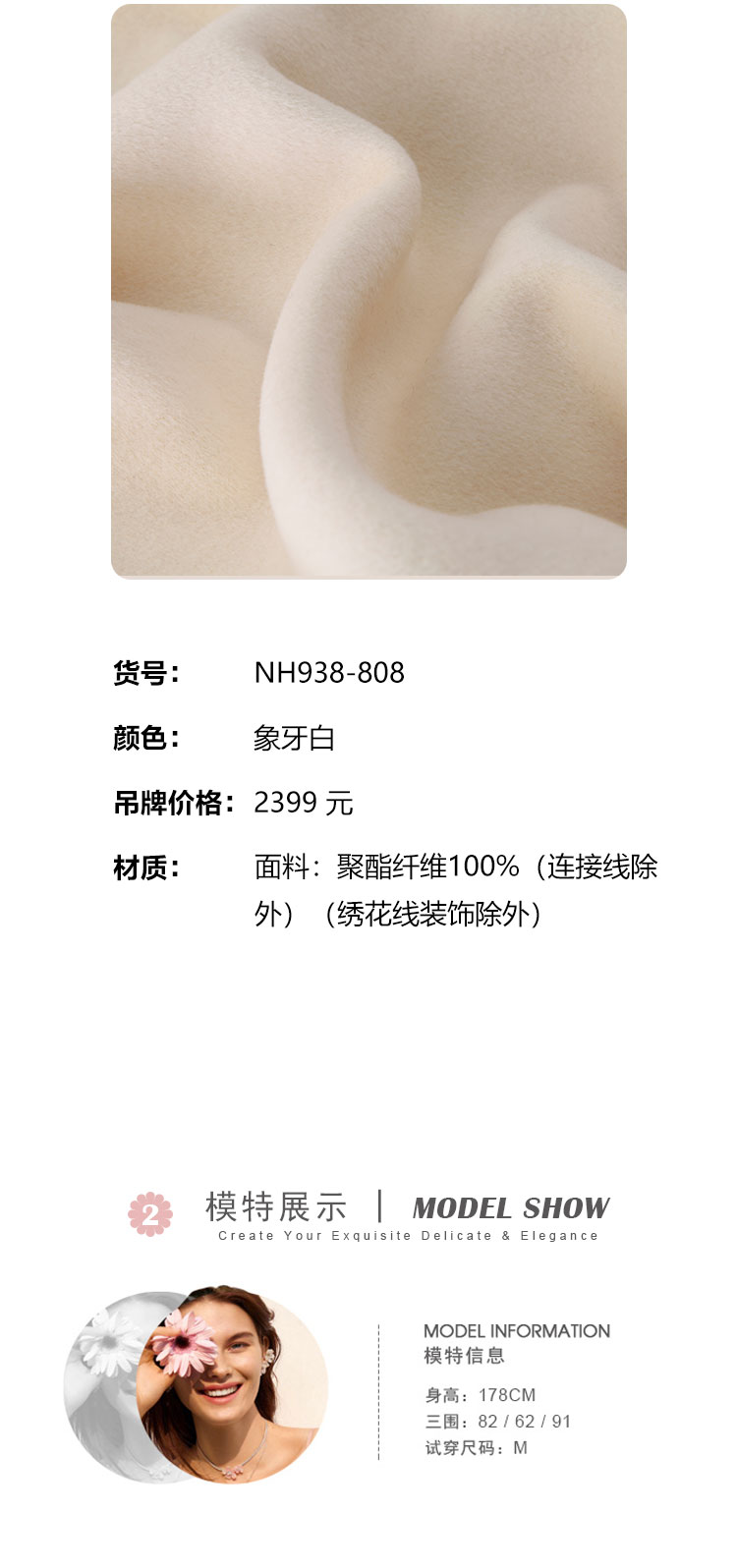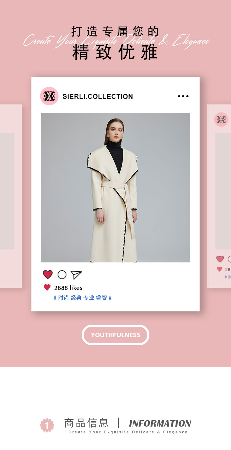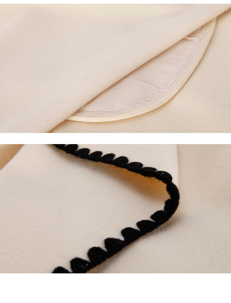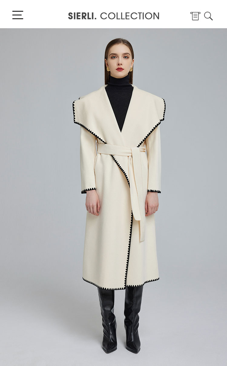 NH938斯尔丽2023冬季新款大翻领手工立体绣边撞色法式浪漫双面呢大衣