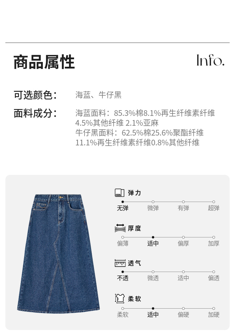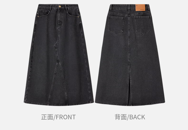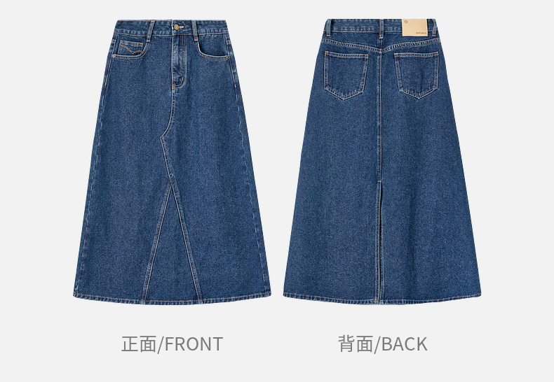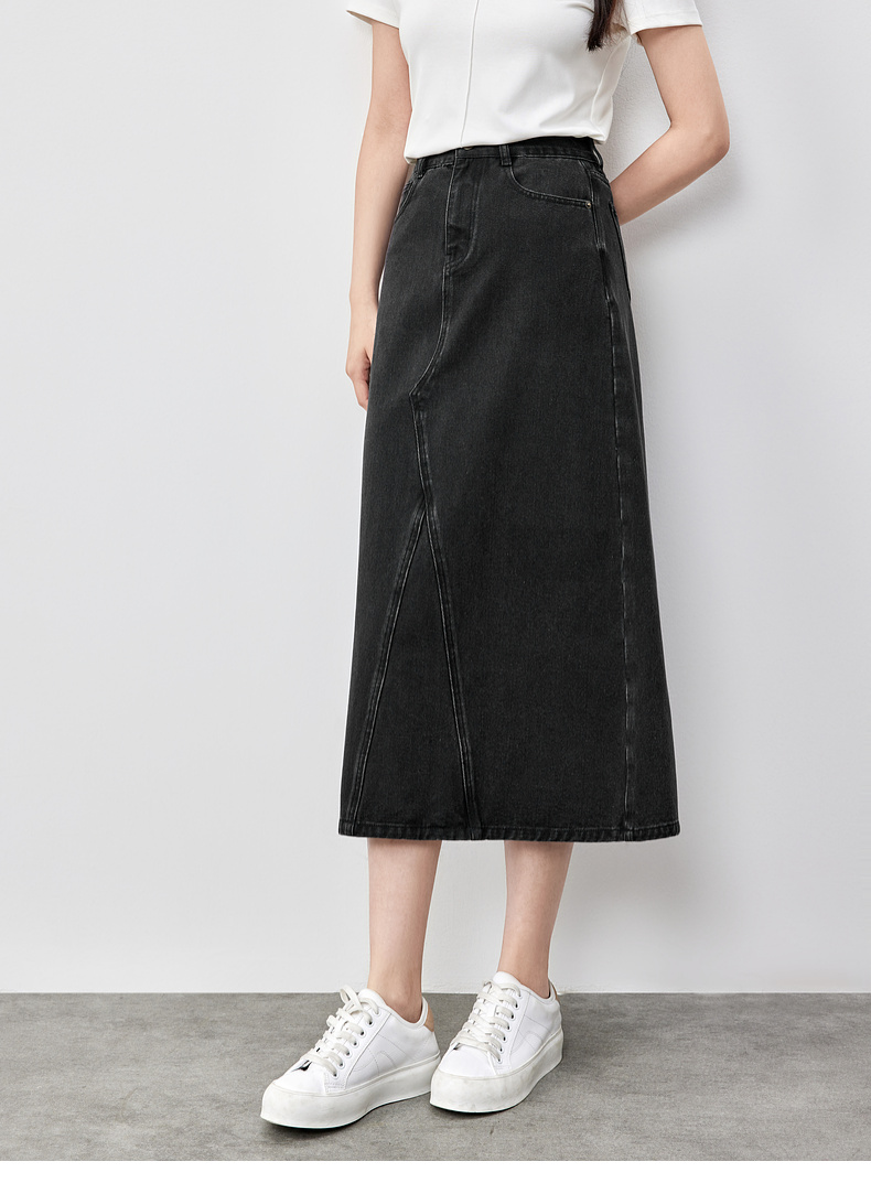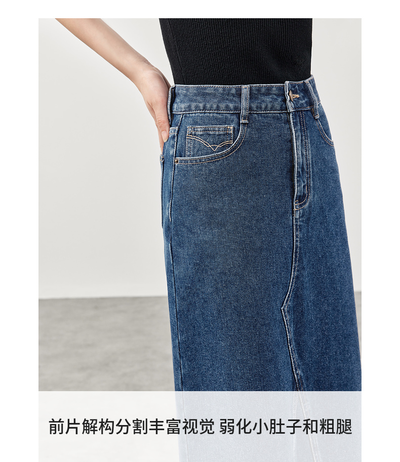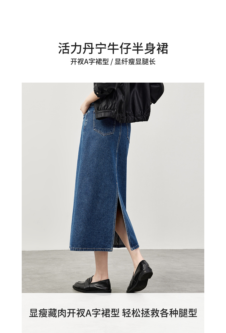 【内购】活力丹宁水洗再生纤维亚麻解构分割下摆开衩显瘦A字牛仔半裙-W51Q58715