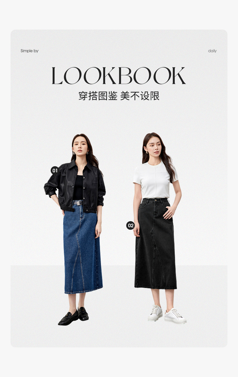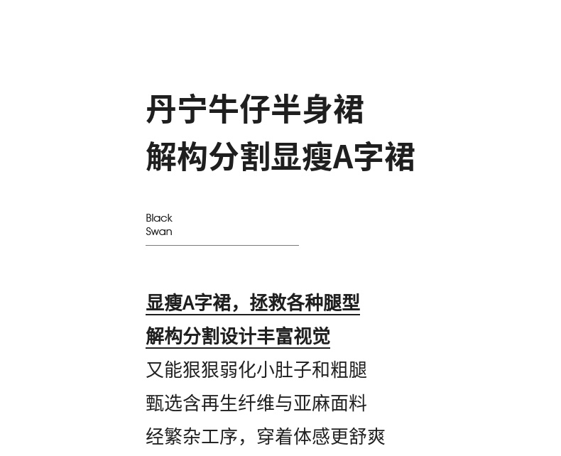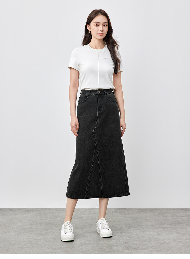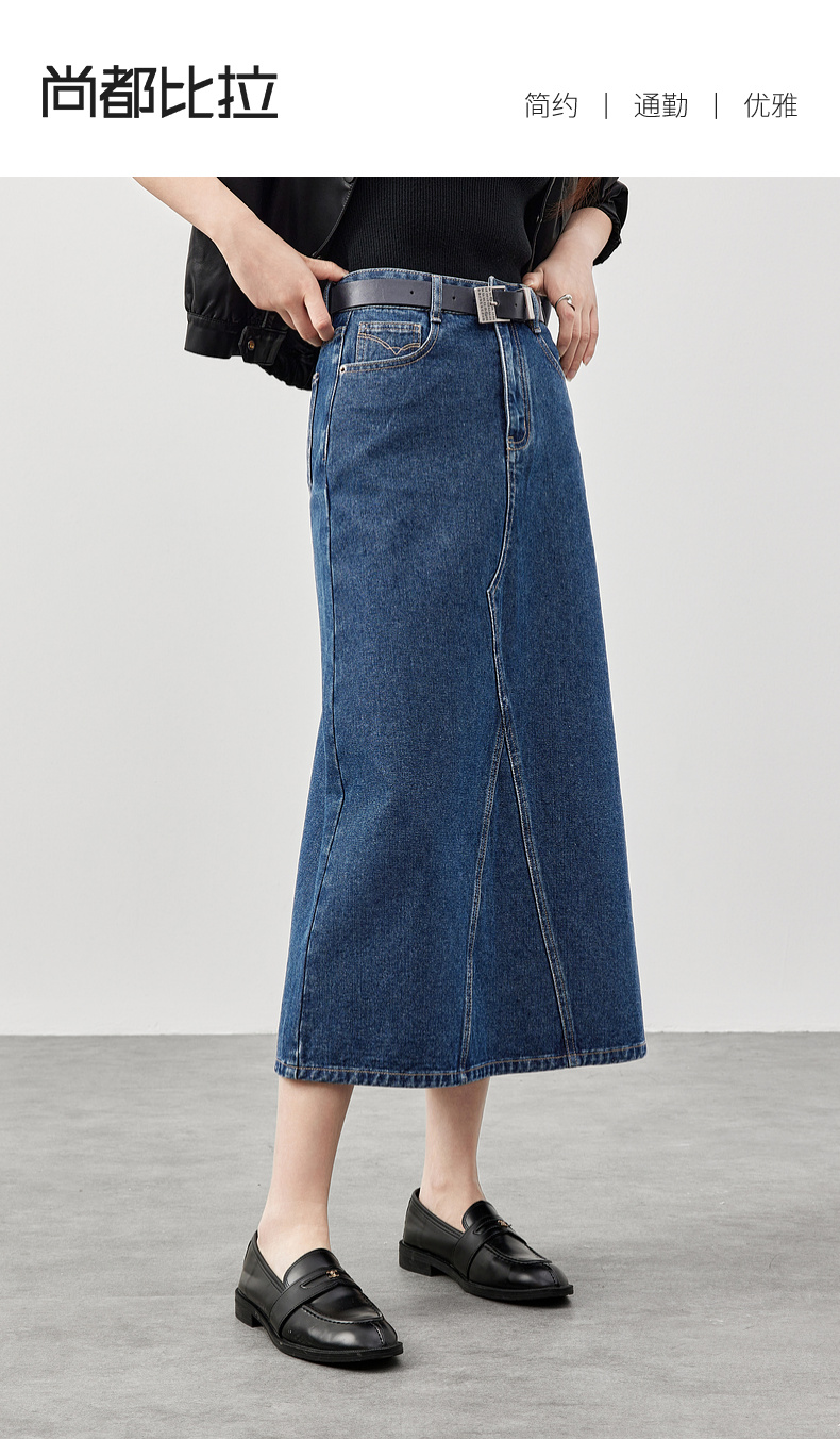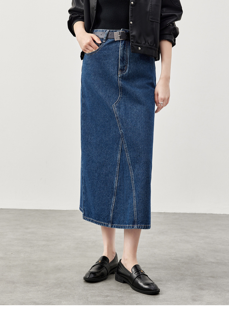 【内购】活力丹宁水洗再生纤维亚麻解构分割下摆开衩显瘦A字牛仔半裙-W51Q58715