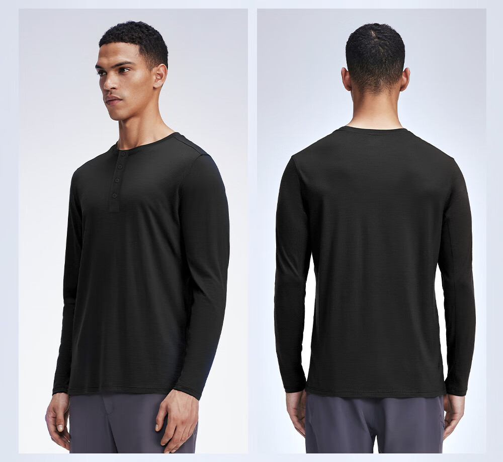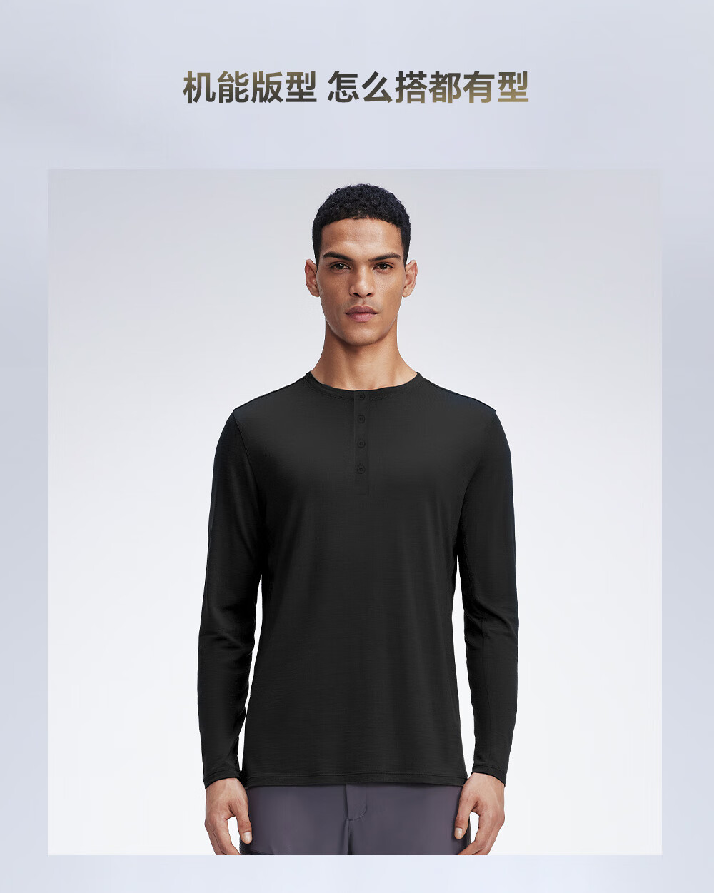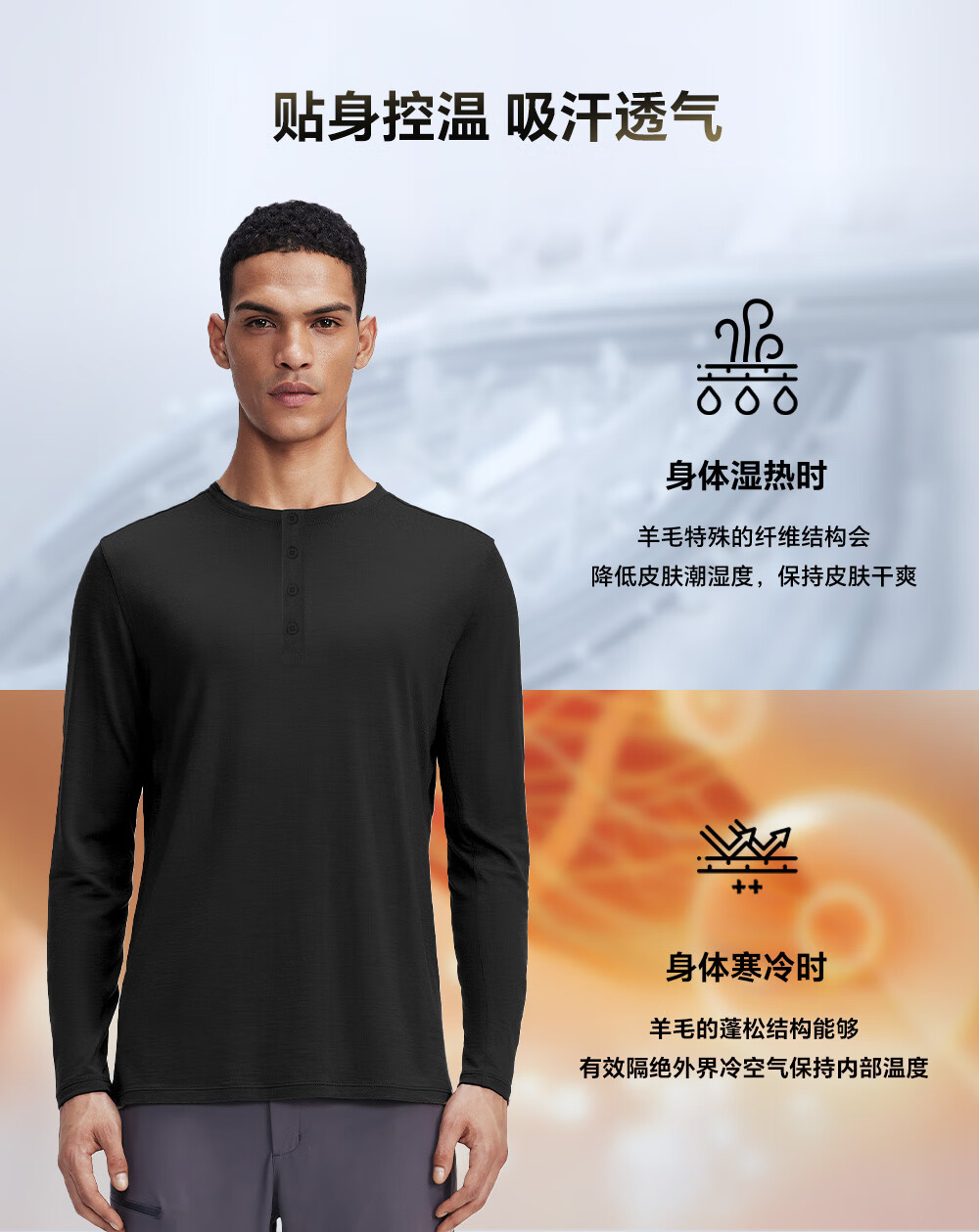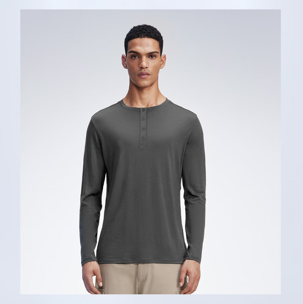 天石鹅铠甲亨利领美利奴羊毛T恤男士长袖弹力户外运动登山徒步G205