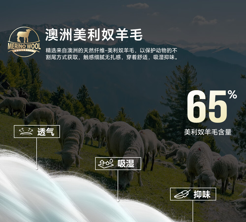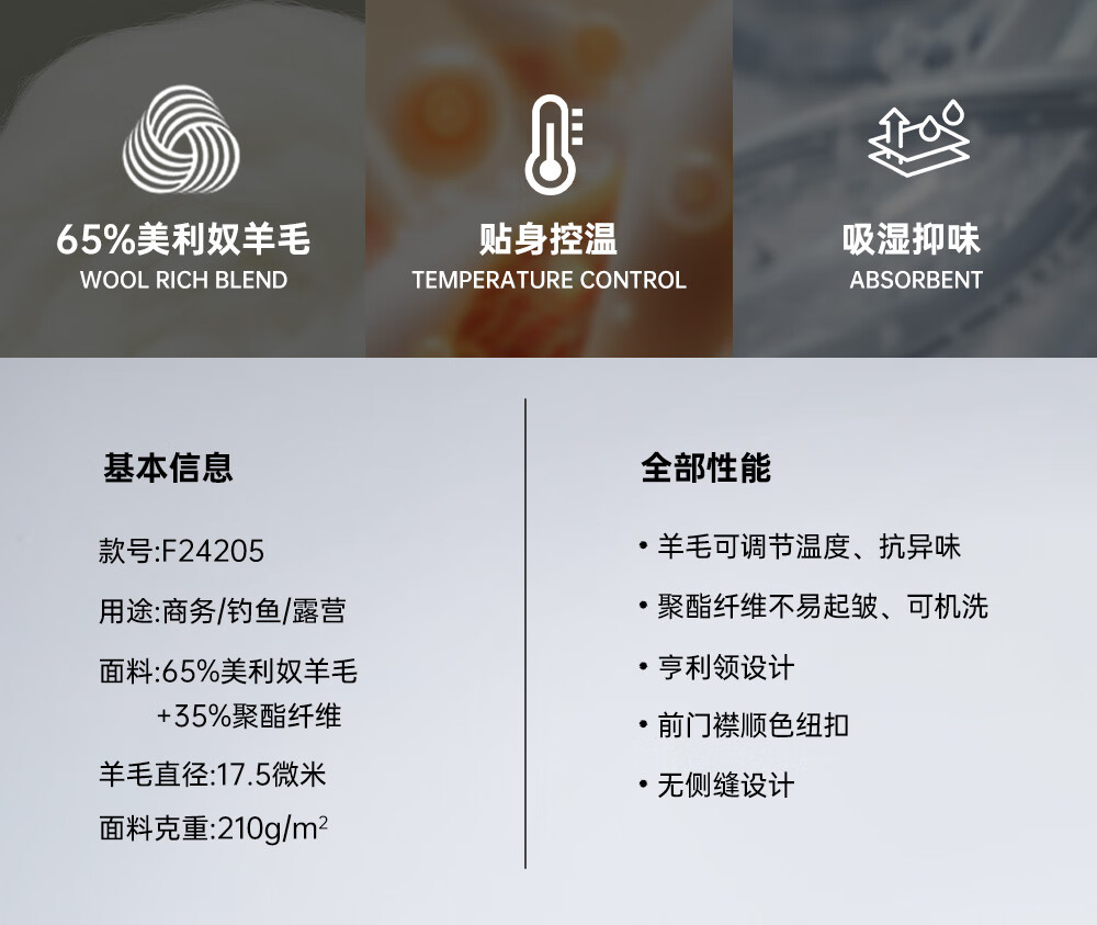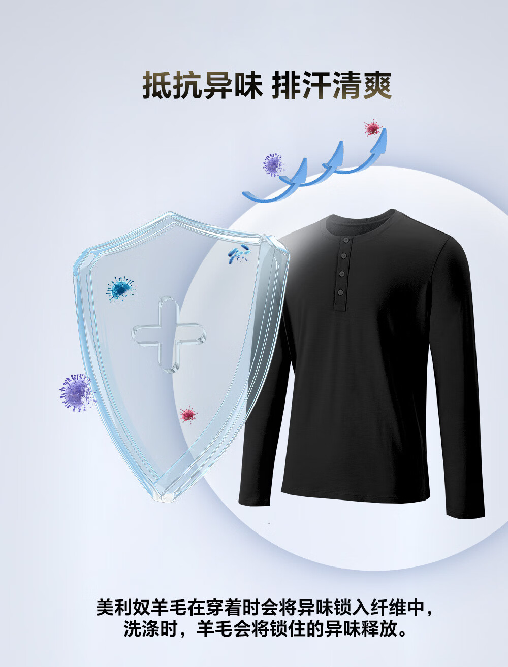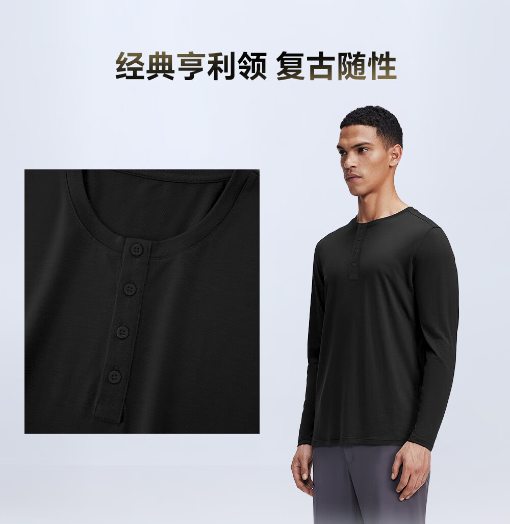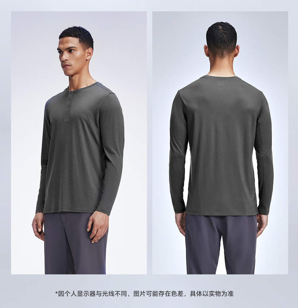 天石鹅铠甲亨利领美利奴羊毛T恤男士长袖弹力户外运动登山徒步G205