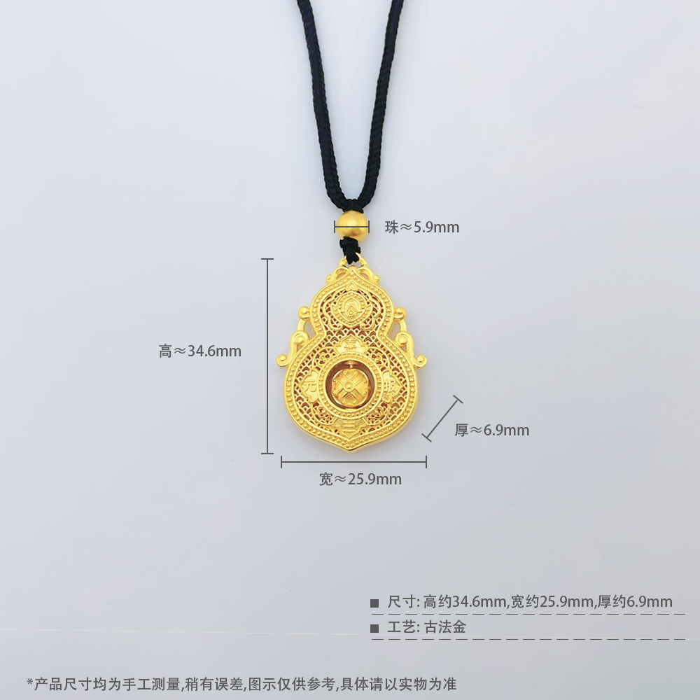 【限时克减150元】足金999.9 #葫芦 古法挂绳镂空花丝可转动圆珠喜报三元人生四美葫芦吊坠(含珠子)(AIGFDZ00567-3),(预售产品下单后不退款不退货不换货不补差价)