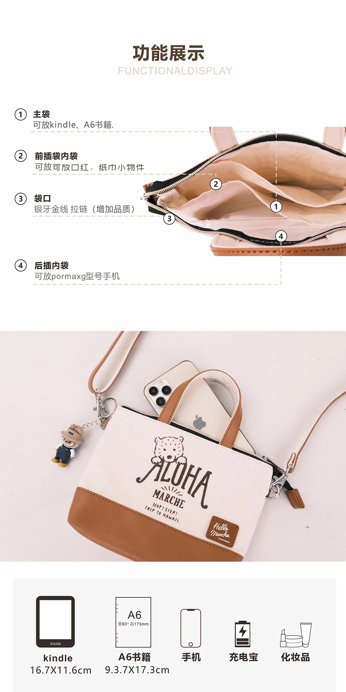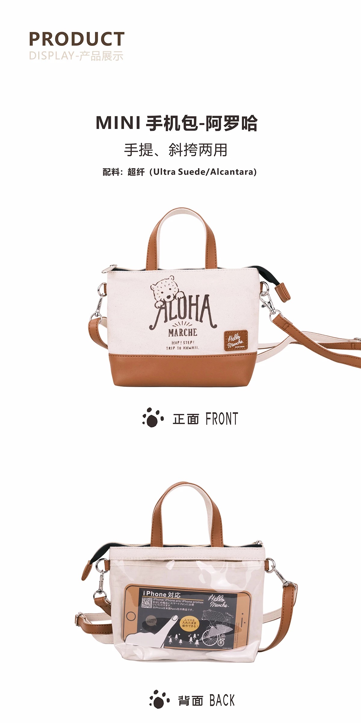 阿罗哈萌熊mini手机包杏黄