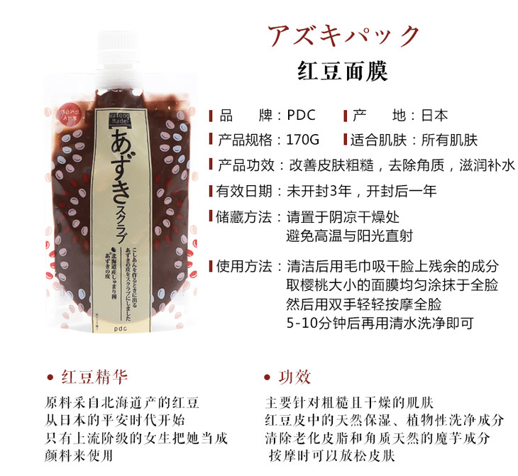 【香港直邮】pdc POLA旗下碧迪皙透保湿去黄暗沉面膜 红豆面膜170G