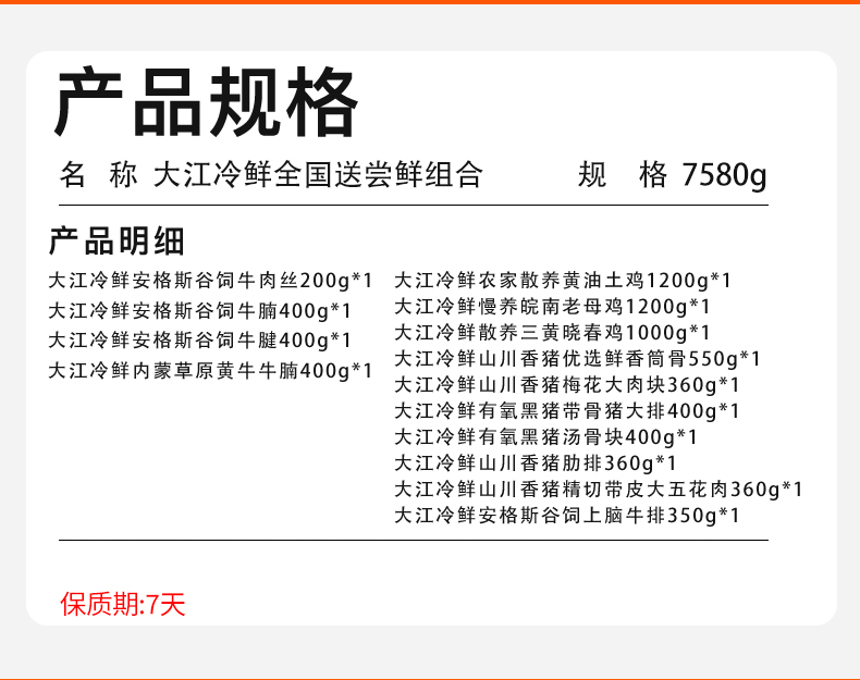 【发出后不支持拦截退货】大江 冷鲜全国送尝鲜组合 7580g