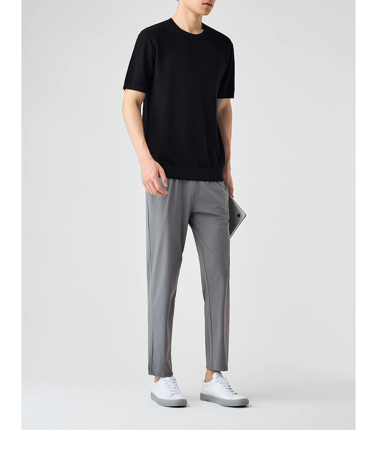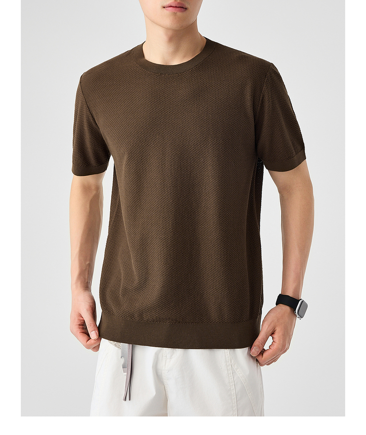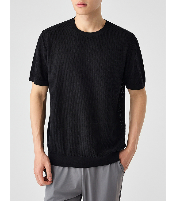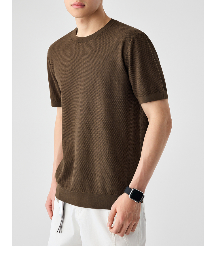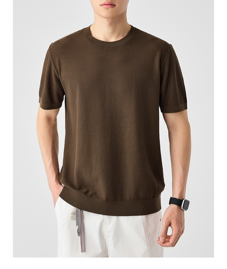 墨麦客男装基础简约男士针织短袖2025夏季新款直筒休闲打底t恤男