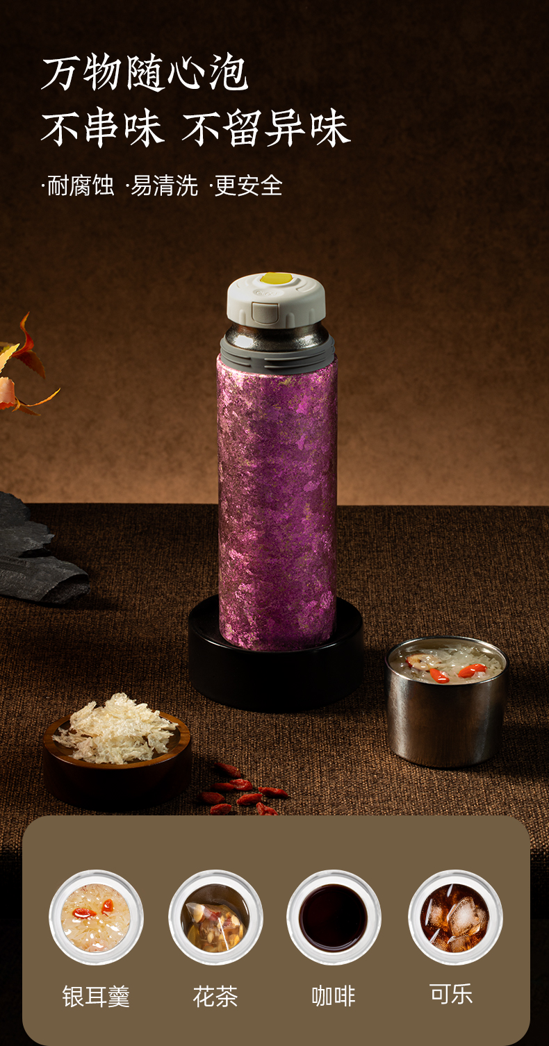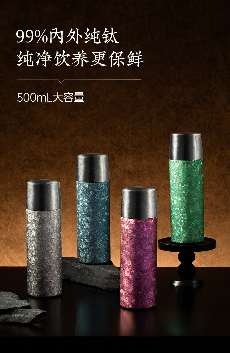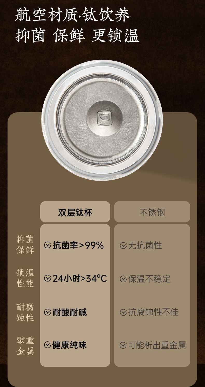 金燕耳纯钛内外胆双层钛润保温杯茶水分离商务便携水杯500ml