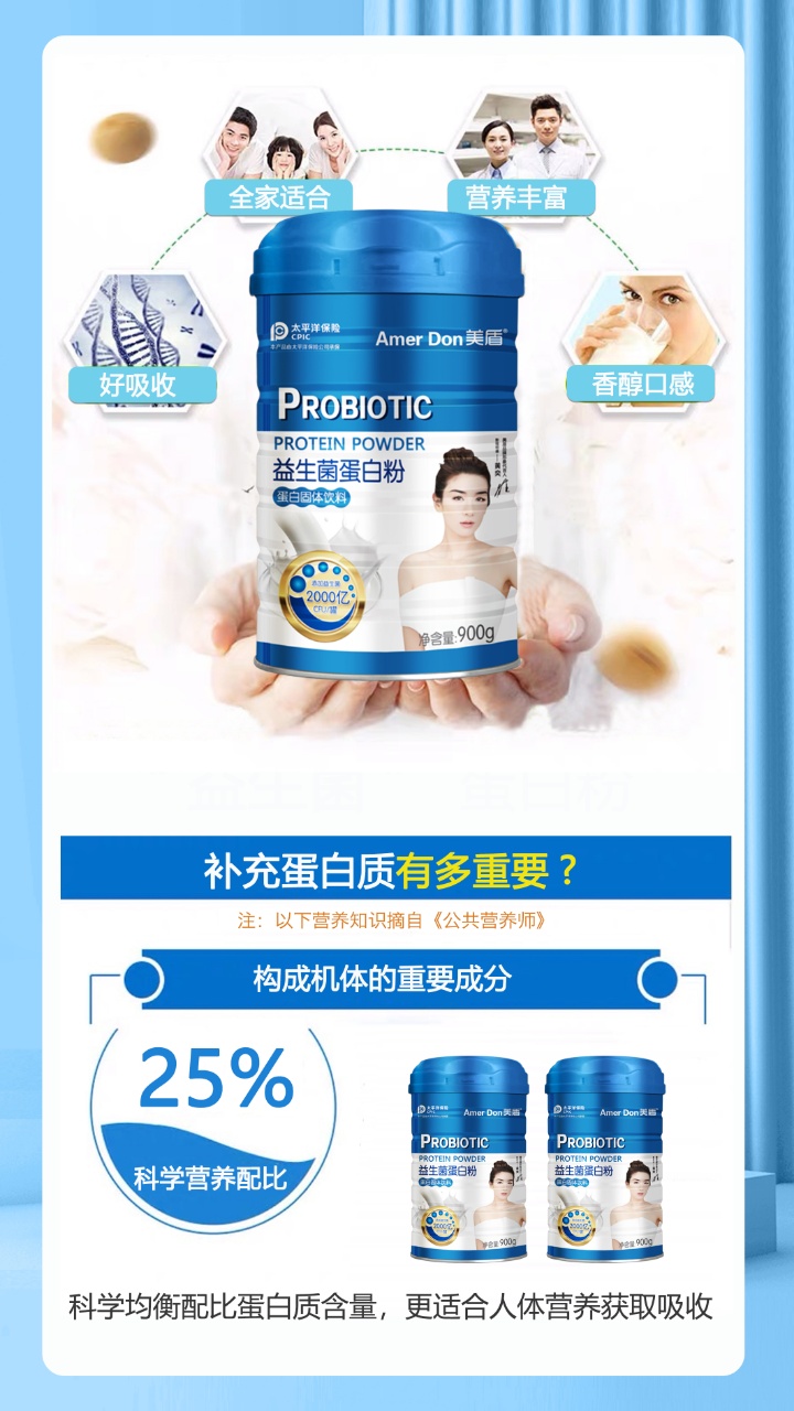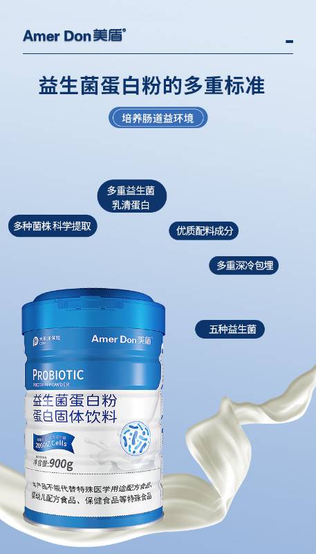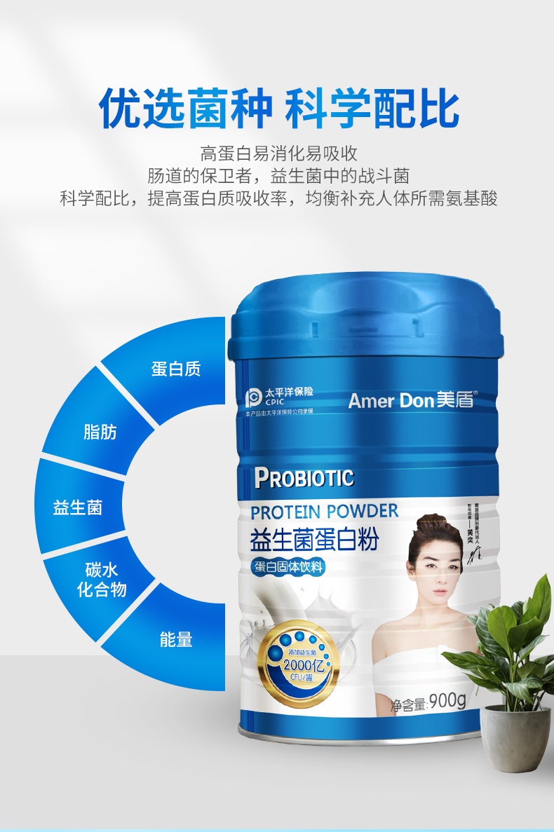 产品特点:美盾益生菌蛋白质粉每桶美盾蛋白质粉特别添加2000CFU活性益生菌,来改善肠道菌群环境,甄选优质乳清蛋白,动植物双蛋白配方,满足人体全面补充蛋白质的健康需求!