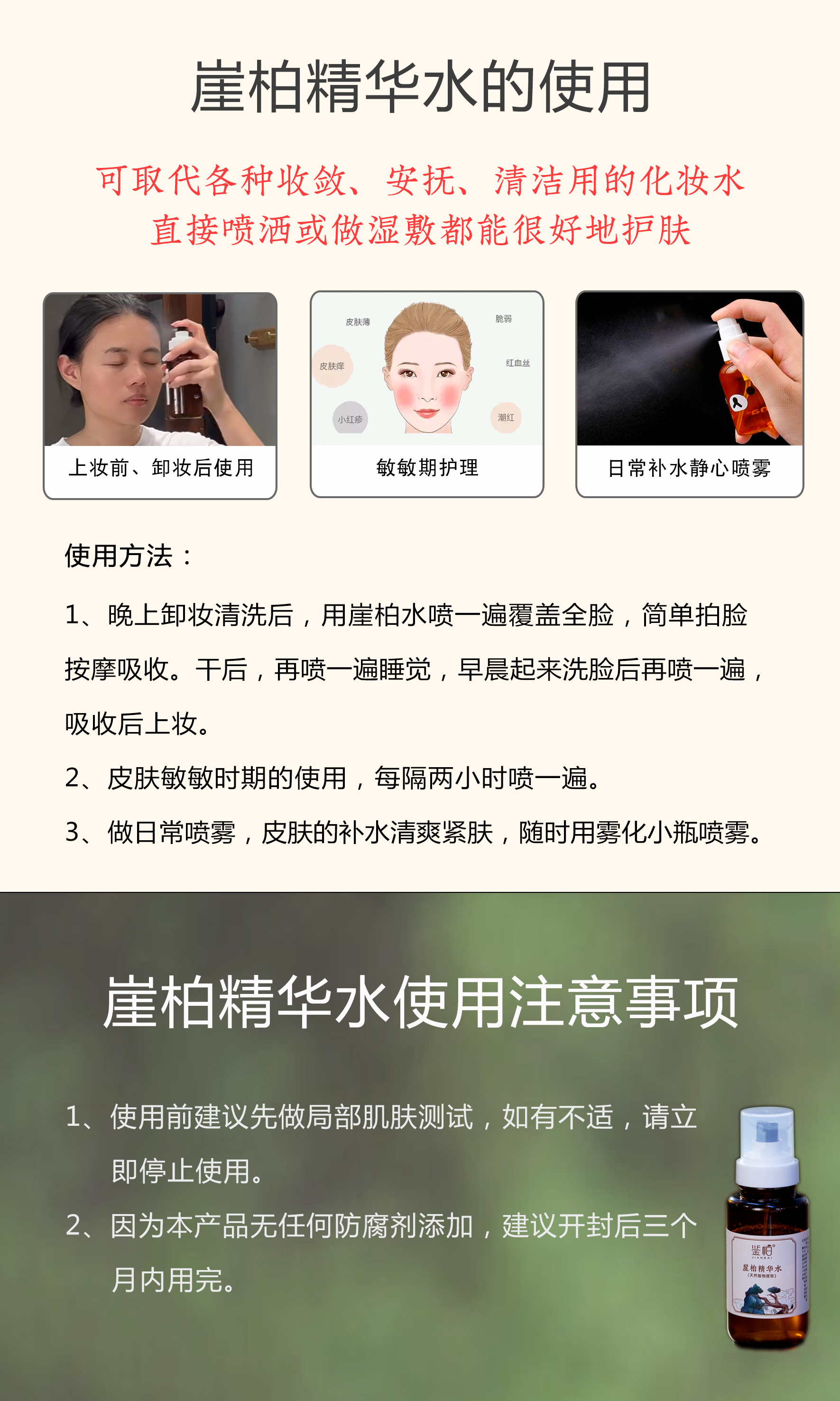 崖柏精华水 华南理工教授团队联合研发 肌肤痘痘肌收敛敏感郁结毛孔 皮肤干燥敏感 崖柏陈化老料植物蒸馏水 200ml/瓶
