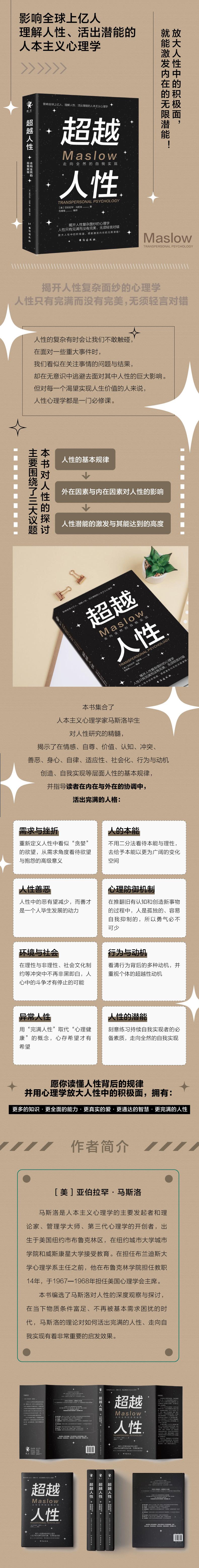 本书精心编选了人本主义心理学家马斯洛关于人性的深度研究与探讨的文章,结合人的欲望、需求与动机,科学地揭示了人性在事件、环境、个体发展、认知、自我实现等维度发挥的作用,并指出了我们该如何与内心的冲突、欲望、情绪和谐相处,又该如何破除那些无意识中阻碍我们发挥人性潜能的心理防御机制......