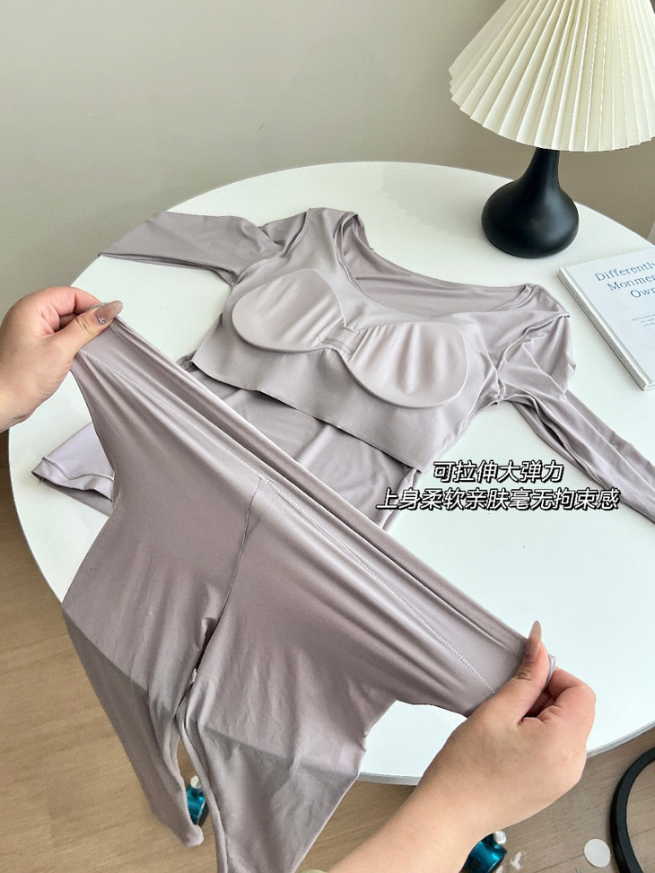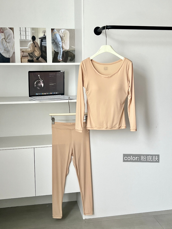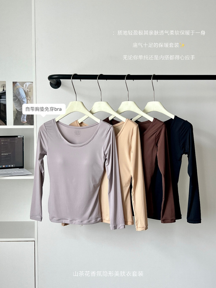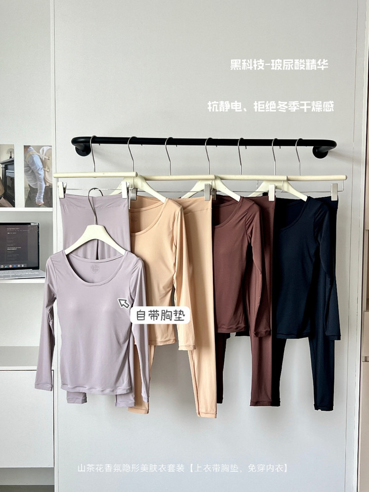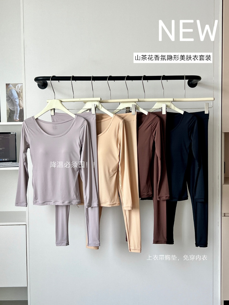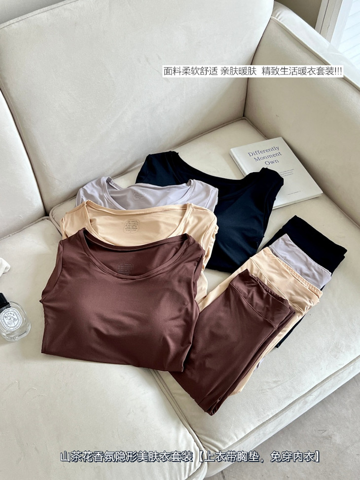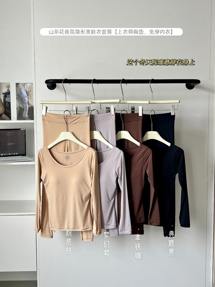 𝐍𝐞𝐰 山茶花香氛隐形美肤衣套装【上衣带胸垫,免穿内衣】 怕冷星人有救了 拒绝臃肿过冬 快来买这个又舒服又软糯的美肤衣