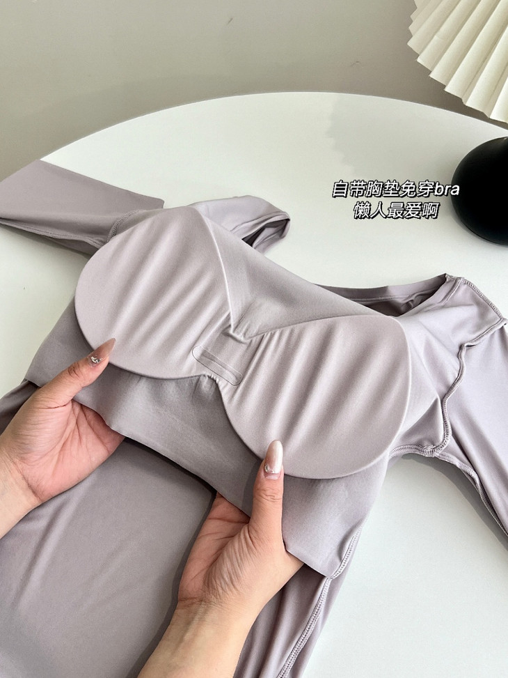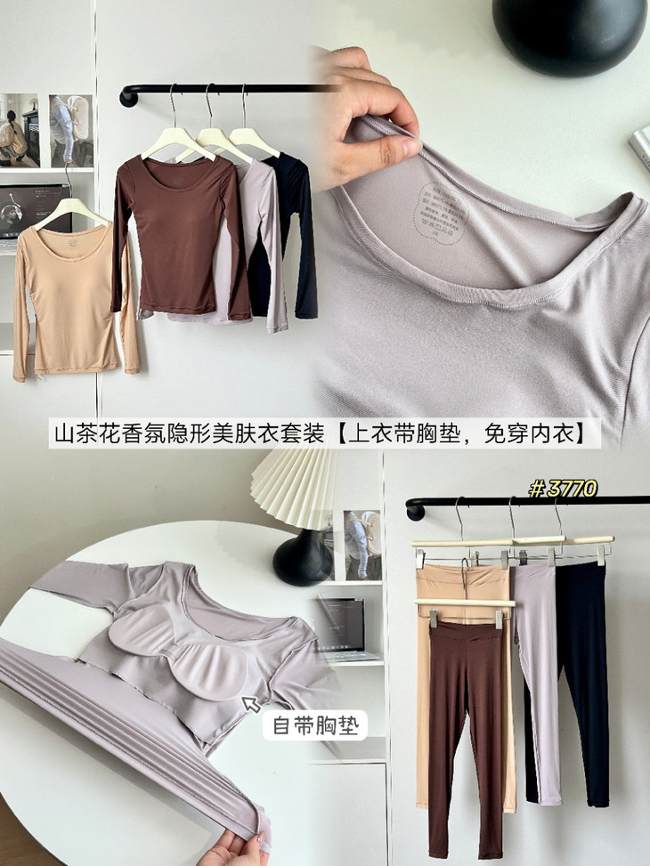 🌈【自带一体胸垫 免穿bra】😘诗慕小姐山茶花香氛隐形美肤衣套装 3770款 🌿自发热黑科技➕玻尿酸保湿➕山茶花油滋润