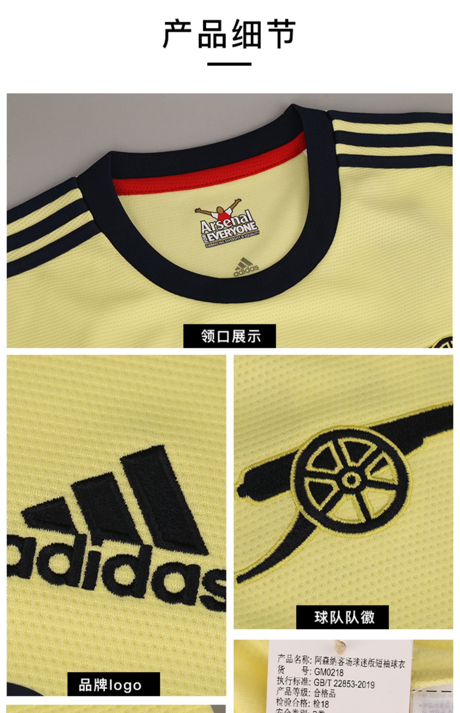 小李子ADIDAS/阿迪达斯21-22赛季阿森纳客场球迷版短袖球衣GM0218